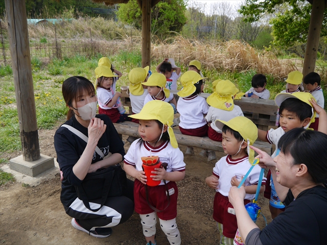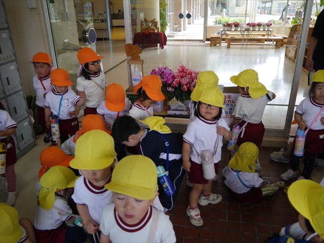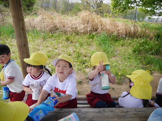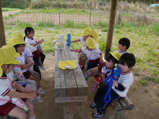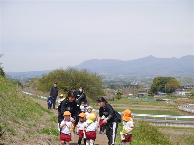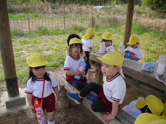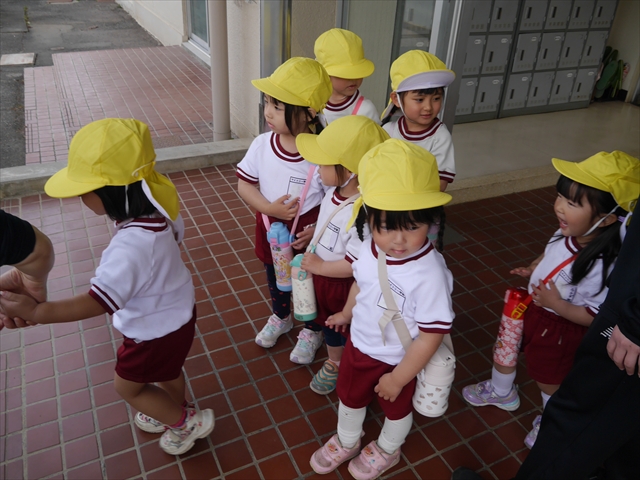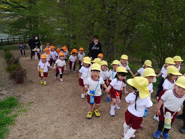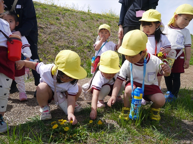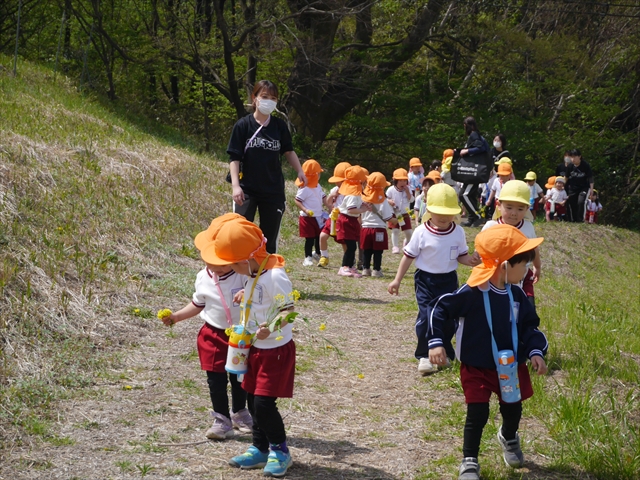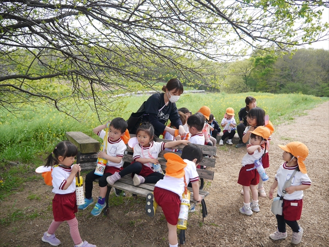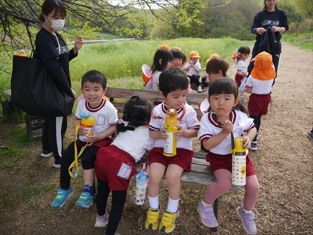 この園外散歩は、幼稚園の年少さんになったご褒美の散歩でもありますし、年少さんたちが先生たちの言うことを聞いてどこまでしっかり行動できるかを試す園外散歩でもありました。出かける前はちょっと心配でしたが、「たんぽぽさん」の頃とは違って、みんな先生たちの指示をよく聞いて、友達と手をつなぎ、自分で歩き、自分で見て、しっかりと「菜の花見学、菜の花畑散策」ができました。とっても偉かったです!まる!(^_^)v (^_^)b