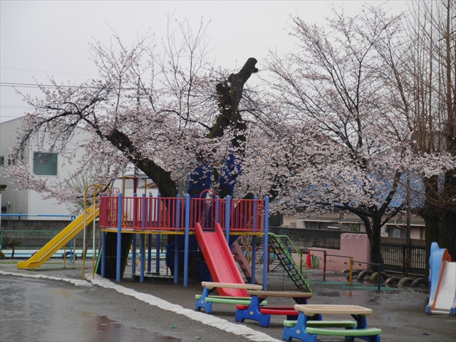 園庭の今年の桜は、いよいよ見頃になってきたのですが、今日のあいにくの雨と寒さで、桜の花が可哀想でした!でも逆に、この寒さで桜が我慢できれば、新任式・始業式・入園入所式は、満開の桜が残っているような予感もします!(^^;) お楽しみに!(^^)v とにかく4月8日(火)、子どもたち、保護者の皆さん、来園お待ちしております。(^^)v なお、始業式や入園・入所式の保護者の参加は、人数制限いたしませんので、遠慮なくご参加ください。m(_ _)m