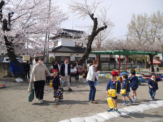 朝から暖かく、桜の花満開の春爛漫の日となりました。そんな春の良きに日に今年度の入園式・入所式を迎えることができました。新入園・入所の皆さんが桜満開の園庭から登園できて、本当に良かったです。本日午後1時30分から、遊戯室で今年度の「第47回入園式・入所式」が行われました。保護者の皆さん、お忙しい中ご出席いただき、ありがとうございました。