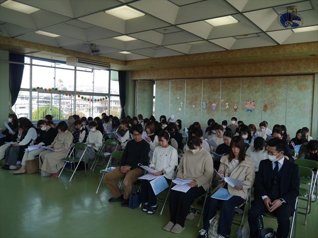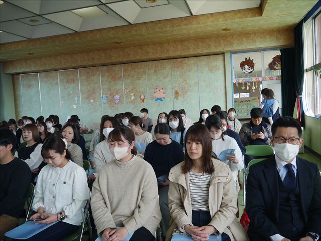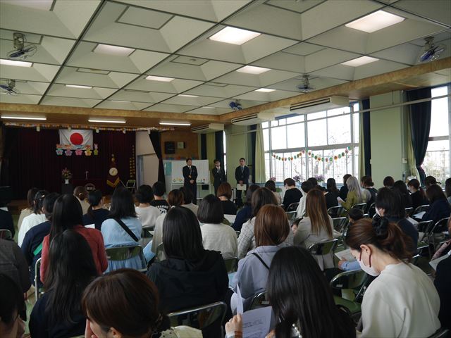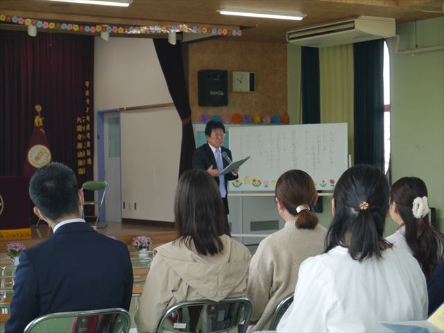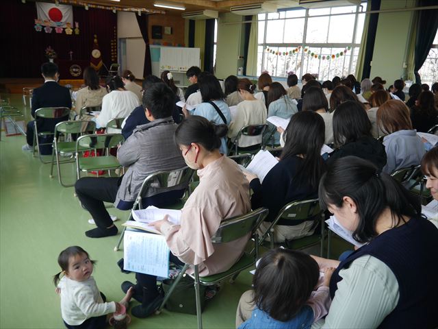 始業式の後、遊戯室で「市こども課職員説明と園長講話と教頭説明」を行い、いろいろ話をさせていただきました。市職員によるみどり市の保育料・無償化に関しては、遠慮無く市へお問い合わせください。また、今年度の改善点や経営方針や諸連絡がいろいろありましたが、是非ご理解いただければと思います。分からない点は遠慮無くご連絡ください。とにかく保護者の皆さん、今年度もご協力ご支援をよろしくお願い申し上げますm(_ _)m <(_ _)>