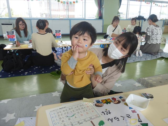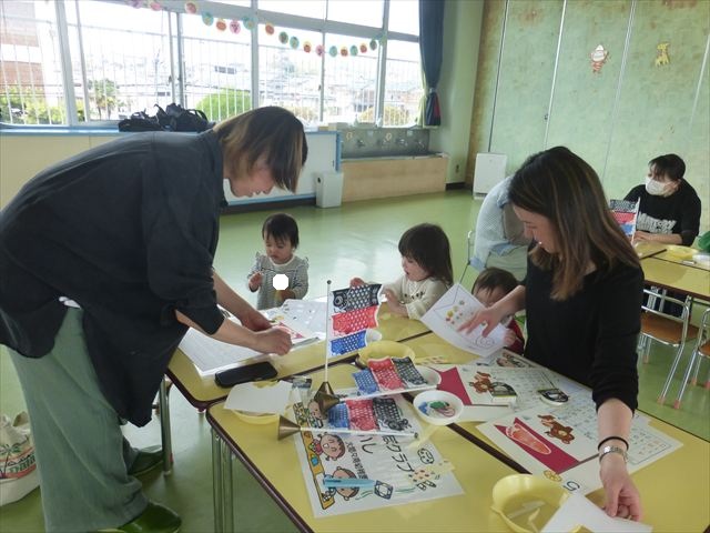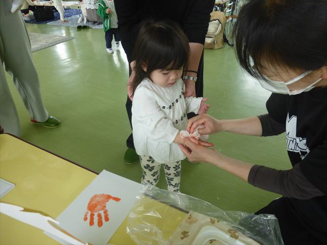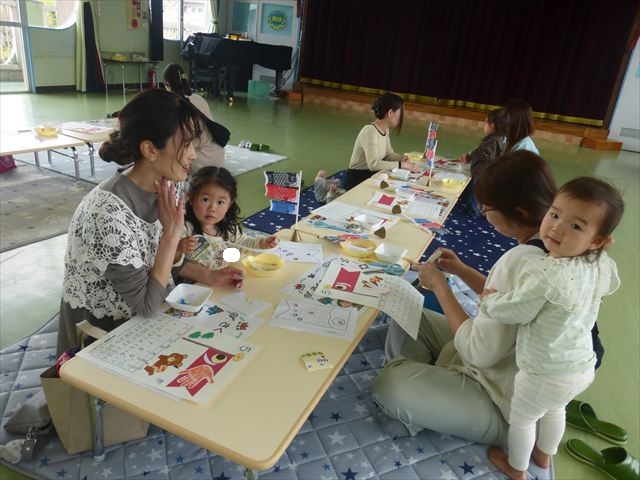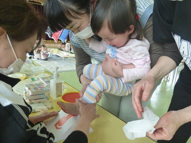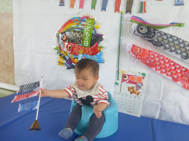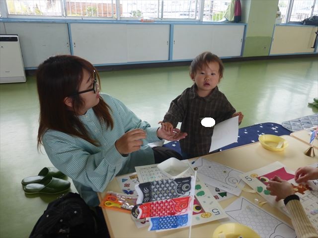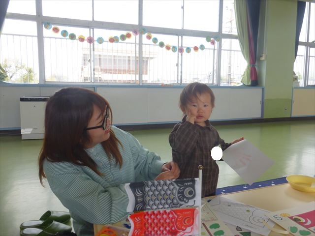 今日のさくらんぼクラブは「手形足型アートで記念カレンダーを作ろう!」(5月)でした。大きなこいのぼりの下に、クマにまたがった可愛らしい金太郎が出来上がりました。天気が良かったのでカレンダー作りの後の戸外遊びも気持ちがよかったのではないでしょうか!ご参加してくださった皆さんありがとうございました。次回のさくらんぼクラブは「親子で楽しくリトミックをしよう!」です。次回も皆さんのご参加をお待ちしております!(^^)!