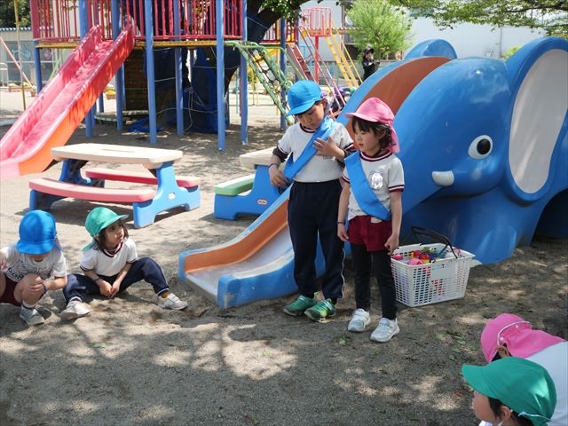 今日は、第1回「縦割り保育活動(オリエンテーション)」を行いました!みんなやる気を持って取り組み、いっぱい楽しみました!ヘ(^O^)/ (^_^)V