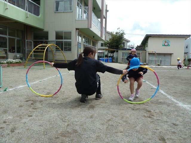 午後はともえ先生のリトミックをしました!今日は「まあるくなあれ」を教えていただき、みんなで大きな○を作りました。お友だちと手を繋ぎ、上手に○を作ることができました♪その後、お部屋に隠れたイチゴ、ぶどう、スイカ、リンゴを探しました。先生たいが気が付かないところも見つけていて、みんなとってもいいお目目☆「イ・チ・ゴ」と言いながら手を叩き、リズム感を身につけれられました。ともえ先生、ありがとうございました(^^♪