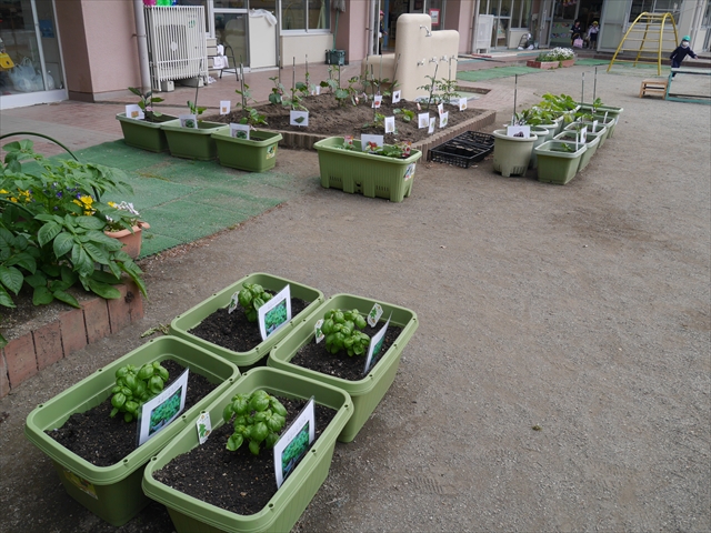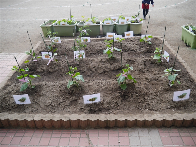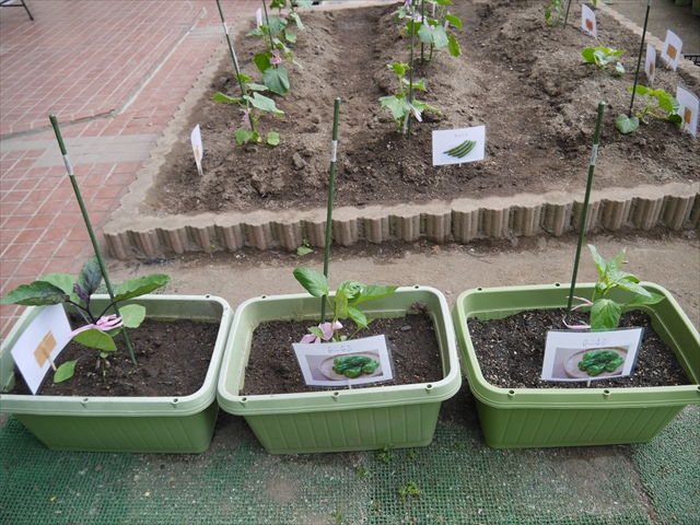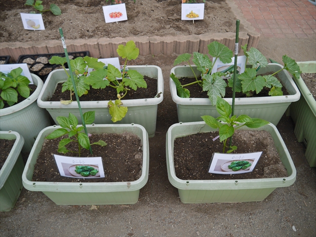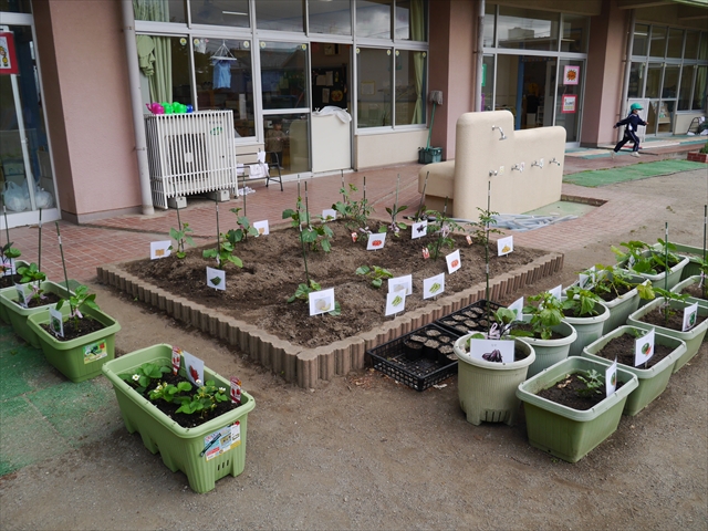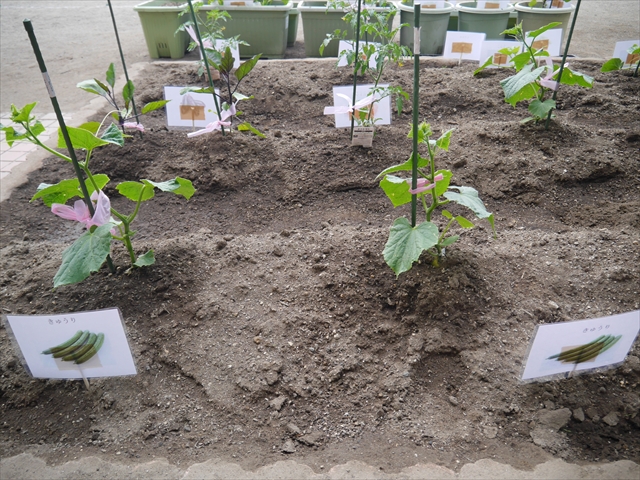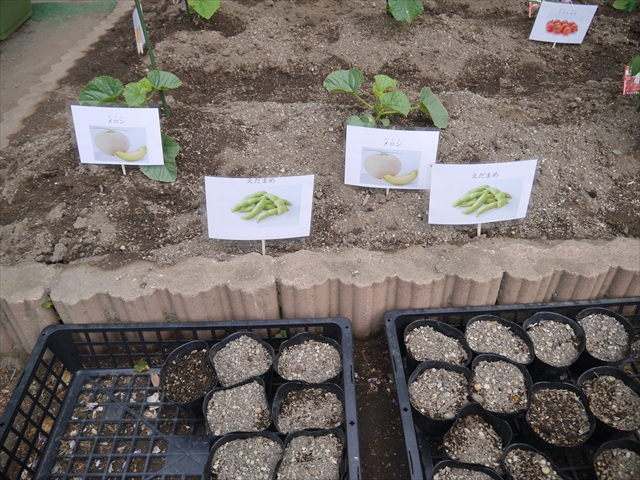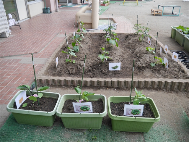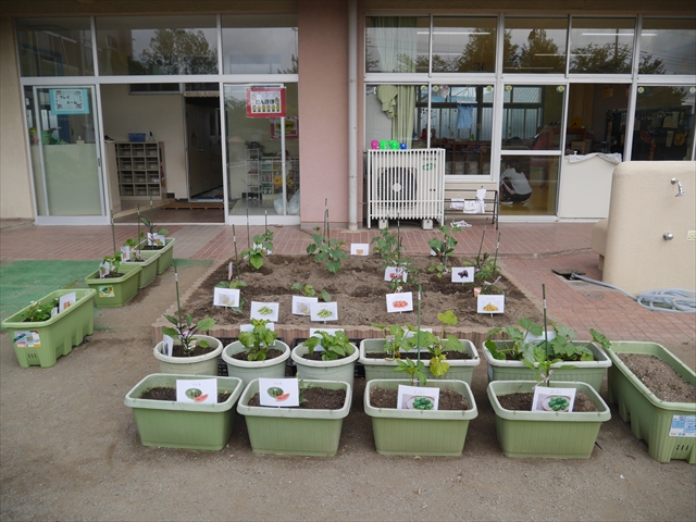 子どもたちが一生懸命植えてくれた夏野菜の畑やプランターに写真と名前の付いたプレートを立てました!これでもっと自分たちで美味しい野菜を作るんだ!という意識を持って育てられると思います!みんなで大事に育てて美味しい野菜をつくろうね(^^)