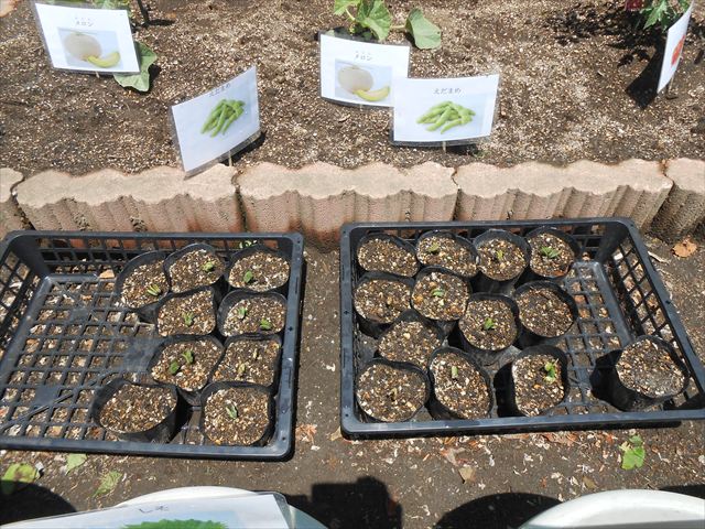 ^^)先日蒔いた枝豆の種が芽を出しました(