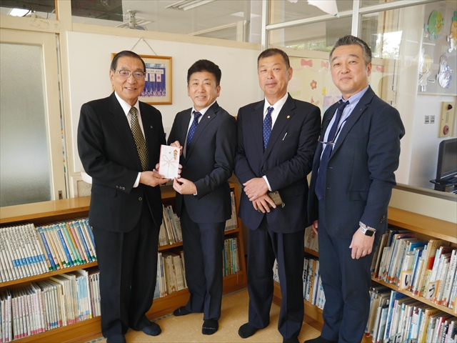 今年度も本日、「桐生西ロータリークラブ」の山同会長さんをはじめ3名の皆さんがわざわざ贈呈のために来園してくださり、橫塚理事長さんが寄付をいただきました!