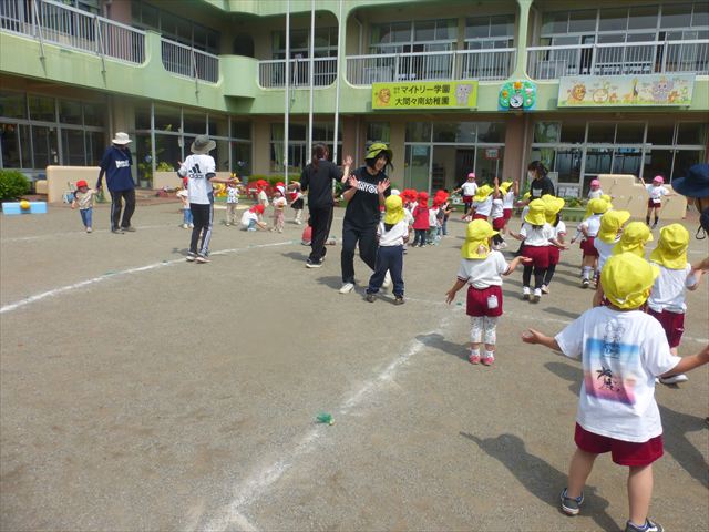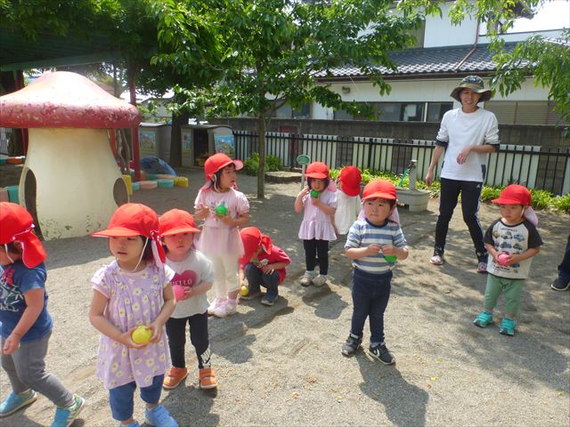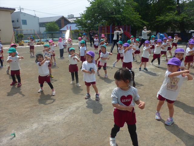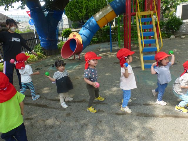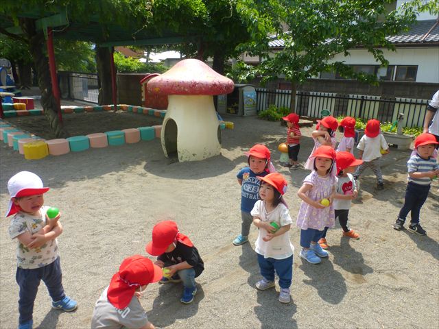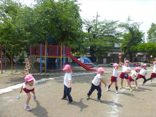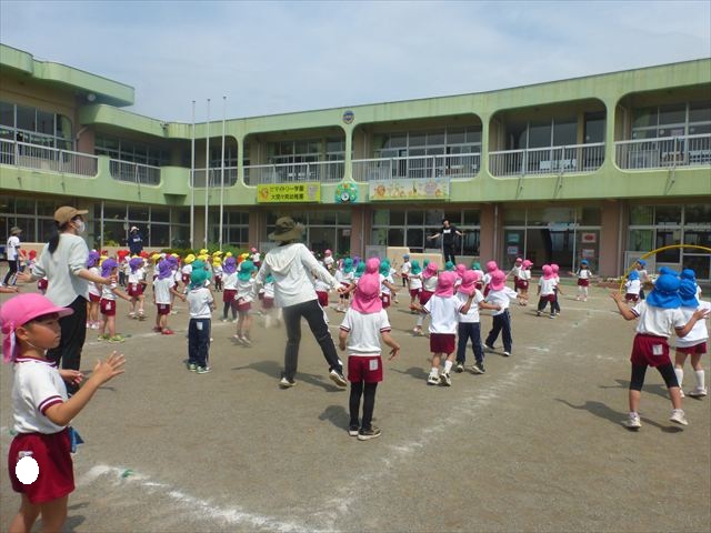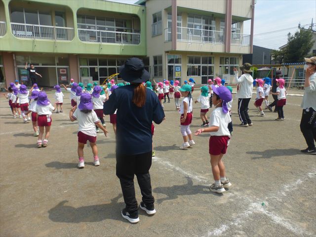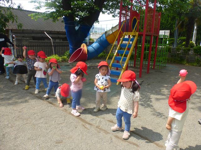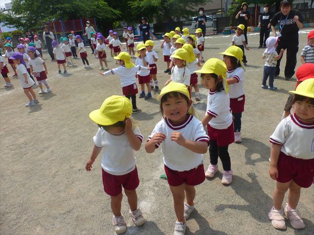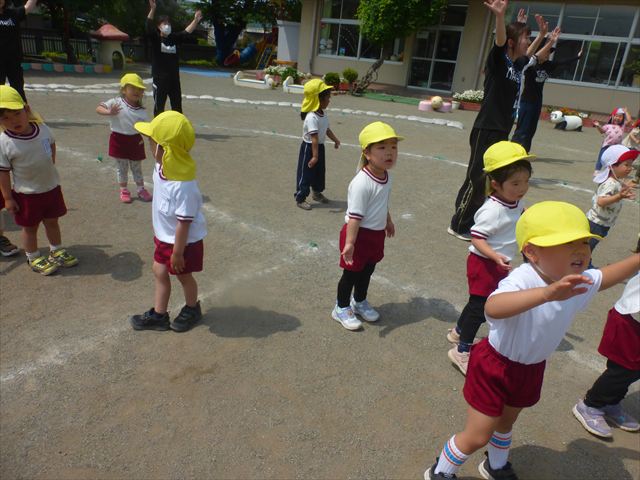 午後は、ともえ先生のリトミックがありました!今日は「手をたたきましょう」の歌を教えていただきました。笑った顔、怒った顔、泣いた顔がみんな上手♪その後はお散歩しながら、ヘビやカエル、うさぎなどいろいろな動物に変身しました!ともえ先生、ありがとうございました(^^♪
