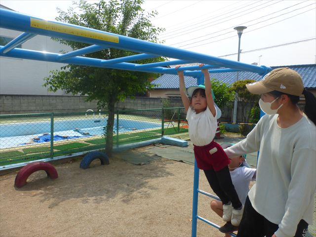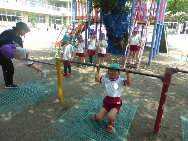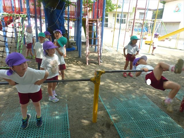 今日も朝から体操とサーキットトレーニングが行われました!今日は金曜日だったので「ラララ・トロピカルカーニバル体操」の後にサーキットトレーニング2をしました。年長・年少・たんぽぽ組はボール投げ、年中組は鉄棒と雲梯を頑張りました!