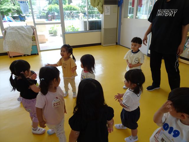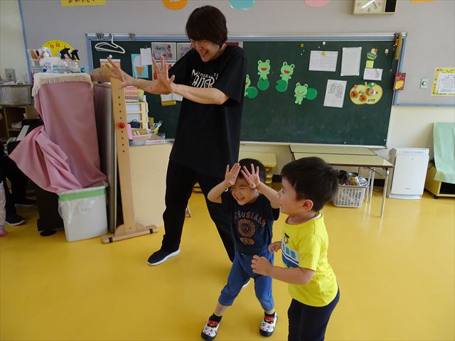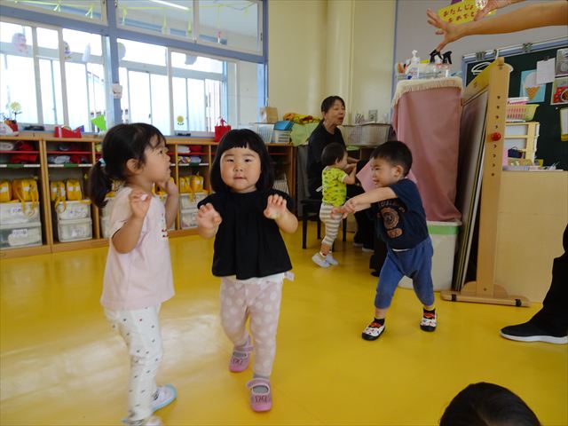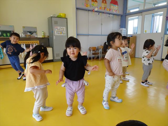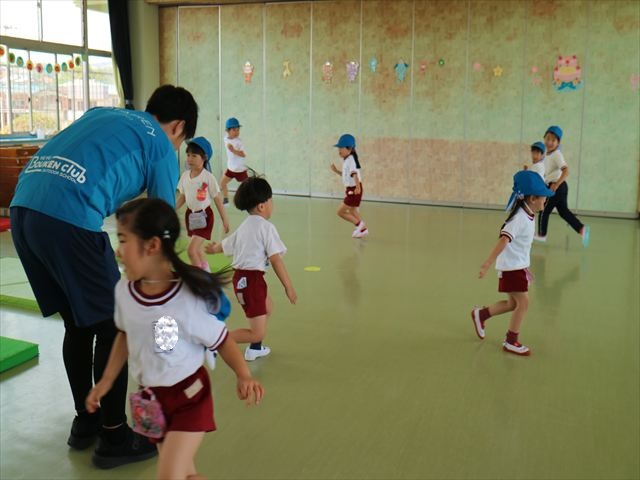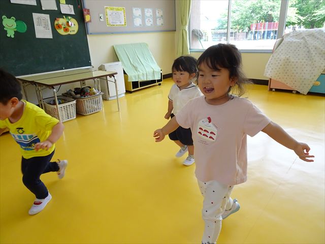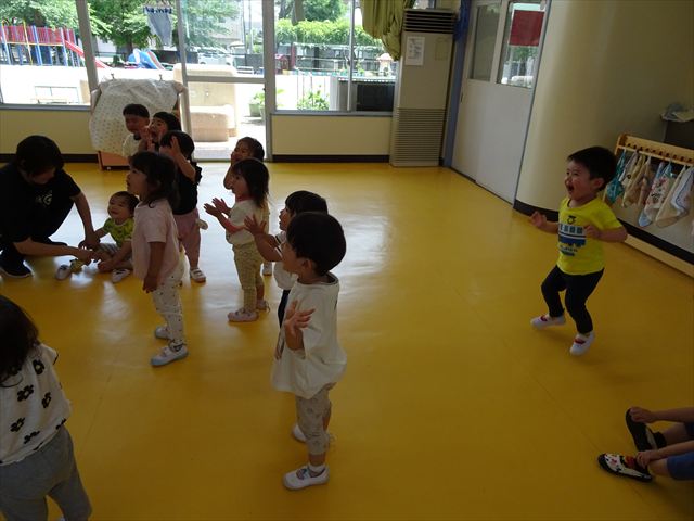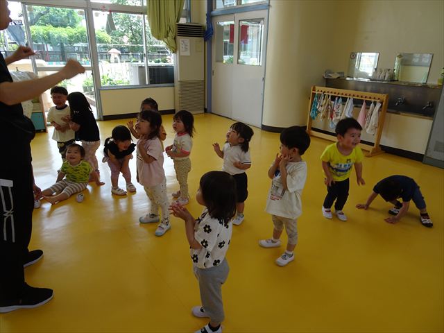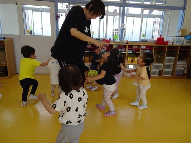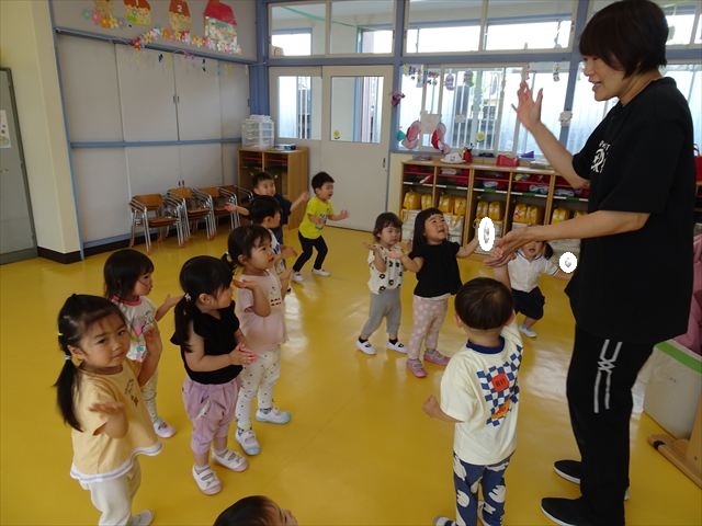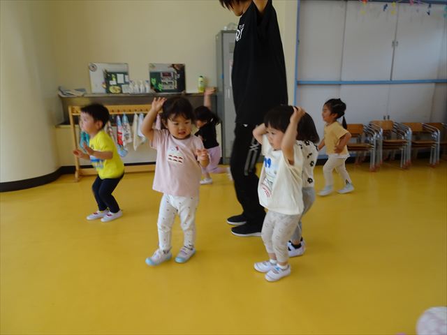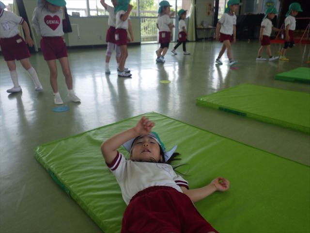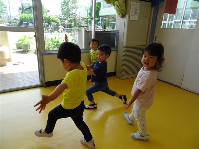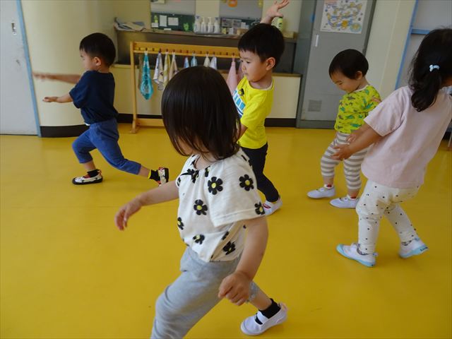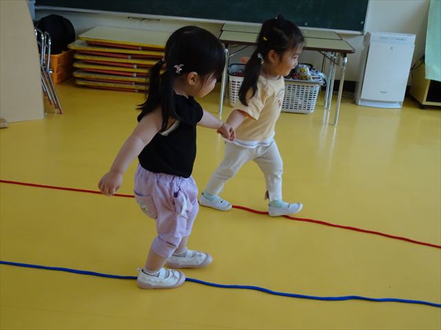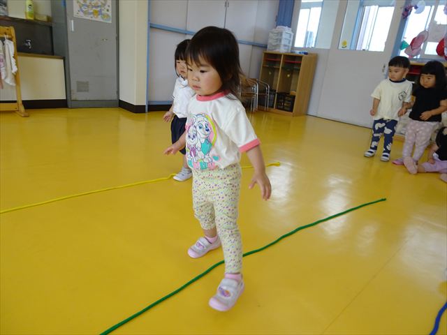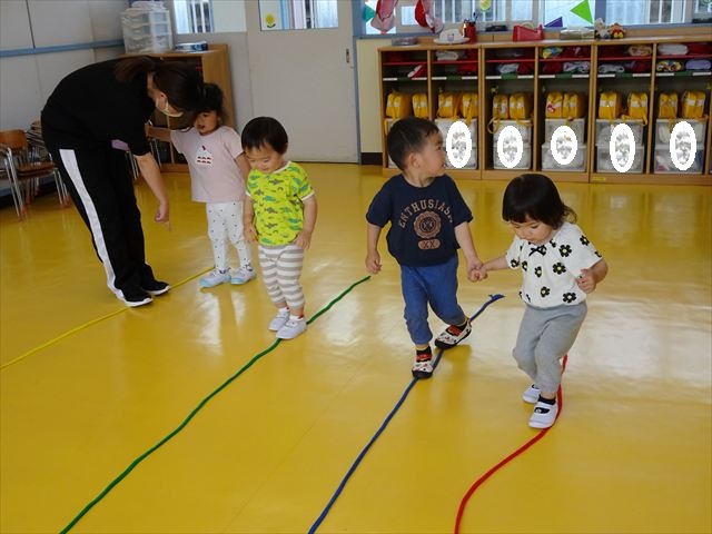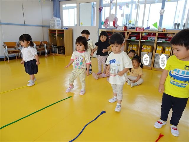 午後はともえ先生のリトミック☆「むすんでひらいて」の歌が上手になってきました(^^)/また、今日は初めて紐を使った内容も取り組みました。紐の周りにはワニさんがたくさん!食べられないように上手に紐を渡る練習をしました。ともえ先生、ありがとうございました(^^♪