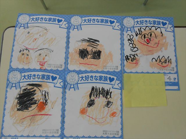 今日は、ヤオコーに飾っていただく大好きな家族の絵を描こう②と言うことで前回とは違う大好きな、家族の絵を描きました(