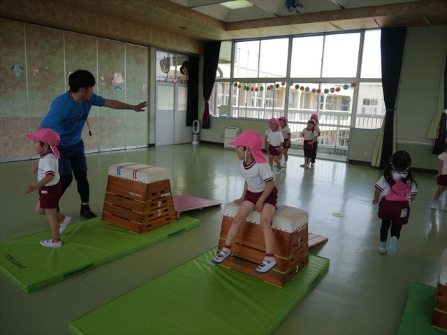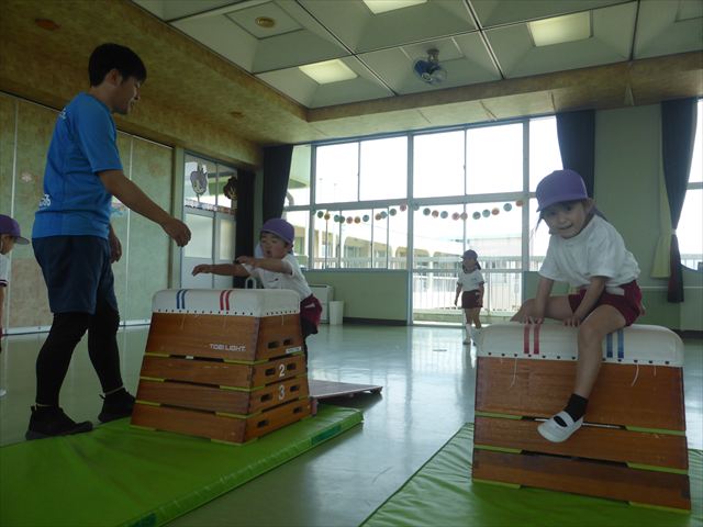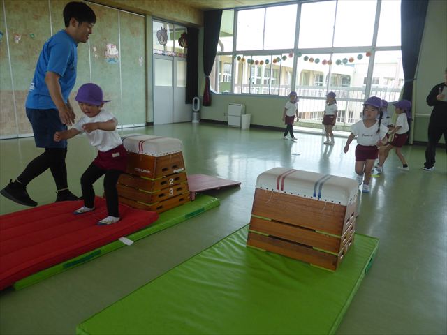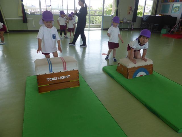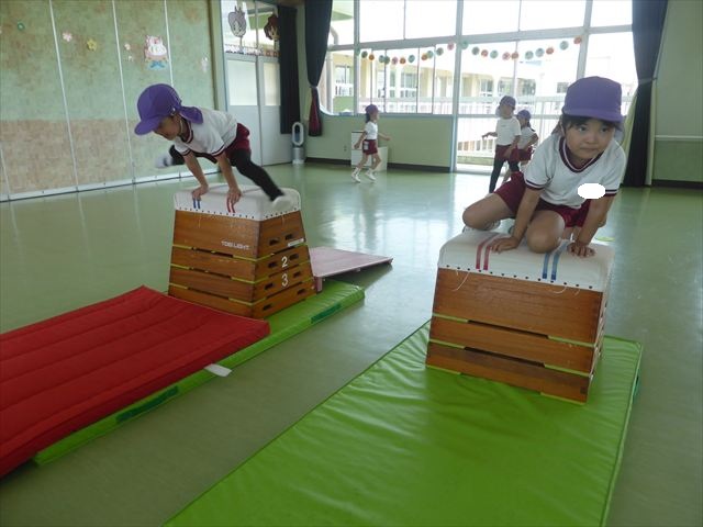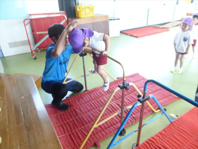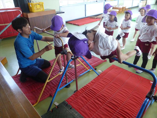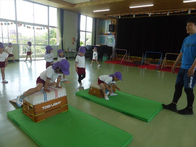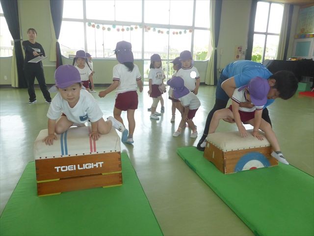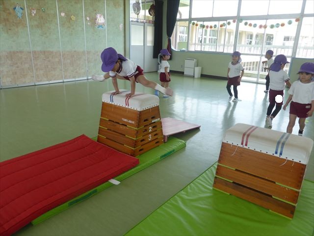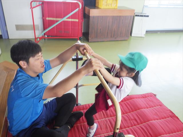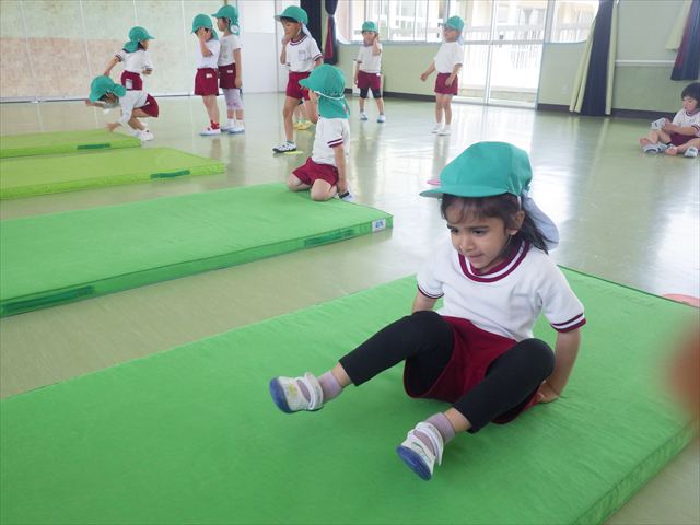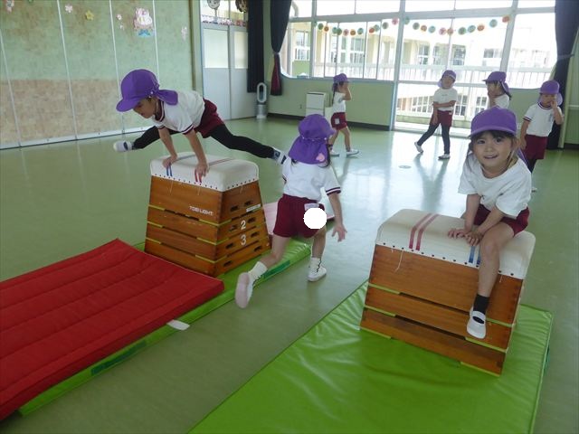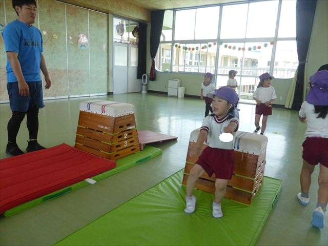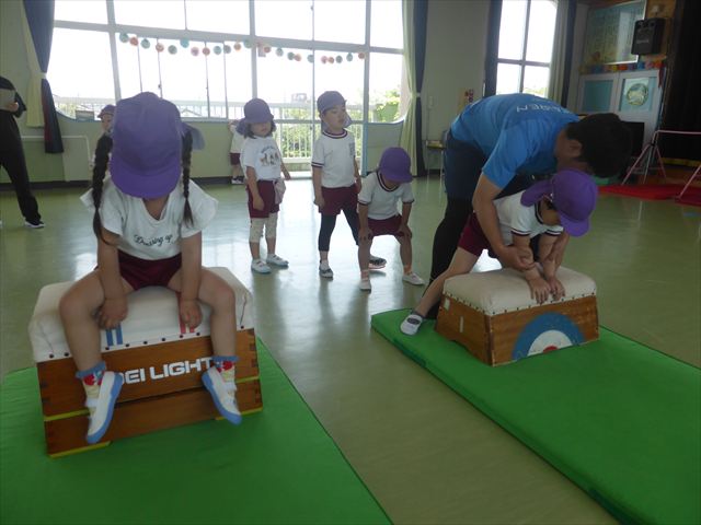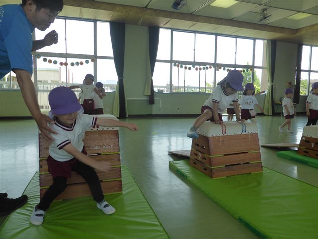 運動教室では、マット、跳び箱、鉄棒をしました!少しずつできることが増えてきて自信を持って取り組めるようになってきました。