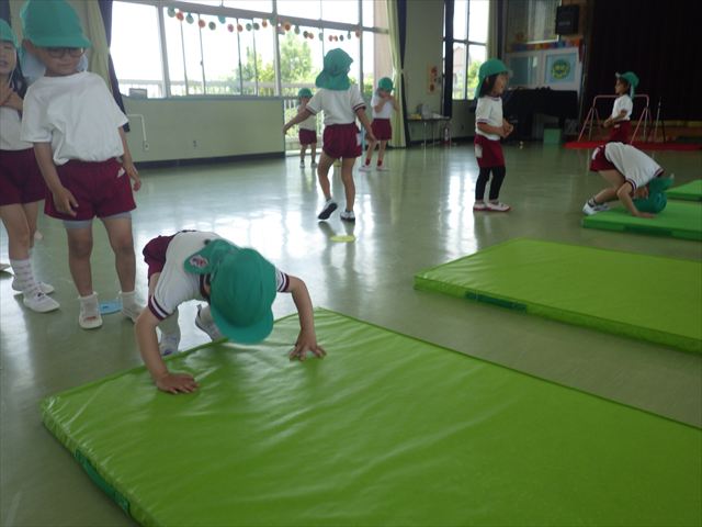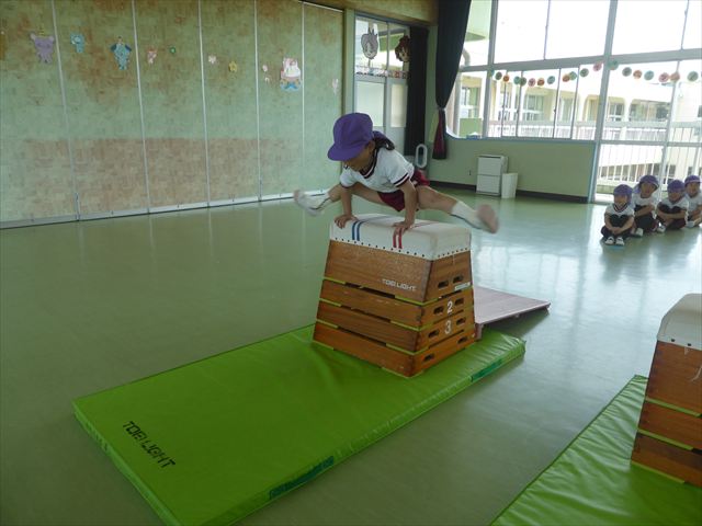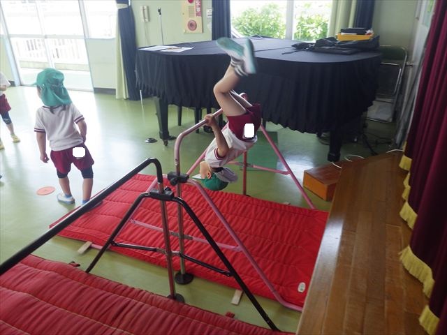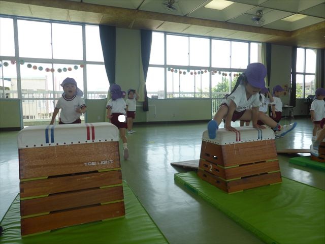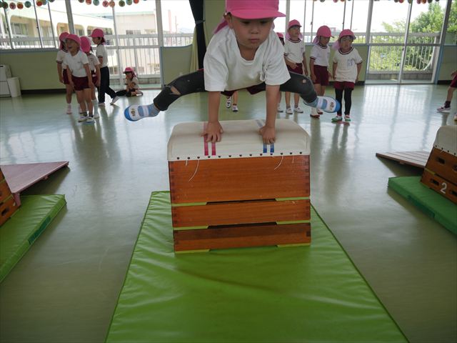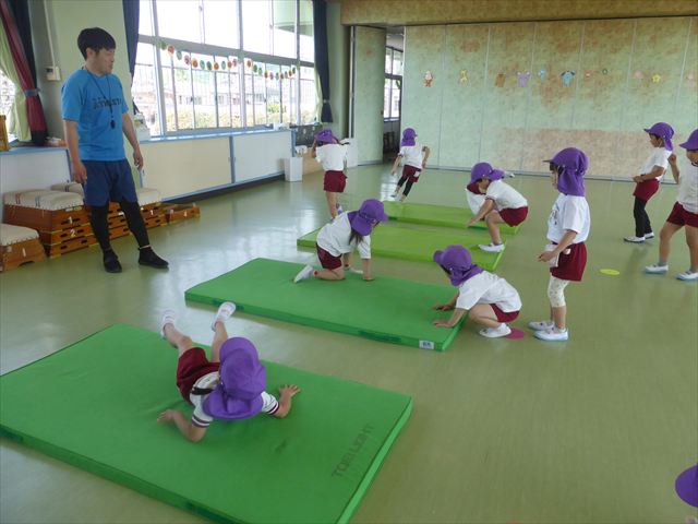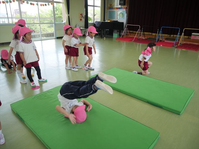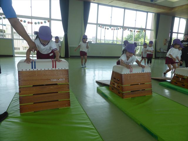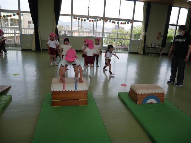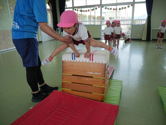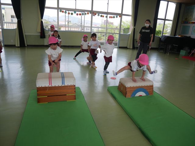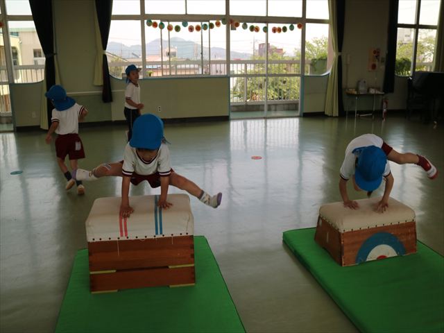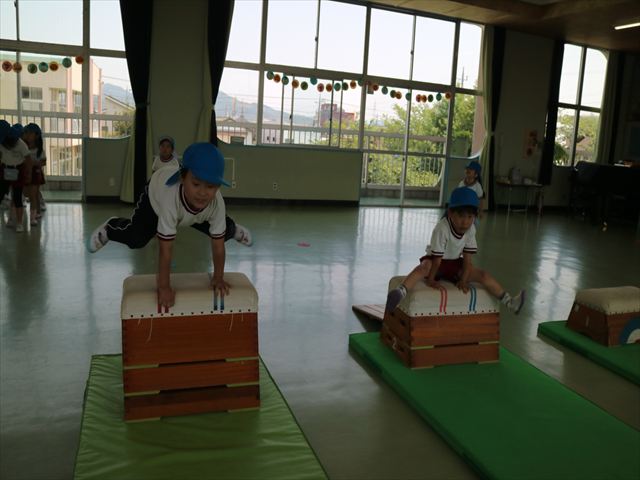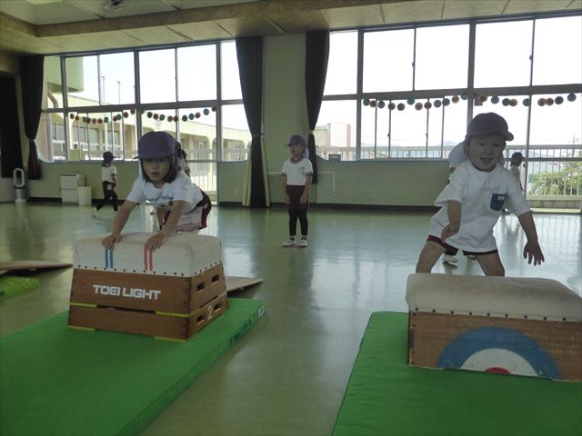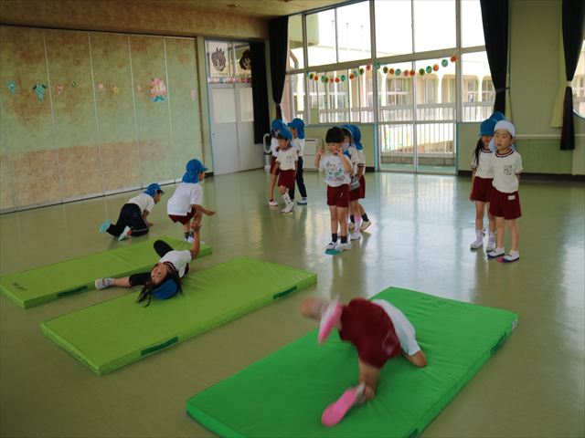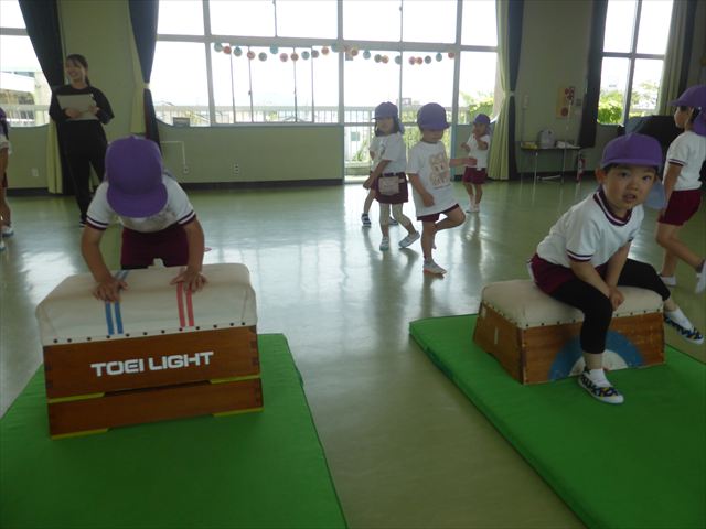 運動教室では、マット、跳び箱、鉄棒をしました!少しずつできることが増えてきて自信を持って取り組めるようになってきました。