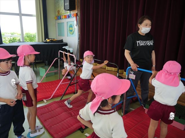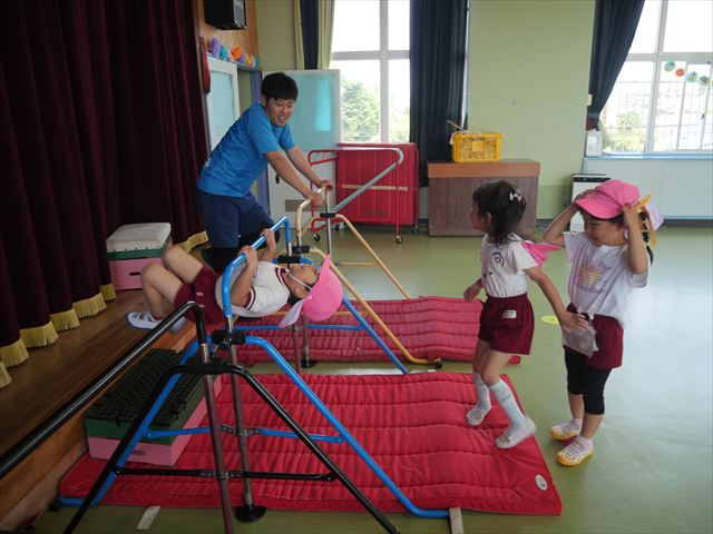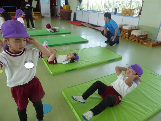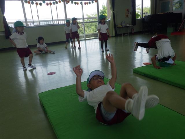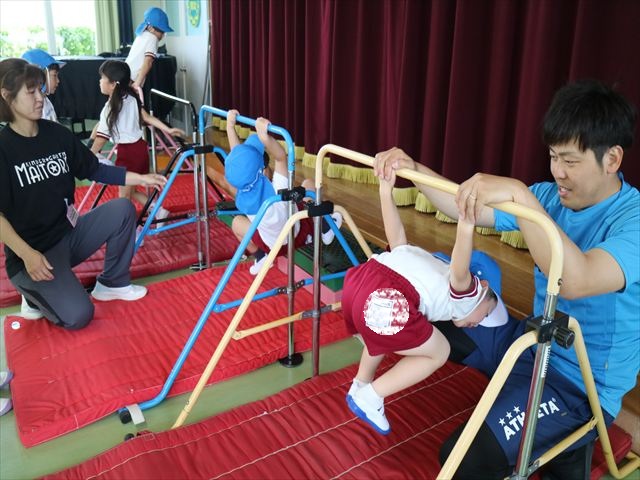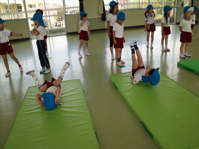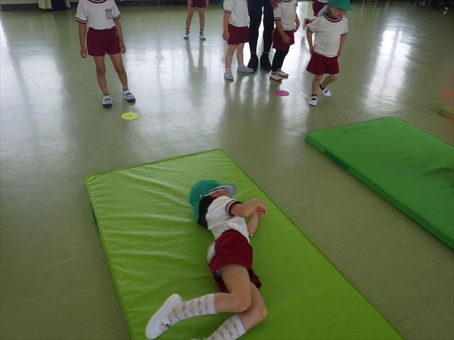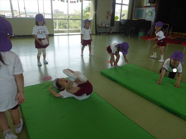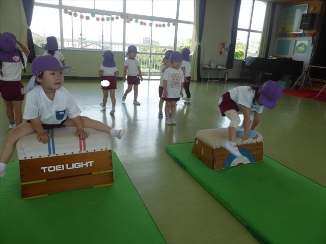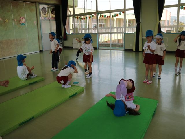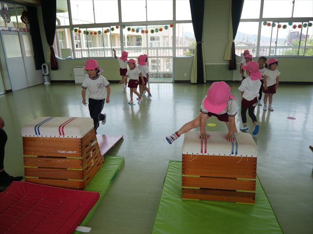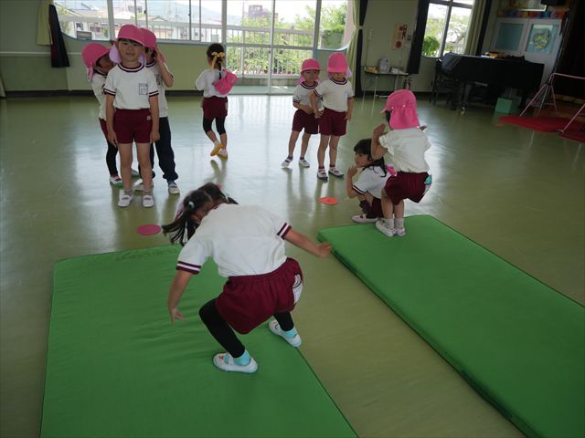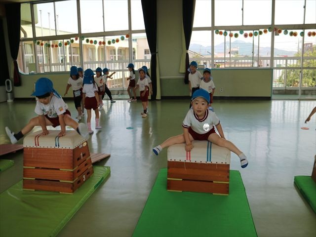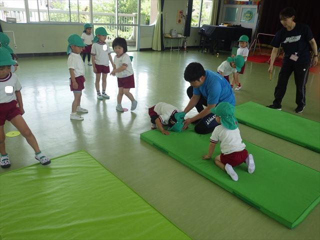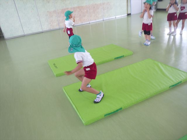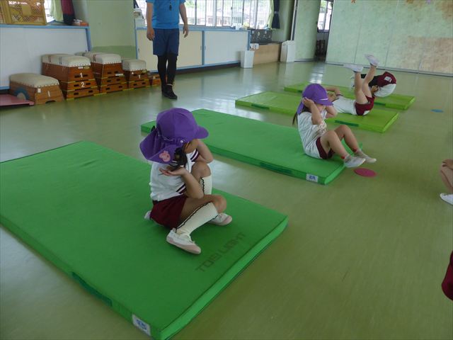運動教室では、マット、跳び箱、鉄棒をしました!少しずつできることが増えてきて自信を持って取り組めるようになってきました。