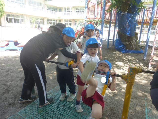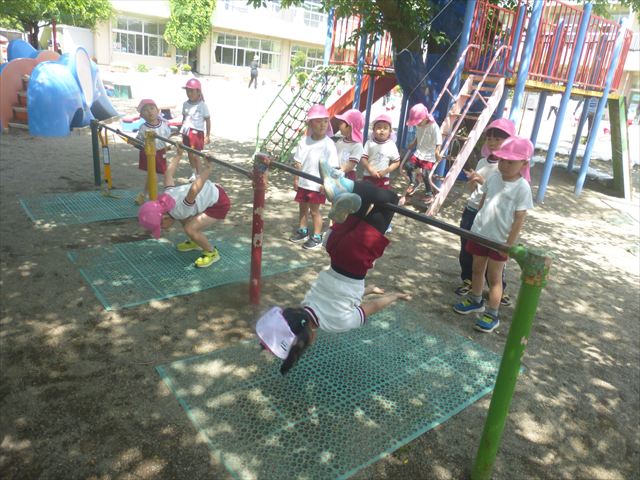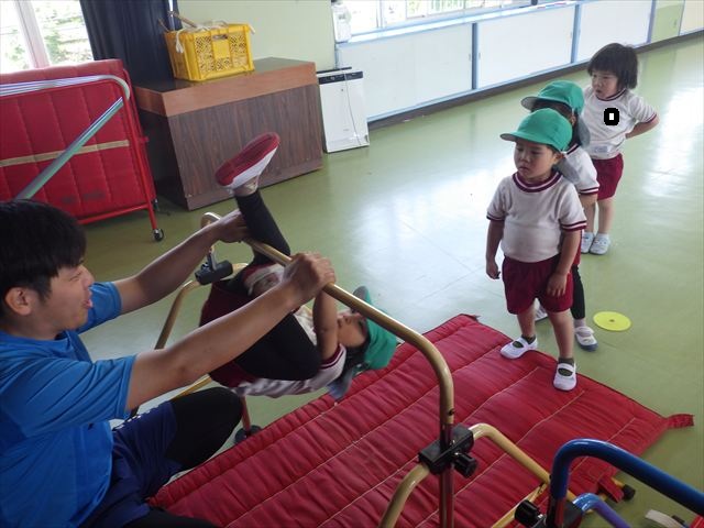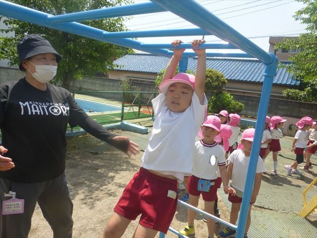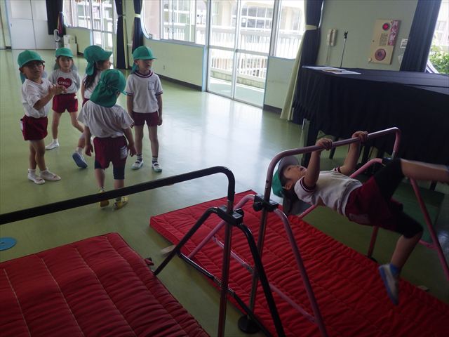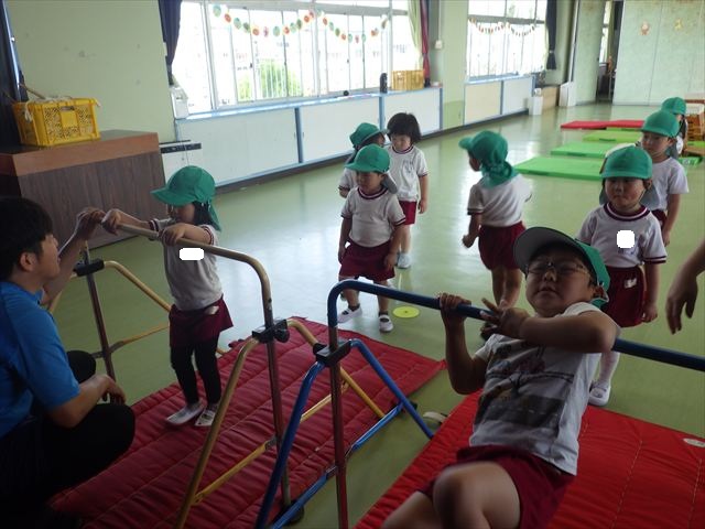 今日は火曜日!ということで今日も朝から元気にサーキットトレーニングが行われました!元気いっぱいで体操をした後に年中組・年少組・たんぽぽ組はボール投げ、年長組は雲梯と鉄棒を取り組みました!暑い中よく頑張りました!