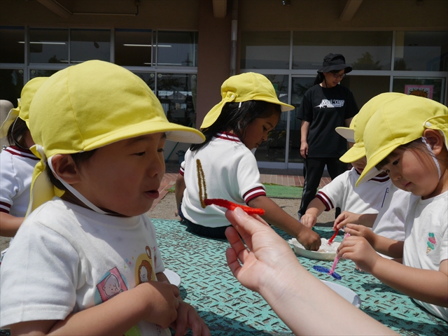 ^^)手作りしゃぼん液は泡立ってしまうとうまく飛ばないので後半は夢中になっていっぱい液をつけていたので泡だらけになってしまいました・・・。コツを掴んだ子もいるのでまたやってみたいと思います。