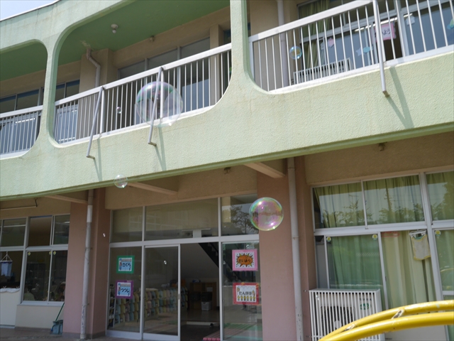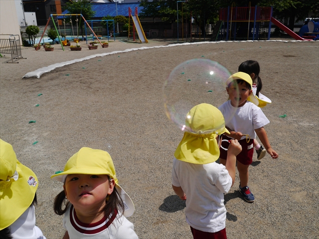 今月の自由保育の時間は、「しゃぼん玉」をしました(