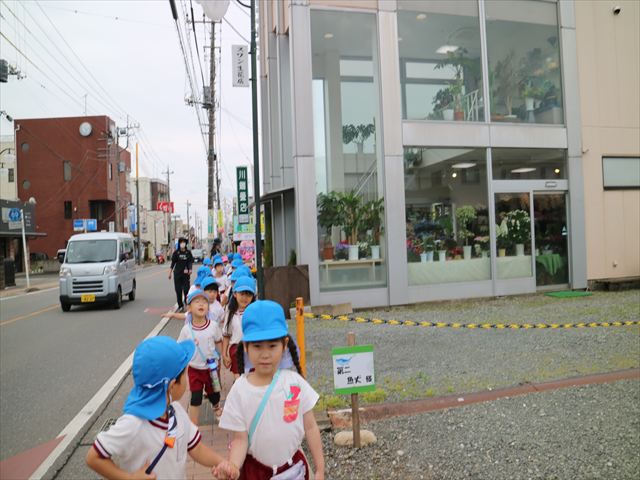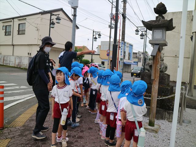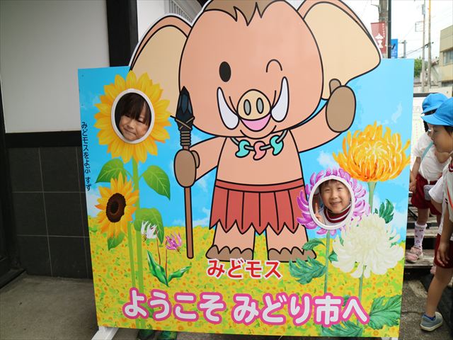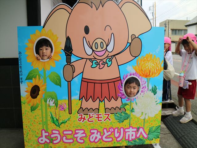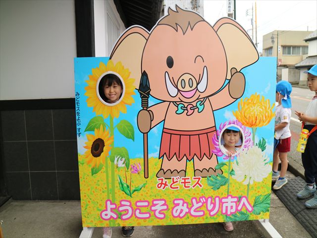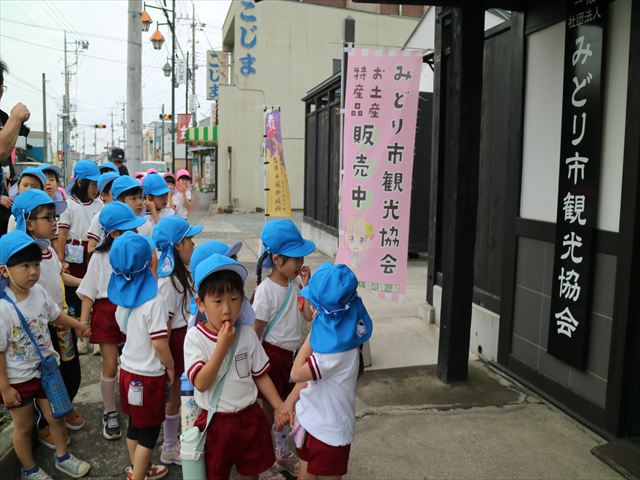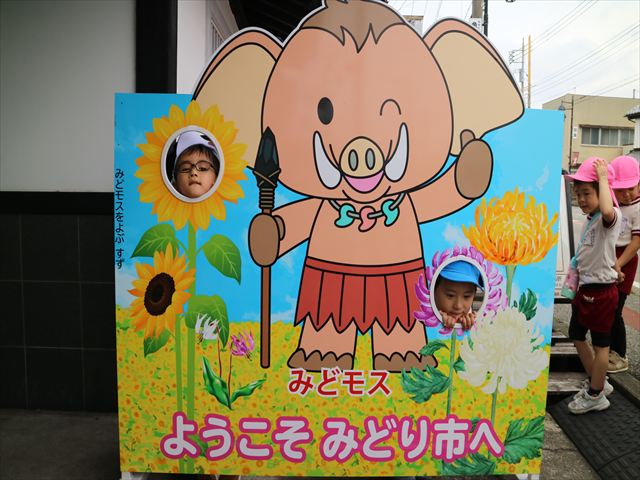 今日は、年長の町中文化探検(園外散歩)で「みどり市観光協会」と「大間々博物館(コノドント館)」に行ってきました!(^^)!大間々の建造物や街並みに触れながら楽しく散策し、初めに「みどり市観光協会」に行きました。みどり市のマスコットキャラクターであるみどモスのパネルがあり、記念にパシャリ☆店内では、みどモスのハンカチやタオル、お土産などたくさんの商品が並んでいました。ぜひお子さんと立ち寄ってみてください(^^♪