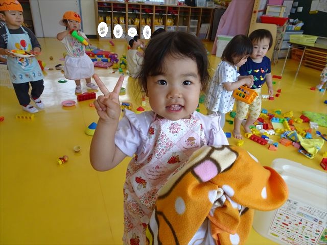 午後は自由遊びをしました。今日は帽子を被って変身する子がたくさん☆ブロックやおままごとも大人気でした! ※A組さんは明日写真を載せさせていただきます<(_ _)>