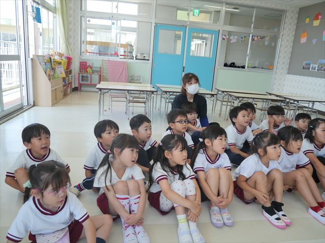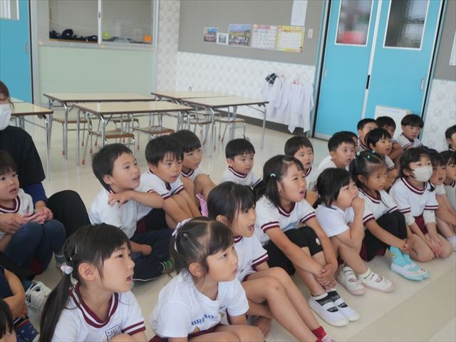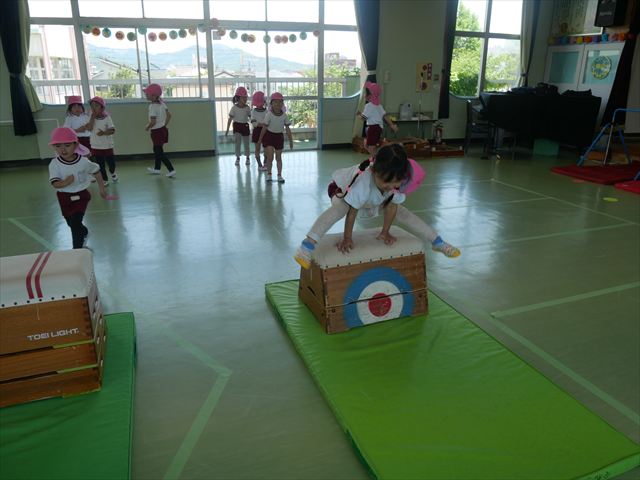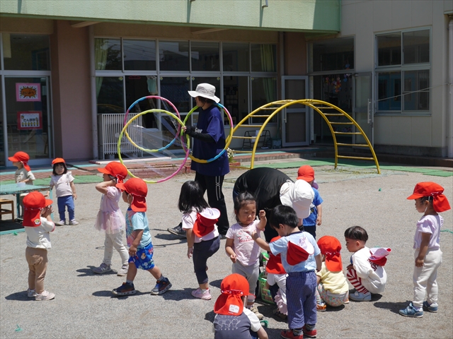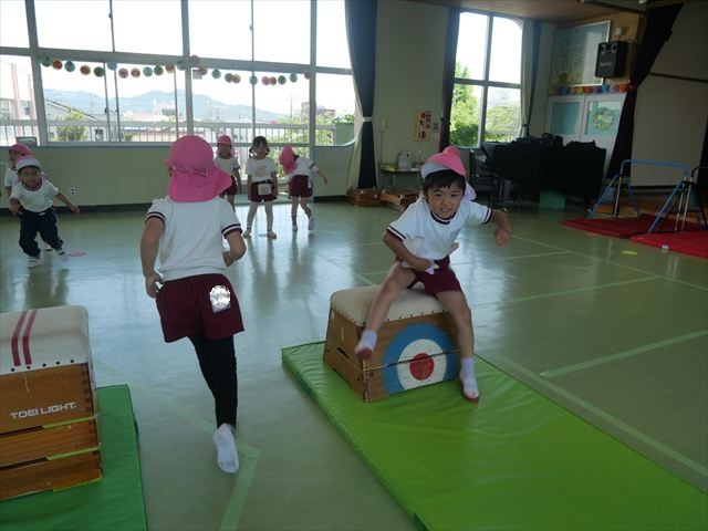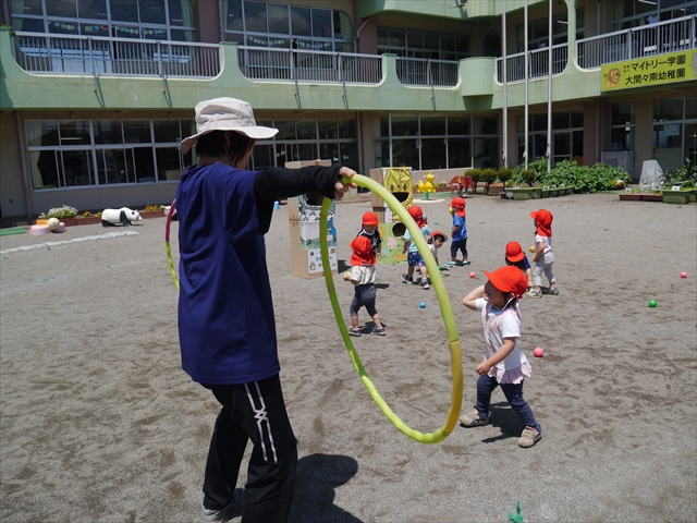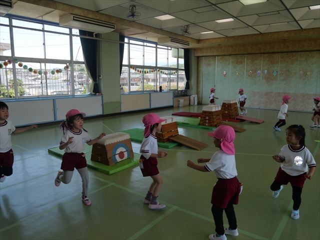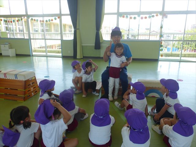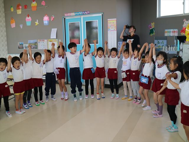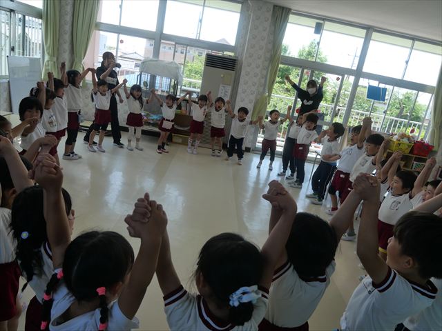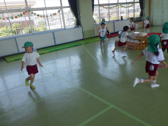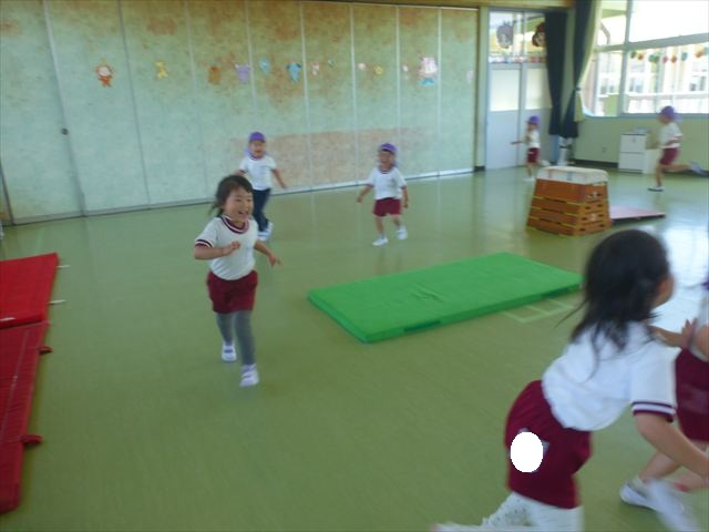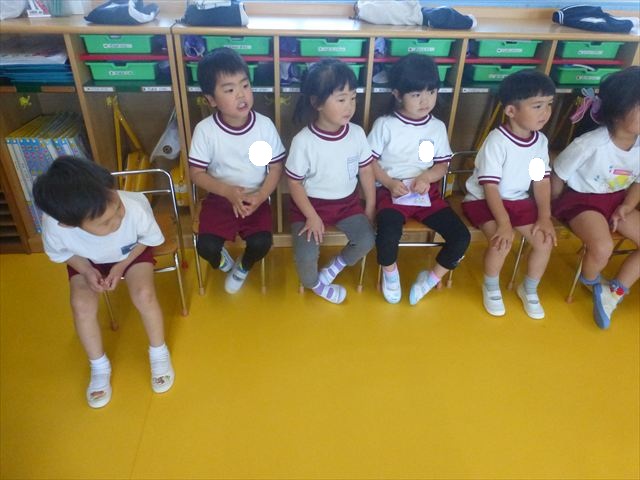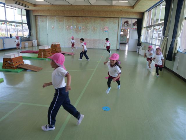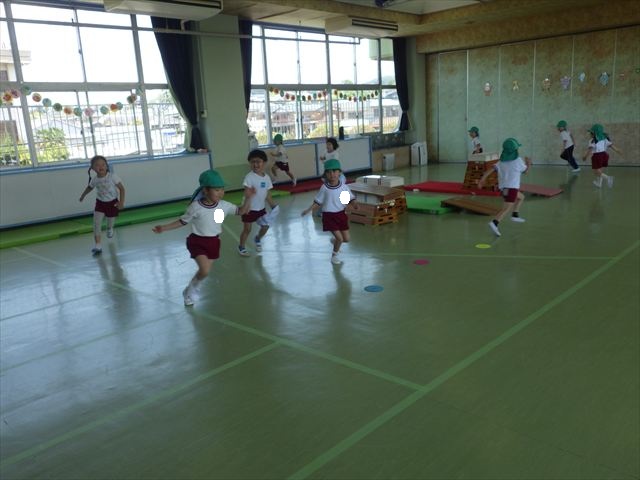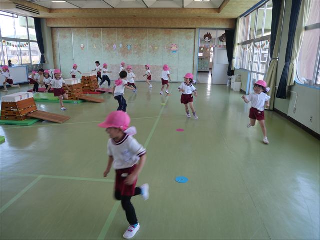 運動教室の後は、集団遊び「椅子取りゲーム」をしました。ルールを守り楽しく遊ぶことが出来ました。
