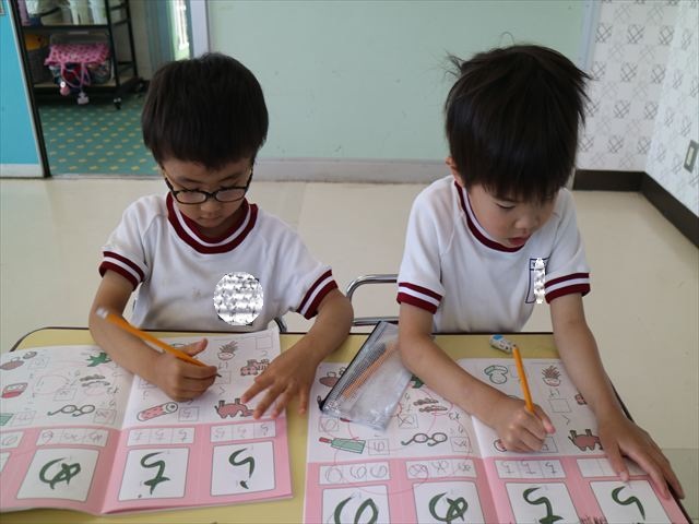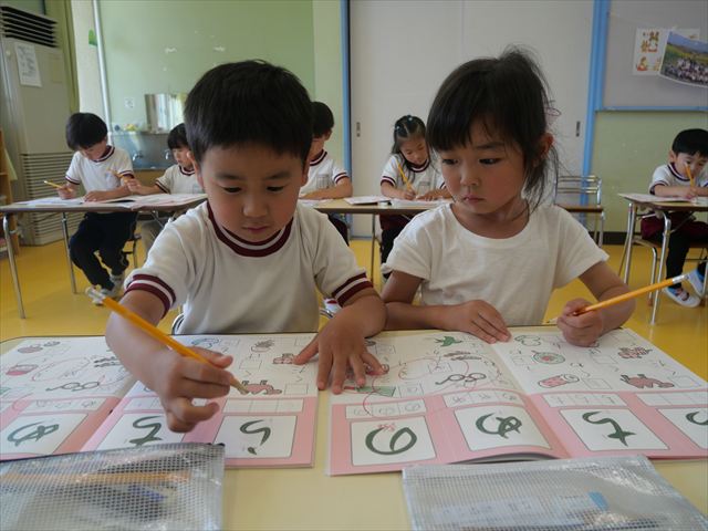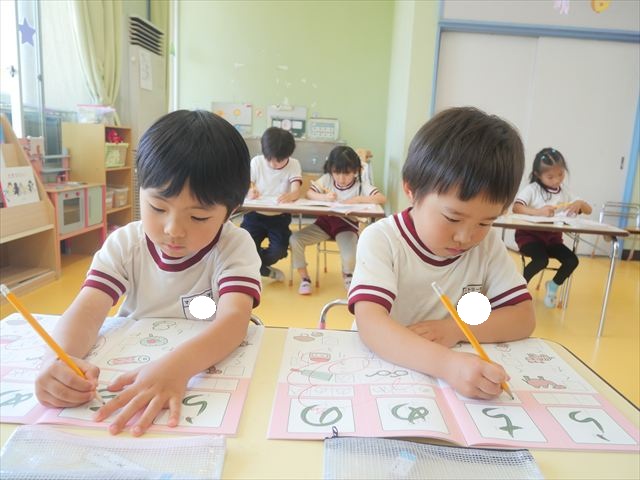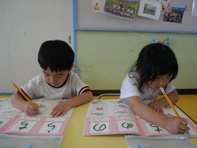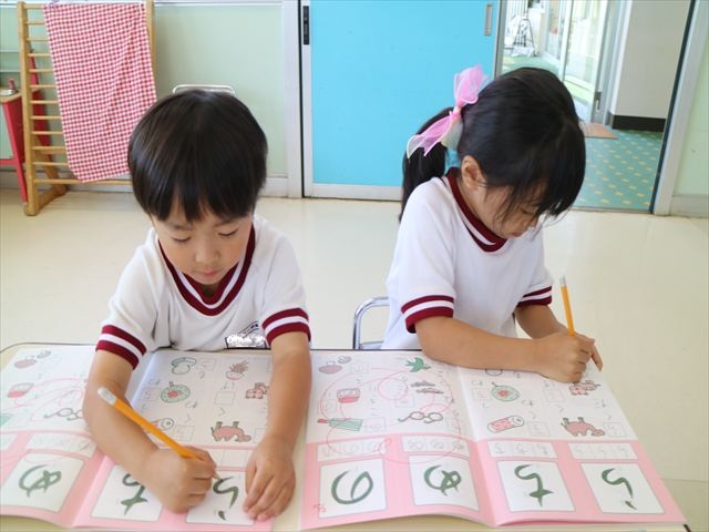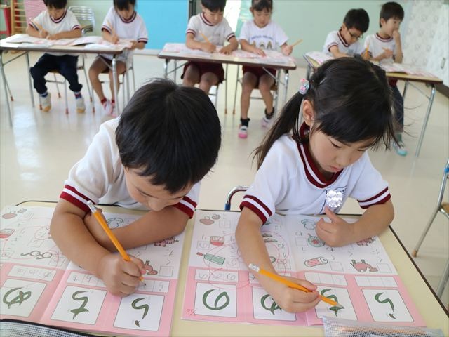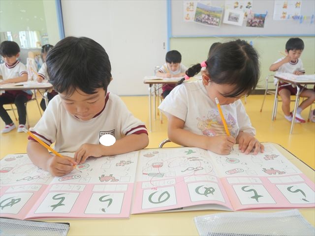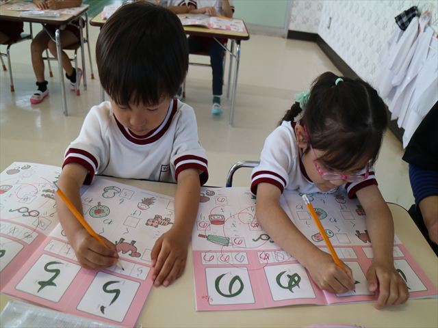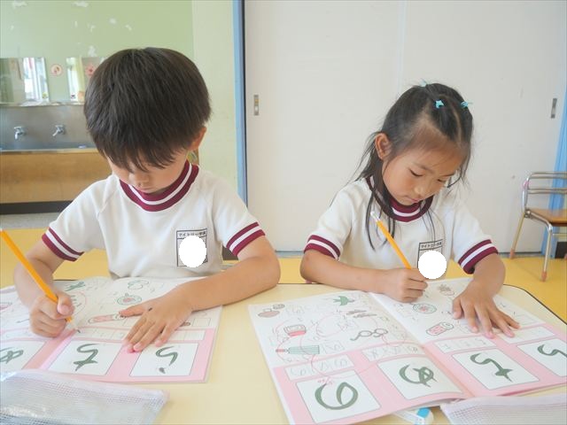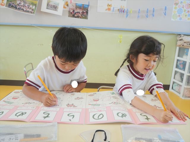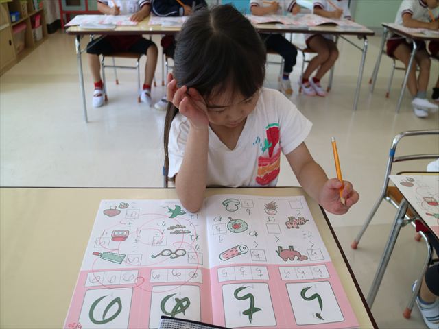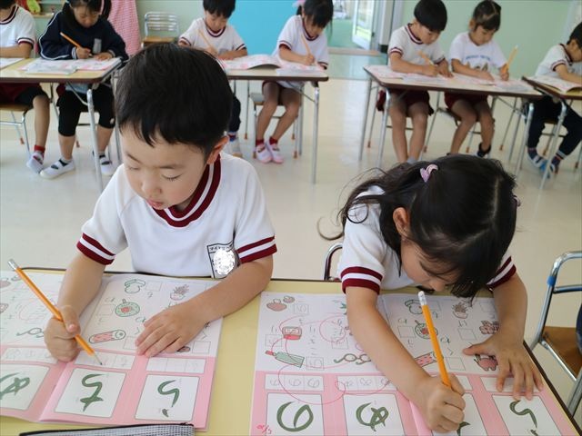 国語の時間ではワークの「ち」と「ら」の練習をしました。バランスを意識しながら取り組めました。