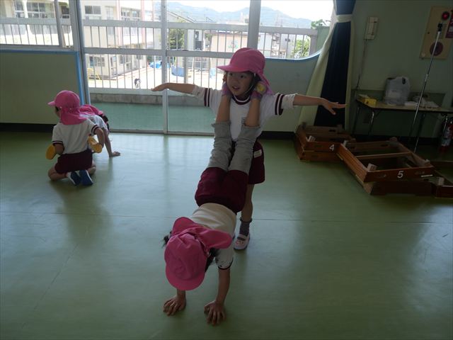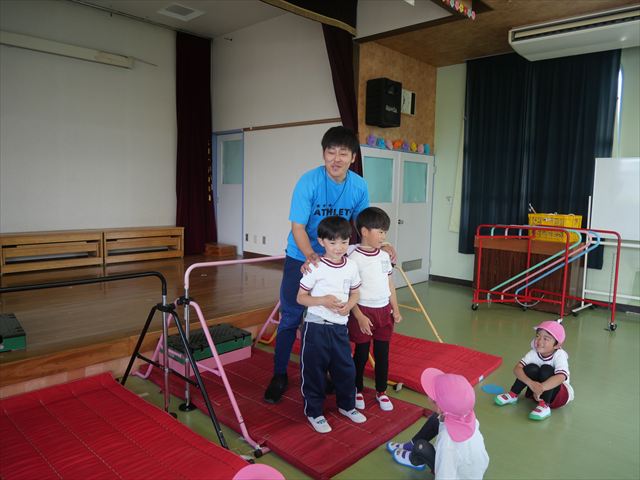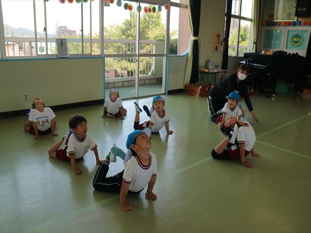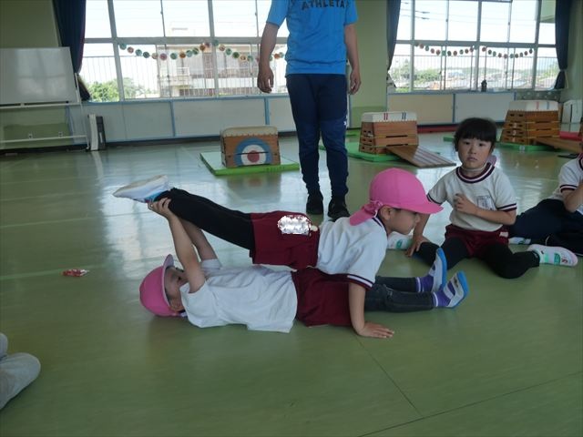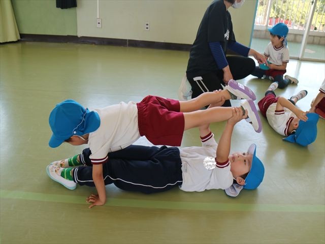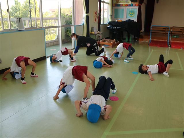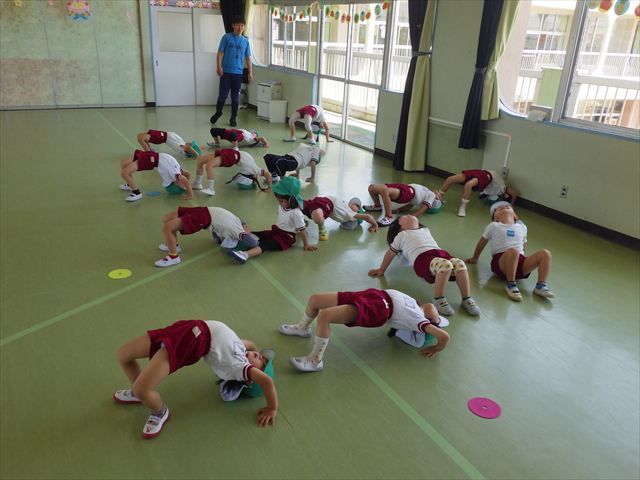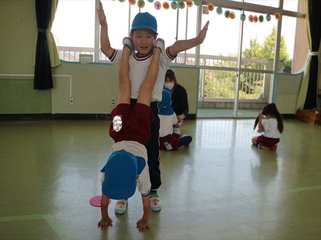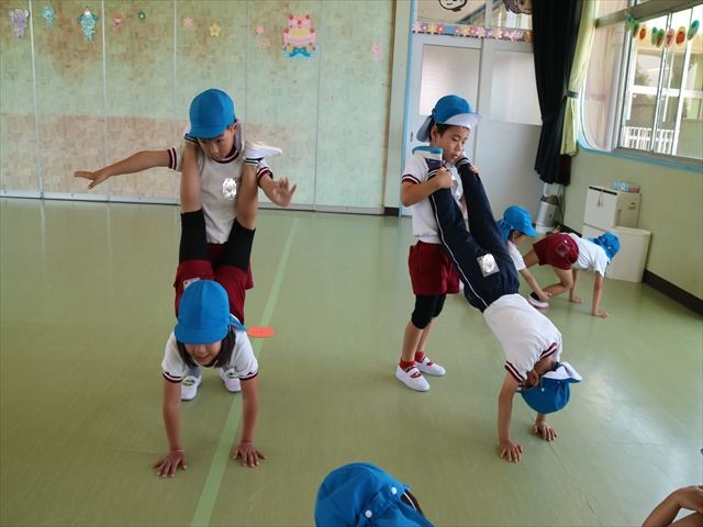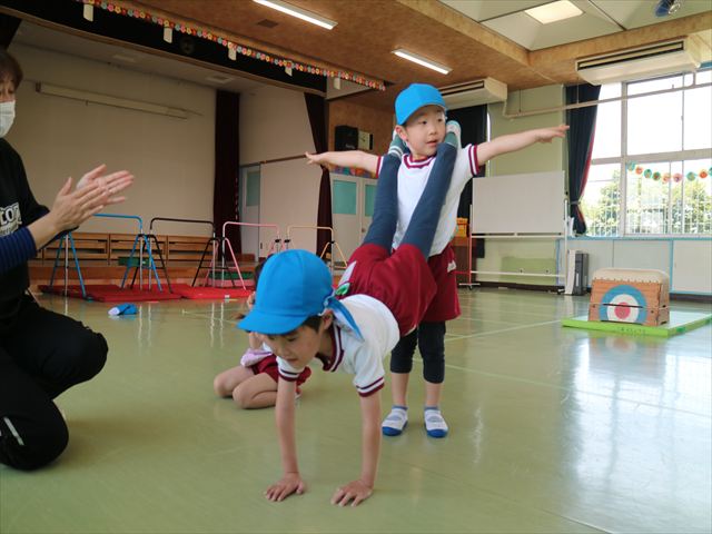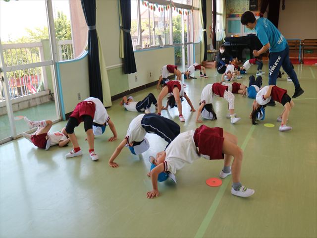 運動教室では、跳び箱、鉄棒、更に組体操に向けて2人組で行う技を3つ教えてもらいました!1つ目は「やま」2つ目は「2段ベッド」3つ目は「ひこうき」どれも難しくたくさん練習が必要です。運動会に向けてたくさん練習していきたいと思います!