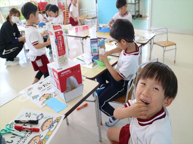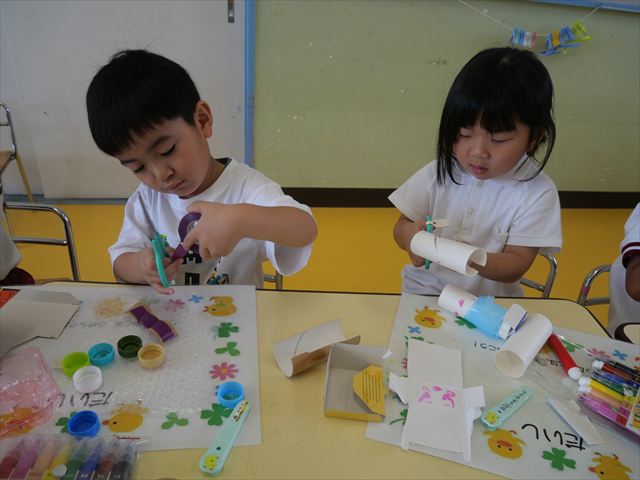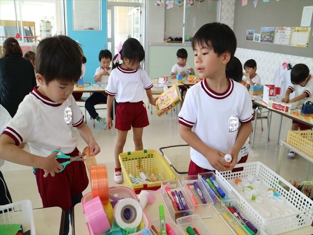 今年度から、新たに月に1回「主体性の時間」(主体的学び・遊びの時間〈室内・戸外〉)のカリキュラムを取り入れました。これは、園児の主体性を重視し、学年・担任が意図したねらい・環境構成の中、子どもたちがやりたい「学び」「遊び」を好きにやる時間です。子どもたちが能動的にその活動を通して学んでいき、自ら考え、【見通し】(何をするのか?何をして遊ぶのか?何を作るのか?)を立て、自ら活動していく力を養っていきたいと思います。