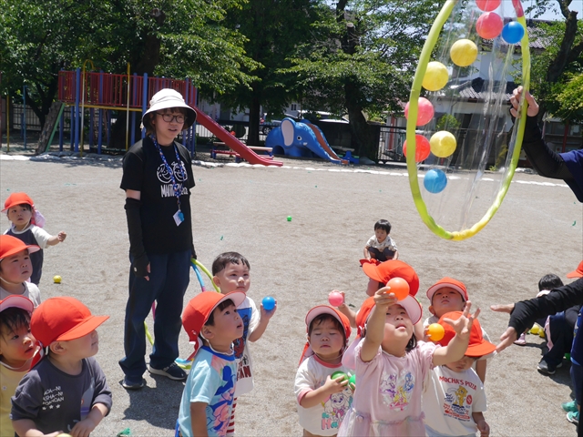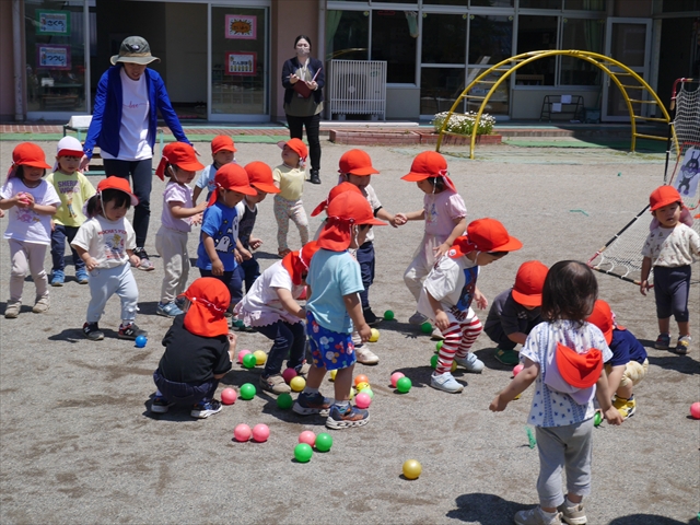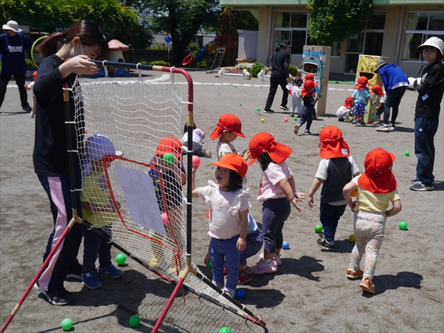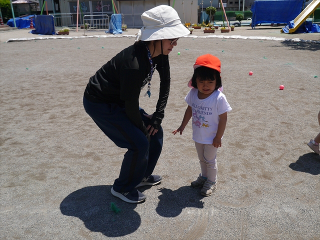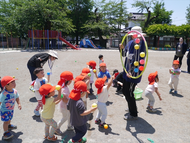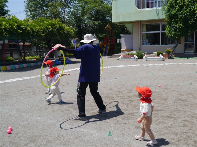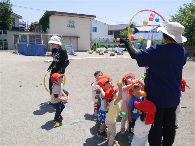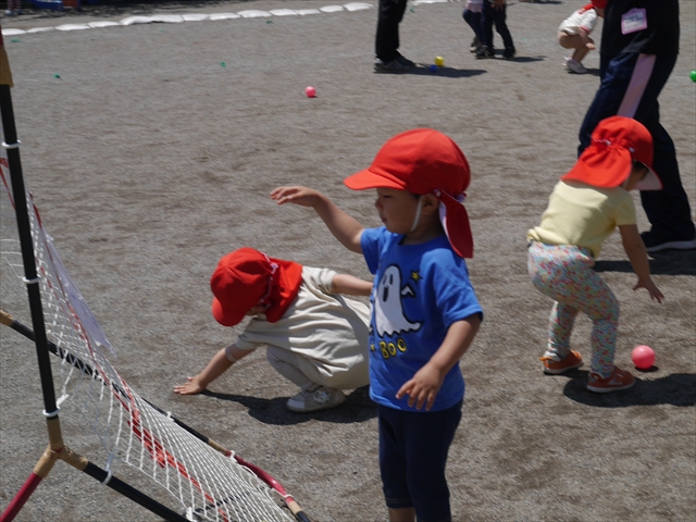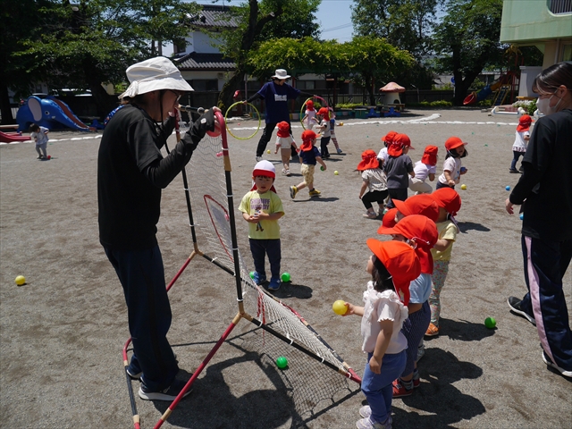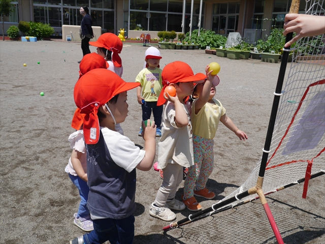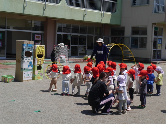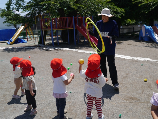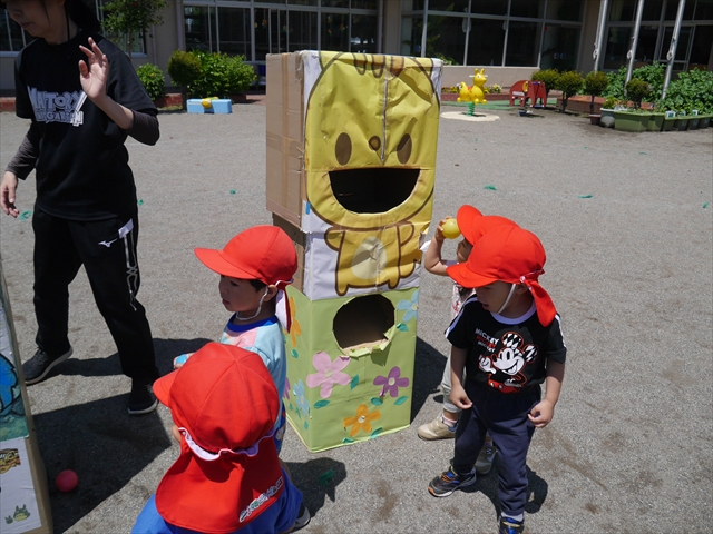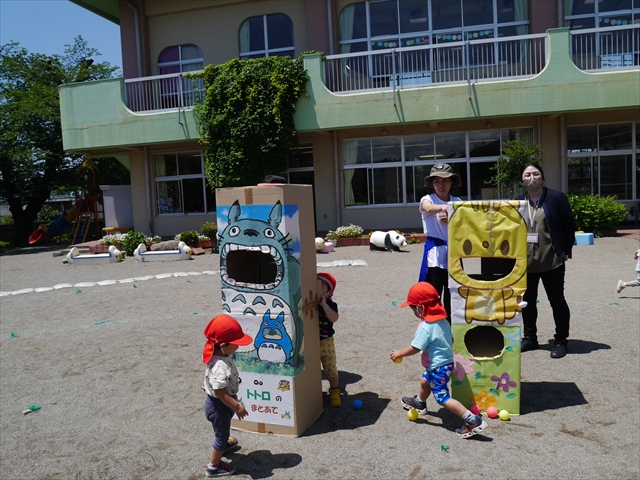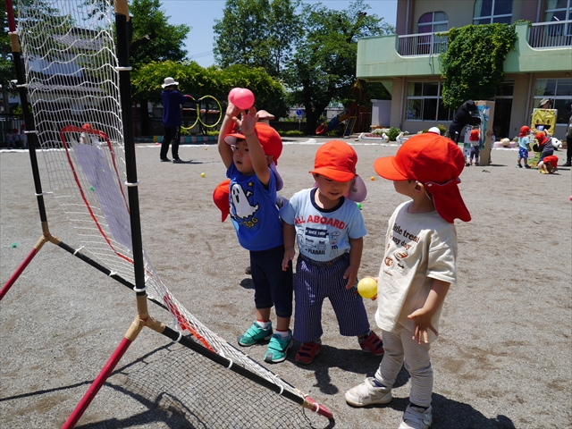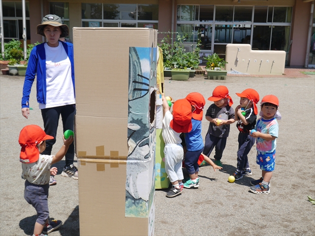 今日のたんぽぽ組は、ボール遊びをしました!先日の体育の時間で取り組んだボール遊びを、今回は子どもたちが自分の好きなところで遊べるように設置しました。ボールの狙いがより定まるよう、ネットの部分にバイキンマンを付けてみると「バイキンマンだ~!」と子どもたちは大喜び!バイキンマンに向かって投げたり、トトロとりすの口に投げ入れたり、動くフープに投げたりなど、ボールにたくさん触れて楽しむことができました最後は、フープにテープを付けてボールが貼りつくように変身☆今までの”投げる”とはまた違ったボールの楽しさを味わってくれました。