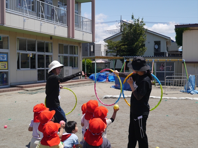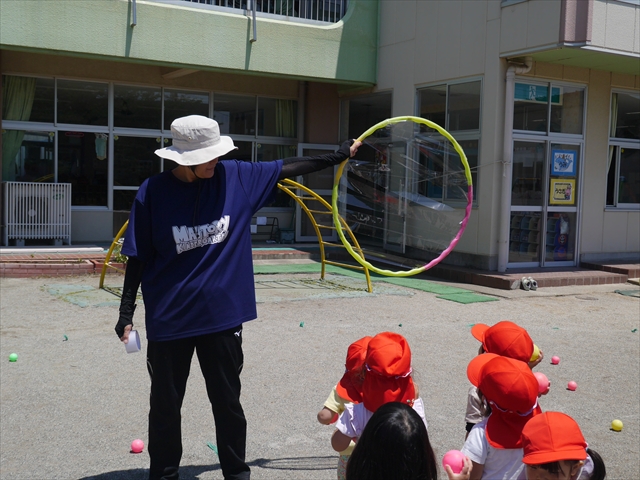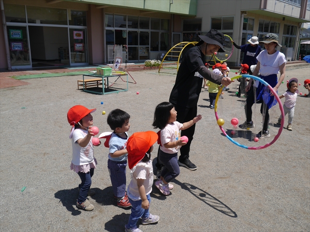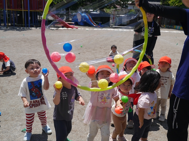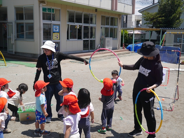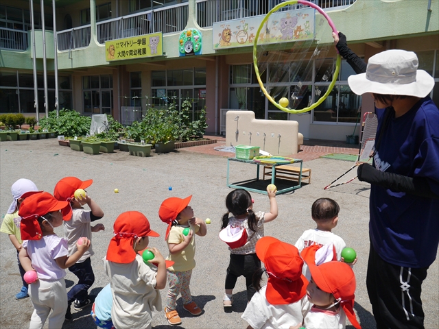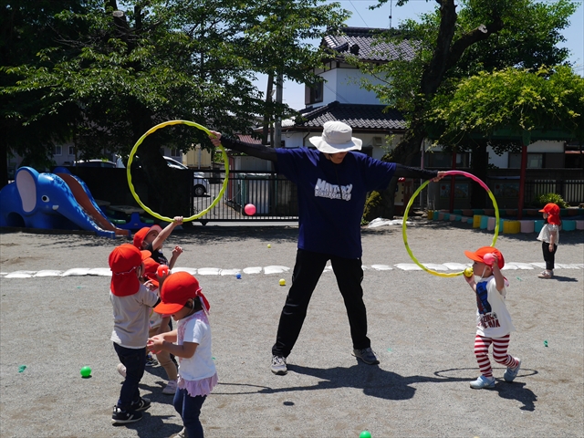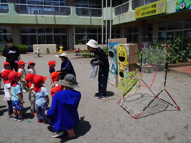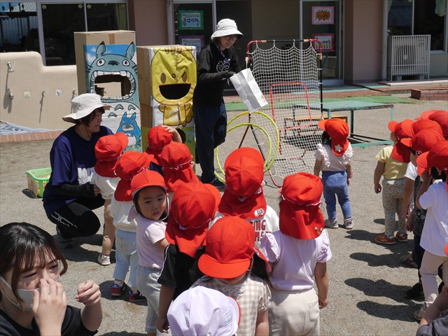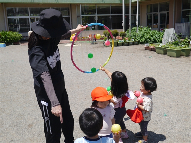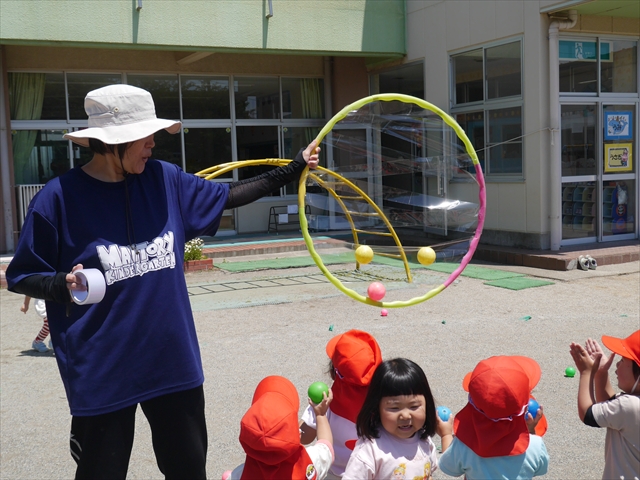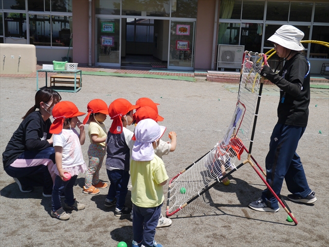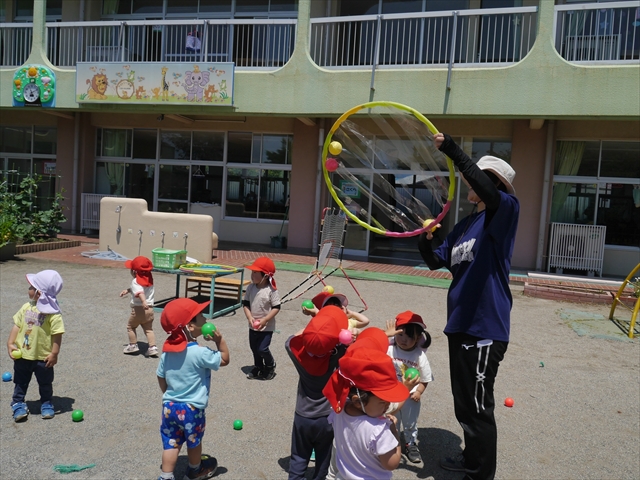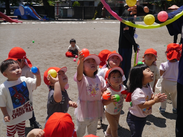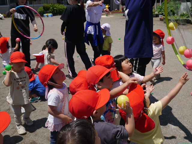 今日のたんぽぽ組は、ボール遊びをしました!先日の体育の時間で取り組んだボール遊びを、今回は子どもたちが自分の好きなところで遊べるように設置しました。ボールの狙いがより定まるよう、ネットの部分にバイキンマンを付けてみると「バイキンマンだ~!」と子どもたちは大喜び!バイキンマンに向かって投げたり、トトロとりすの口に投げ入れたり、動くフープに投げたりなど、ボールにたくさん触れて楽しむことができました最後は、フープにテープを付けてボールが貼りつくように変身☆今までの”投げる”とはまた違ったボールの楽しさを味わってくれました。