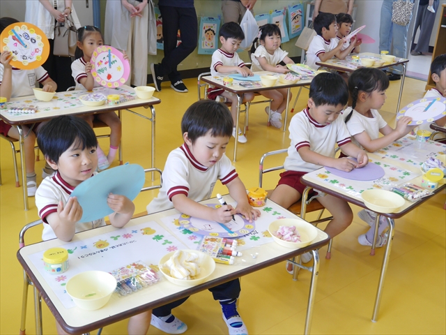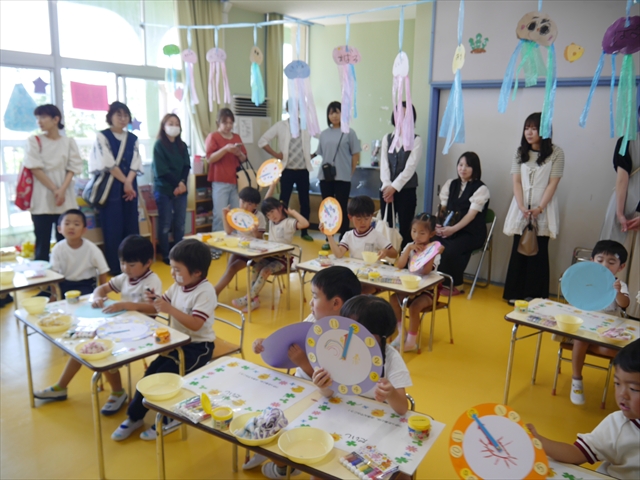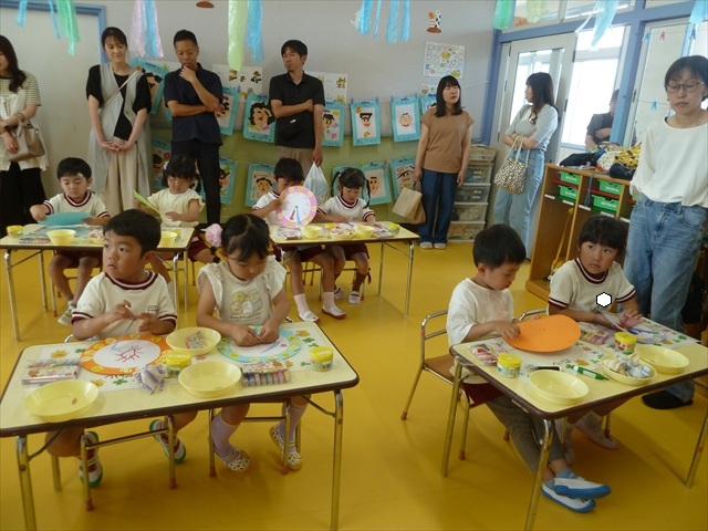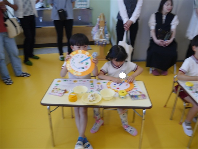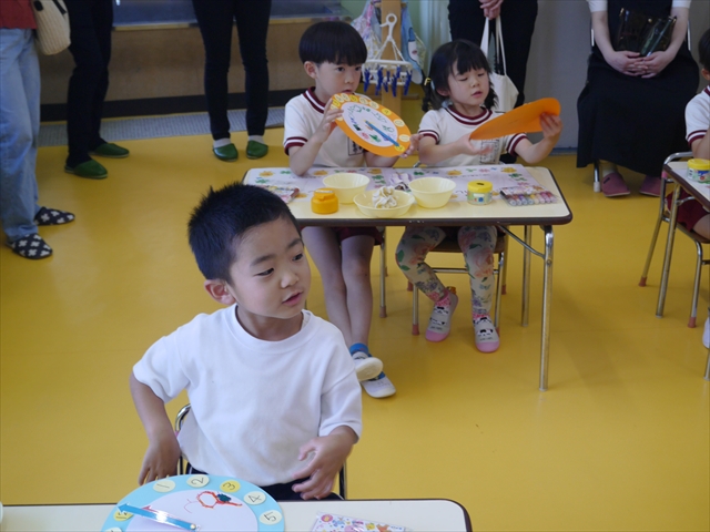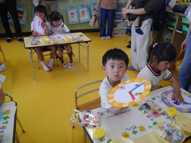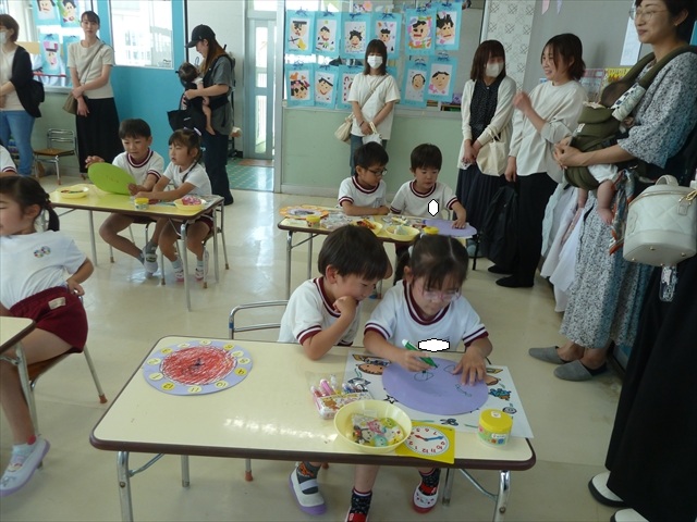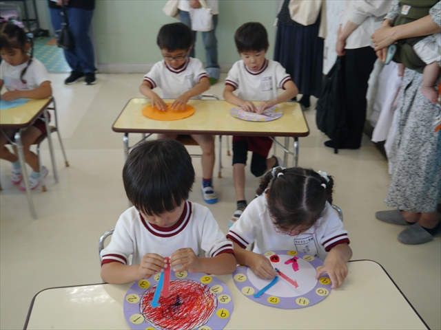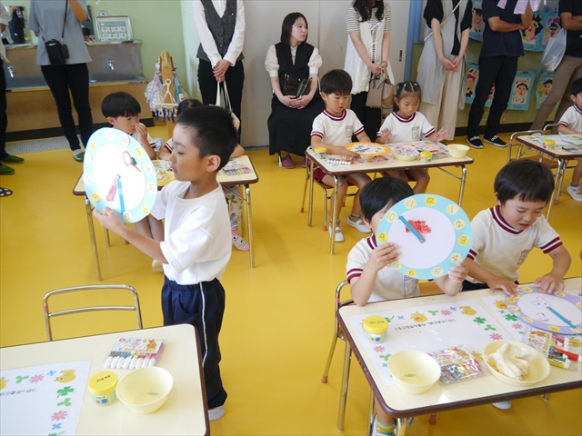 今日の保育参観の内容は、本園の園内研修のテーマである「造形活動の時間」と昨年の研修である「算数の時間」で身に付けた「時計の見方」を取り入れた複合的カリキュラムを実践した授業でした。先生方もいろいろ研究して準備して頑張ってくれたと思いますが、如何だったでしょうか?(^_^;) (*^_^*)