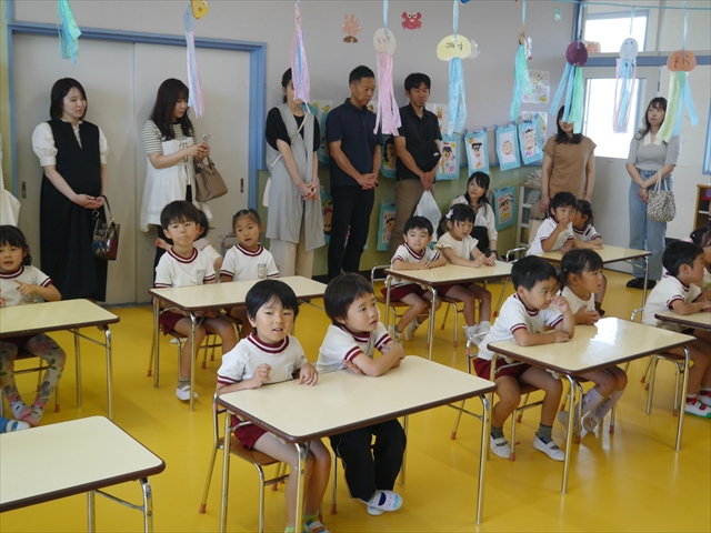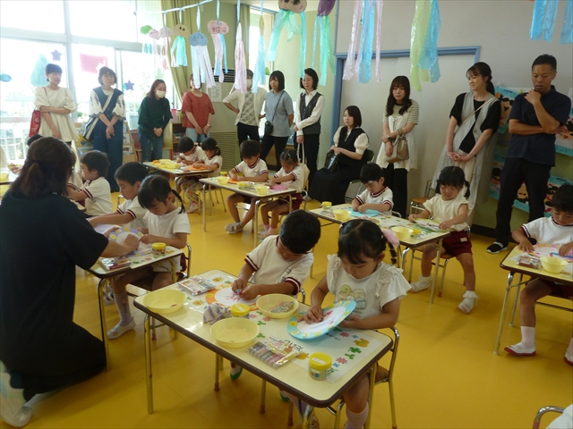 保育参観の後は、学級懇談会お世話になりました。保護者の皆さんが気になっている「お泊まり保育」についての細かいお話は、7月17日(木)の「ダンス教室」公開授業の後に、「お泊まり保育連絡説明会」(10:55~)を開催し、ご説明させていただきます。お忙しい中申し訳ありませんが、またご参加下さい。m(_ _)m