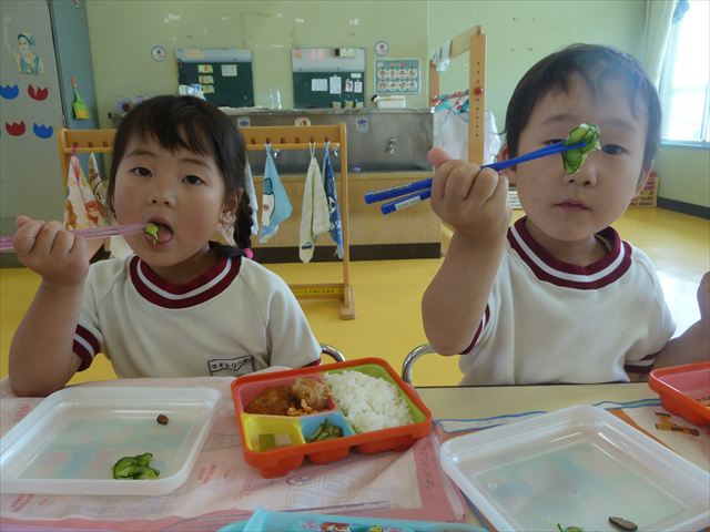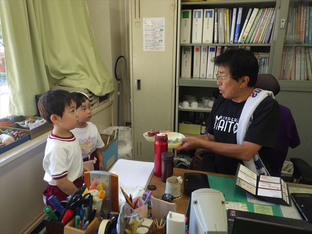 園長先生にもおいしいきゅうりの塩もみをお届けして職員室の先生たちみんなに食べていただきました!