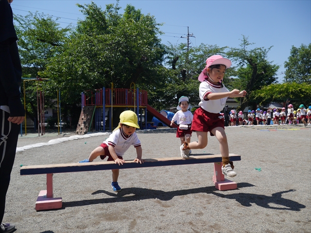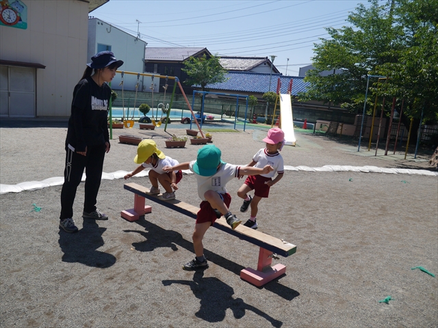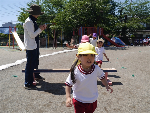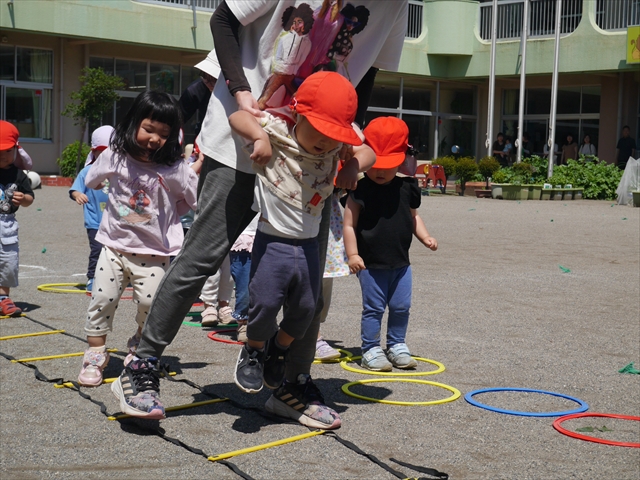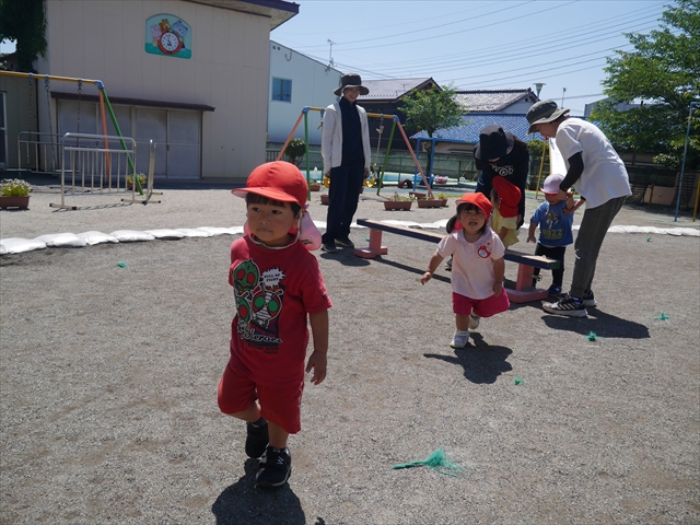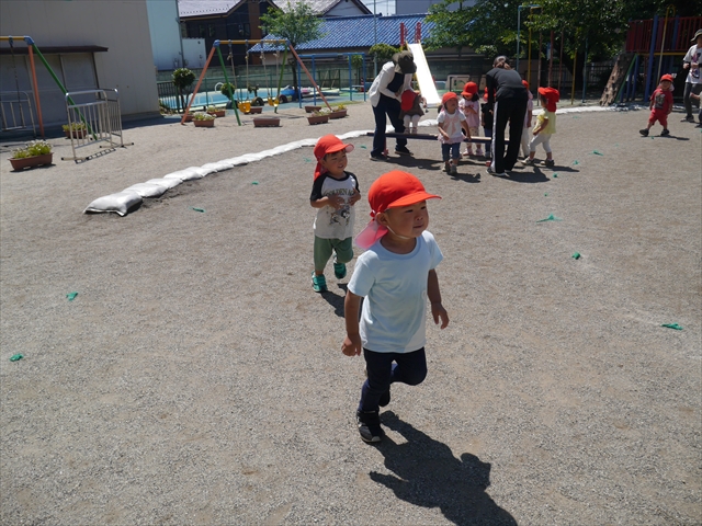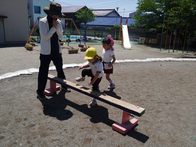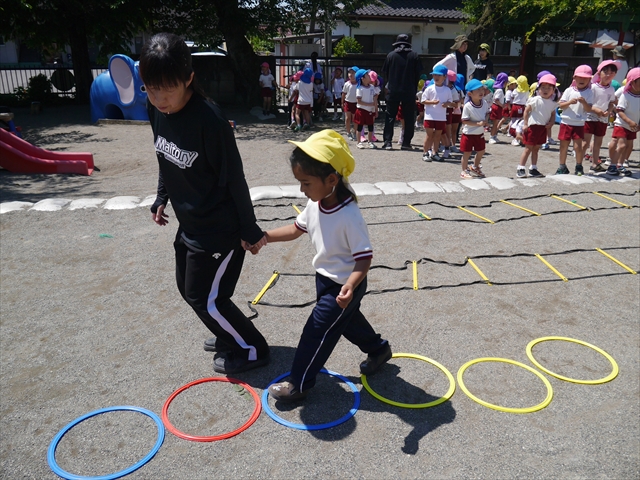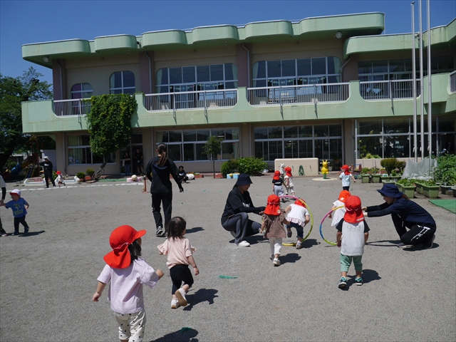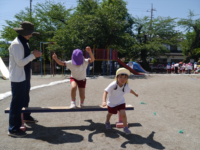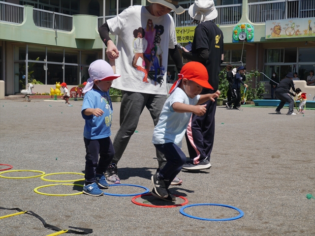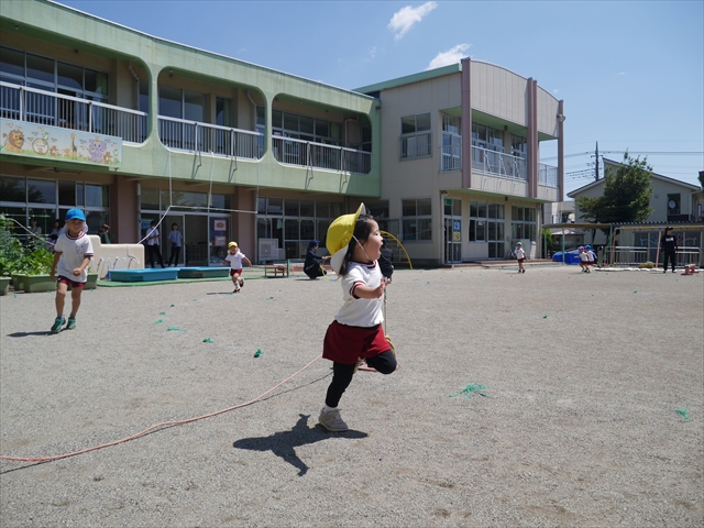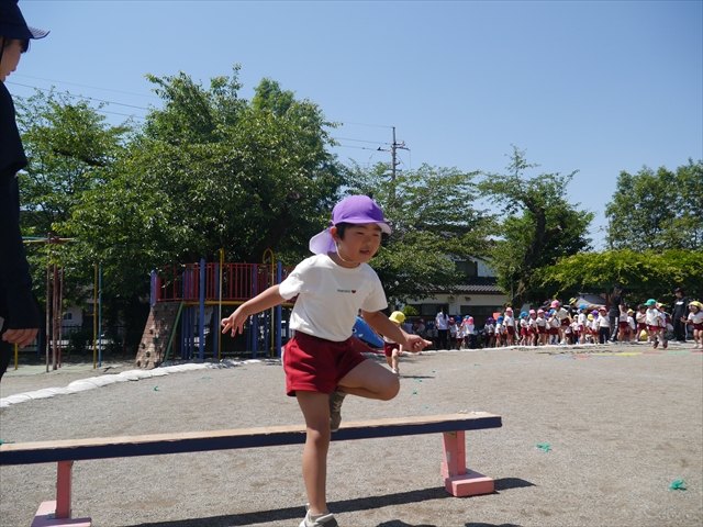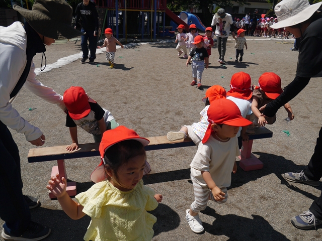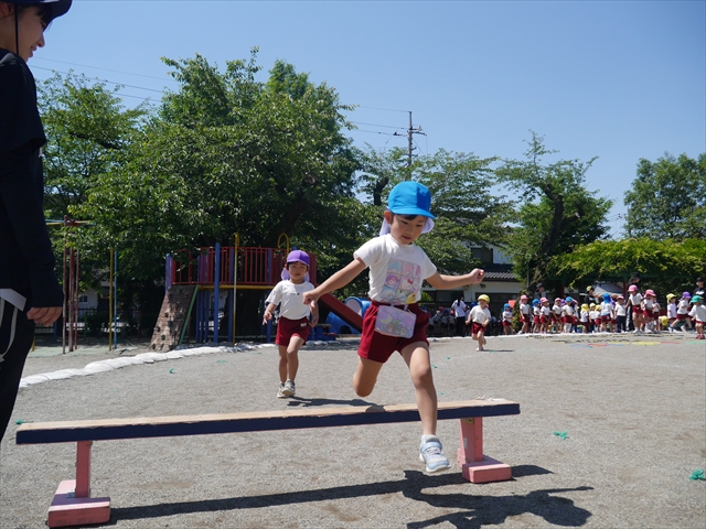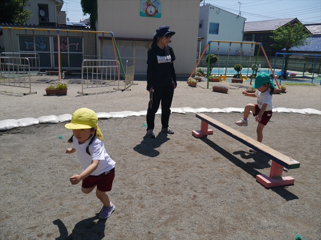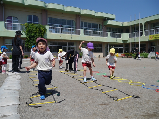 今日は、朝から夏全開のような暑さの天気でした。元気に朝の園庭遊びをした後、今日の朝の活動は「サーキットトレーニング1」でした。子どもたちは、暑さに負けず元気いっぱい頑張りました!えらい!\(^_^)/ ヘ(^o^)/