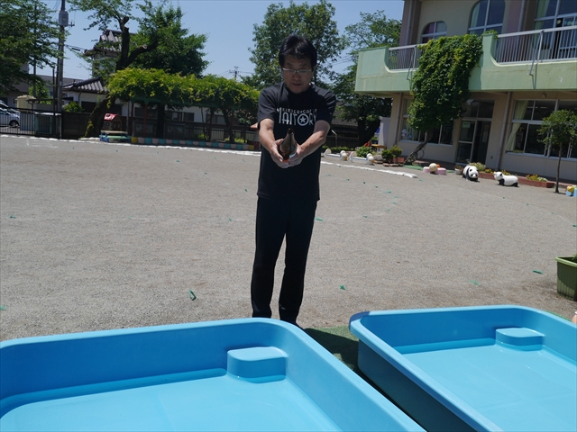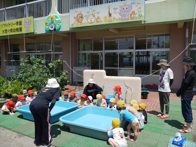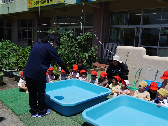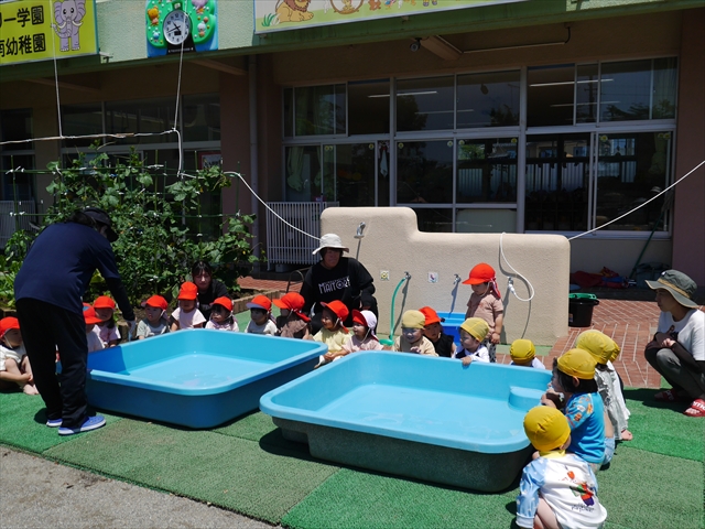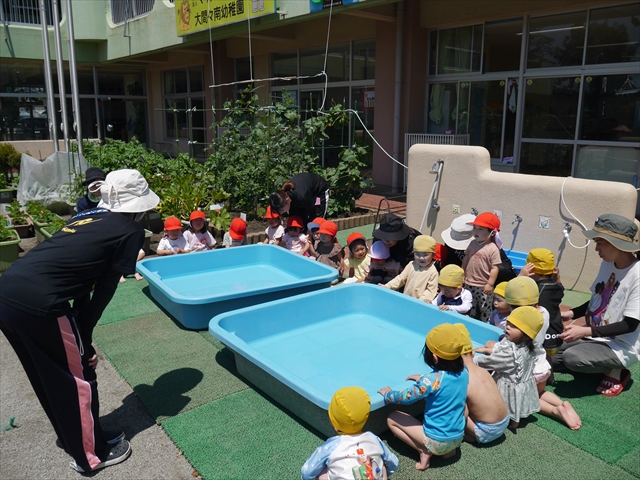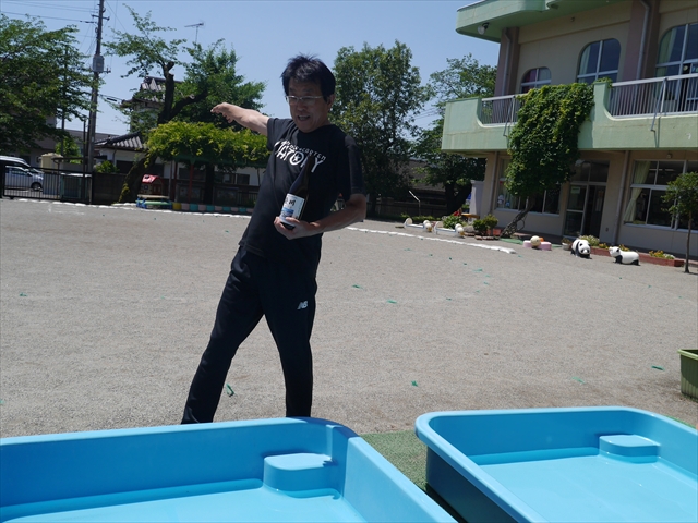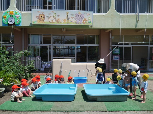 昨日は大きいプールのプール開きがあったので、今日はたんぽぽさんのプール開きをしました!「園長先生と教頭先生に悪い神様をプールから追い出してもらうよ」とお話をして、実際にお清めしていただきました。これでたんぽぽさんも、安全にプール遊びがたくさん出来ます!園長先生、教頭先生、ありがとうございました!(^^)!