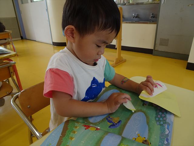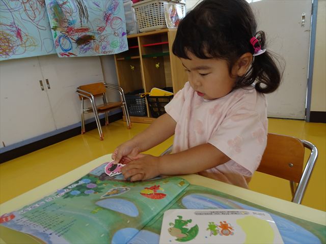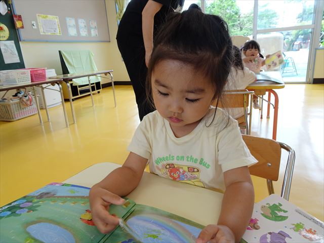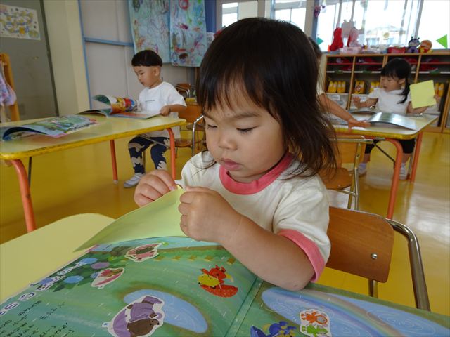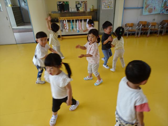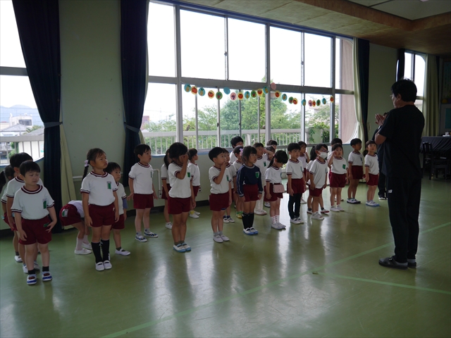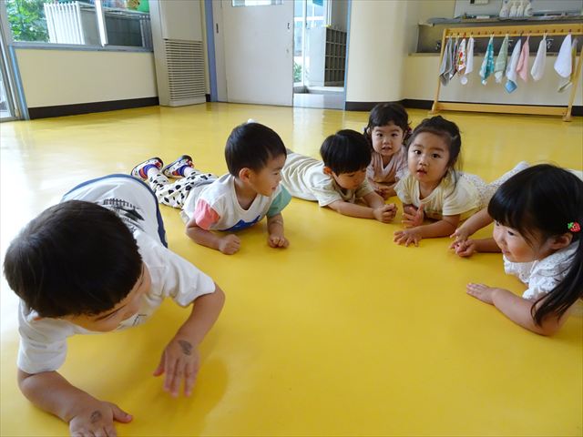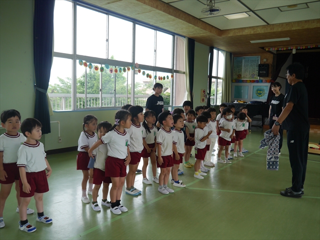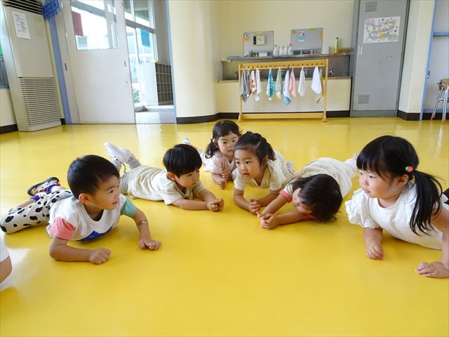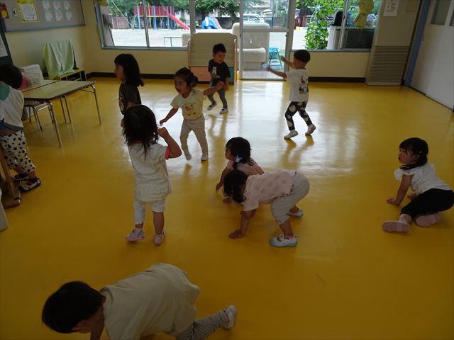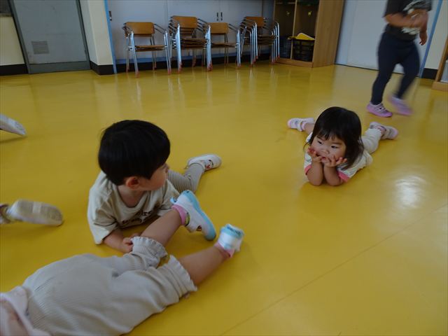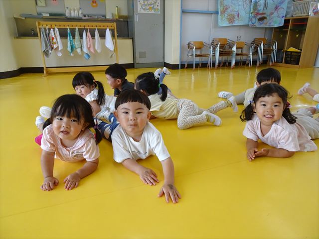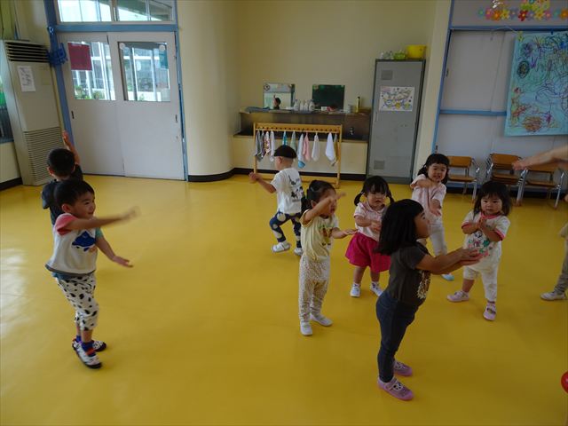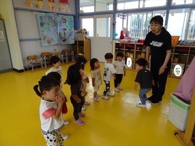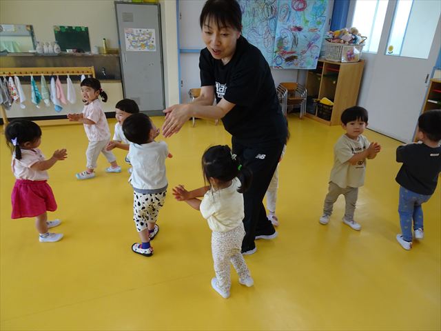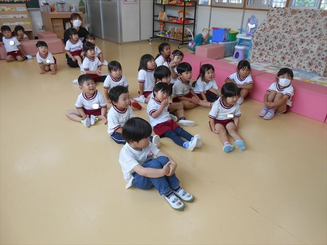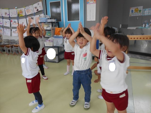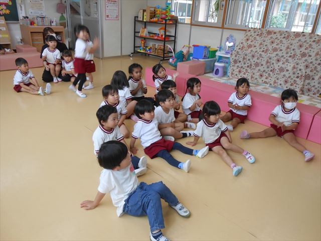 遊戯室で年中さんたちがお面のプレゼントや「サンサン体操」をしてくれ、そのあと子どもたちとトンネル遊びやケンパ遊び、マット遊びを一緒にしてくれ楽しみました。また、年長さんたちは楽しい手遊び歌やまねっこゲームなどをしてくれ、楽しく盛り上げてくれました。そして最後は、年長さんたちが得意な手話ソングの「世界中の子どもたちが」と「虹」を上手な手話を交えて歌ってくれ、年長さんのすごい力を発揮してくれました!\(^_^)/ 参加された皆さん、如何だったでしょうか!年中さんも年長さんも「さくらんぼクラブ」に参加してくれた子どもたちのために、一生懸命出し物を頑張ってくれました!みんなえらい!(^_^)v 本園の子どもたちは、みんな本当に成長します!ヘ(^o^)/ 参加してくれた子どもたちも保護者の皆さんも楽しい時間を過ごすことができたでしょうか?(*^_^*) 次回もお待ちしております!(^_^)/~