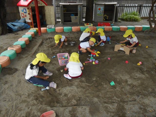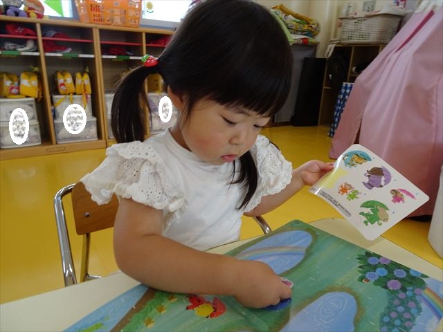 今日の「さくらんぼクラブ」のプログラムは、「第1回幼稚園体験・園内遊び」を行いました。朝の活動の「ラララ!トロピカーニバル体操」・「サーキット2」からさくらんぼクラブの子どもたちと一緒に園庭遊びや室内遊びへと繋がるプログラムでした。天気も梅雨の中休みで雨も降らず、園庭で遊ぶには丁度良い天候でした。小さなお子さんにはちょっと長い時間の活動でしたが、お忙しい中ご参加いただきありがとうございました!m(_ _)m