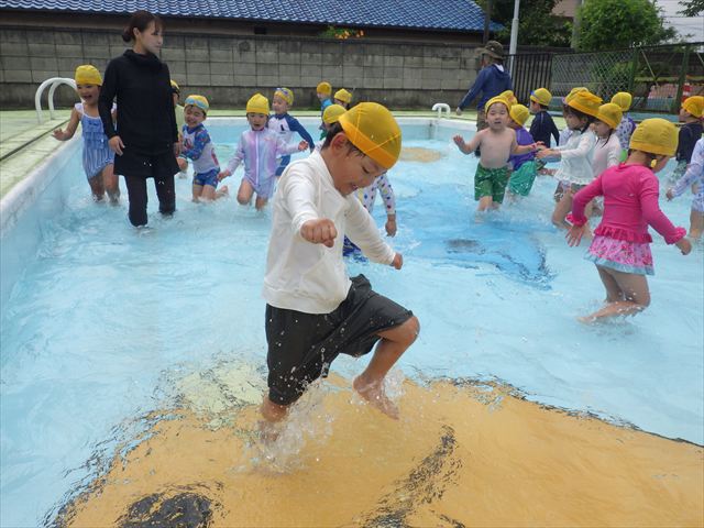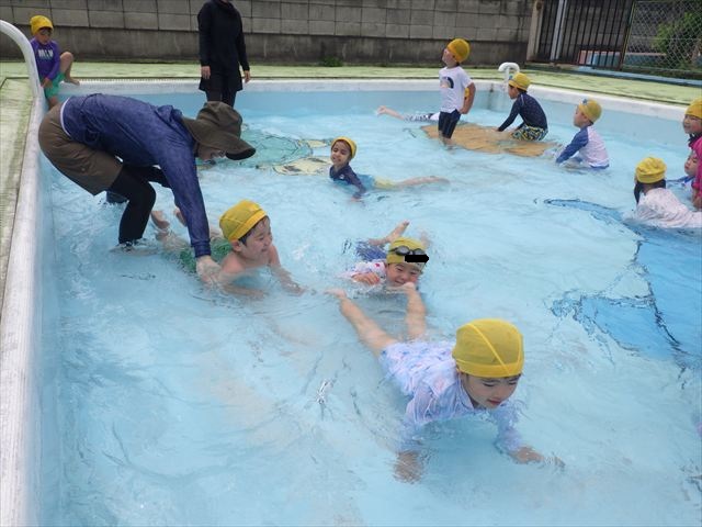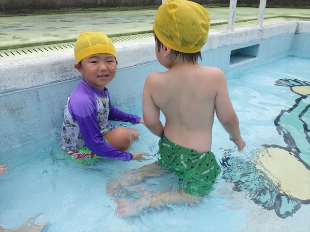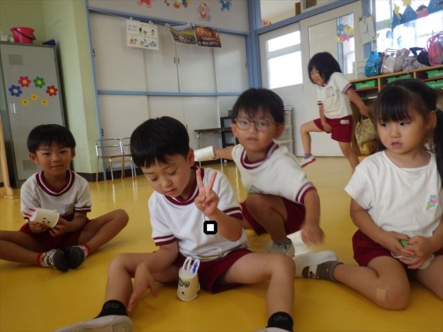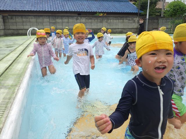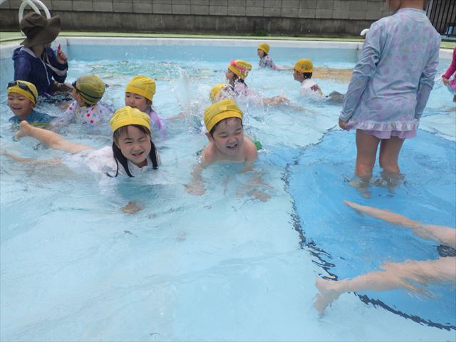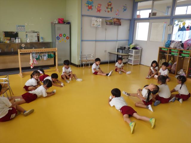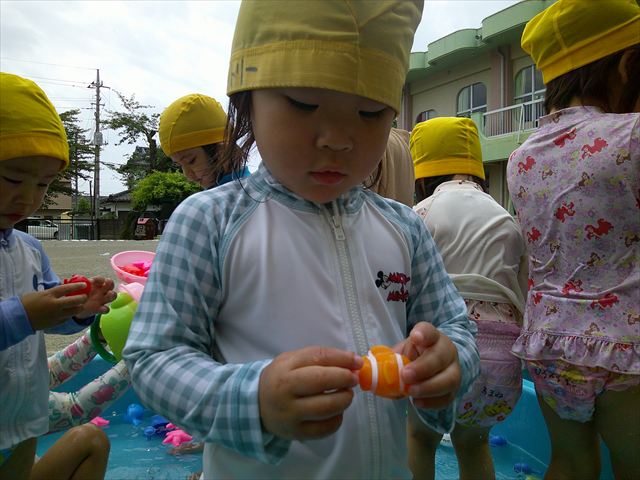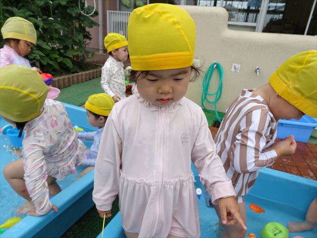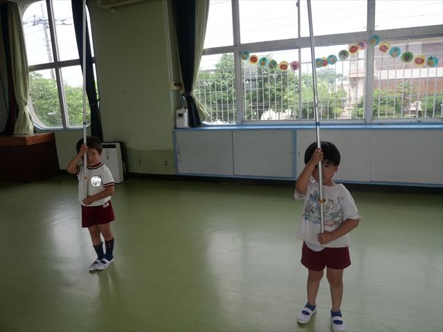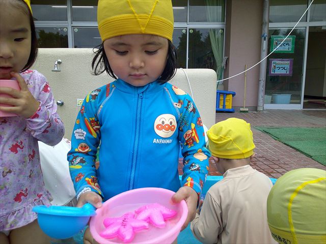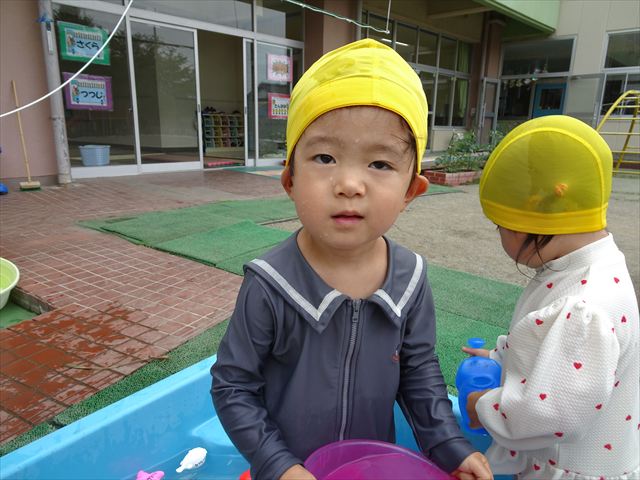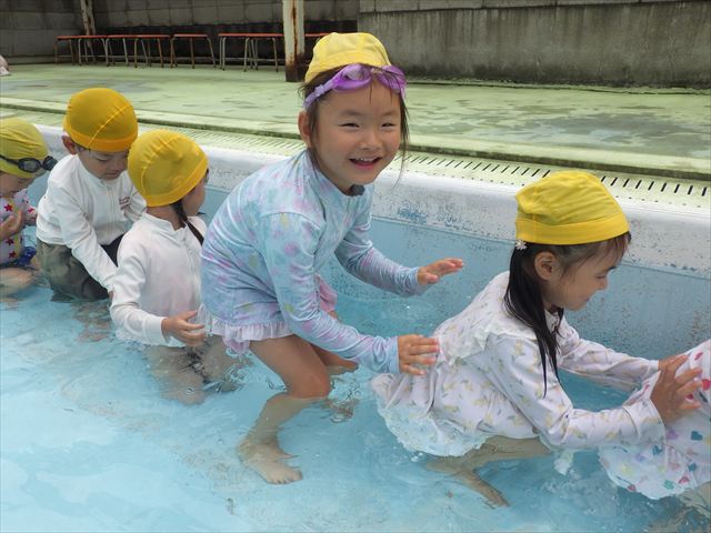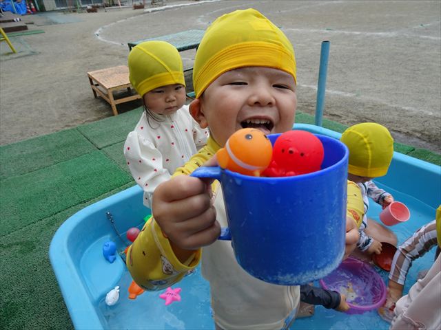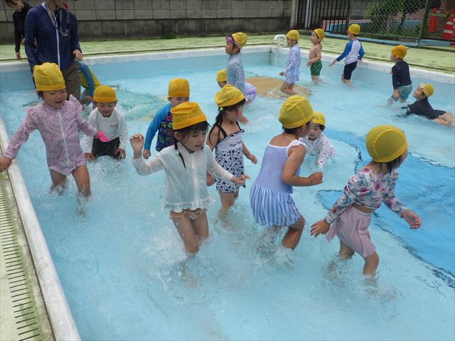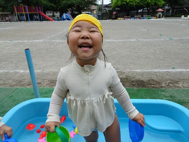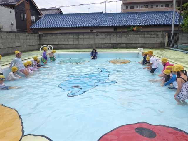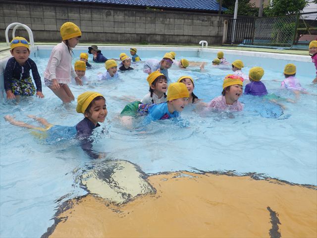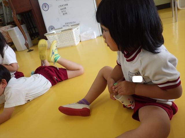 今日はプール遊びをしました。大きいプールにも慣れ楽しむ姿が見られました。水に顔をつけられるお友だちも数名いました\(^o^)/プール遊びの後は算数の時間として1〜5の数のお勉強をしました。1〜5の数字とメロンパンとお友だちを比べっこしました(^^)みんな真剣に取り組んでいました。午後はともえ先生のリトミック教室に参加しました。歩くスピードを音符で教えてもらいました。きれいなスカーフを貸していただき、ボートを漕いだり、海の生き物になったりサメが来たら隠れたり音楽に合わせて楽しむことができました。ともえ先生ありがとうございました(^^)