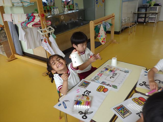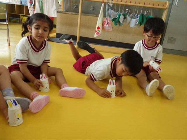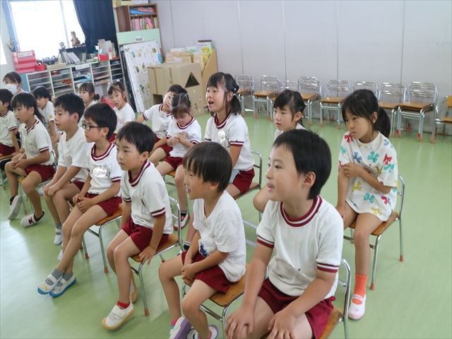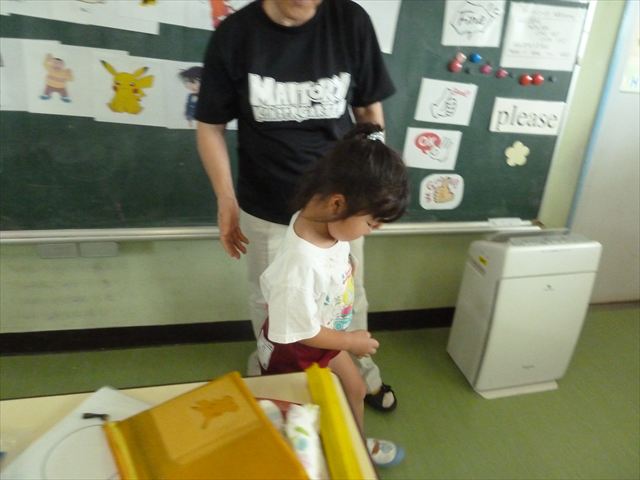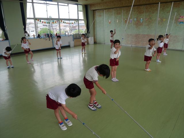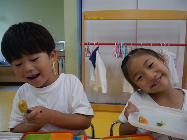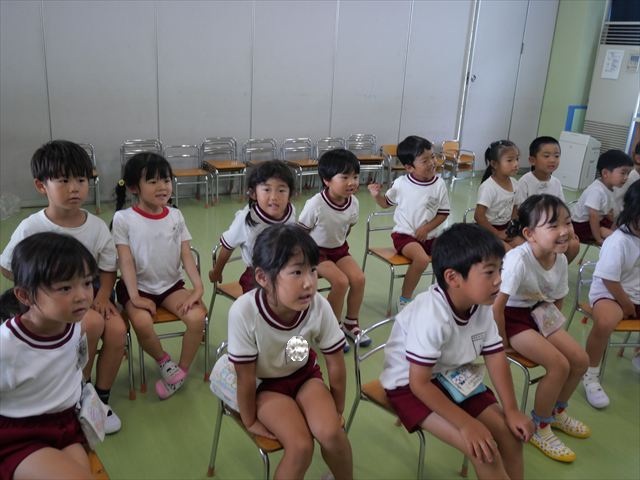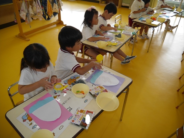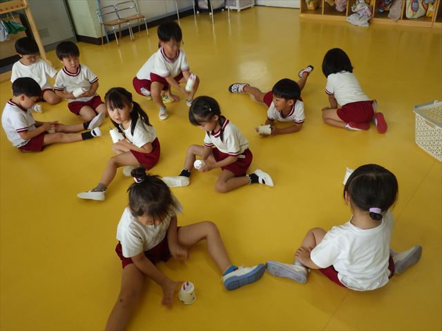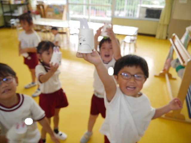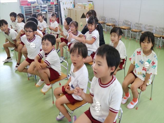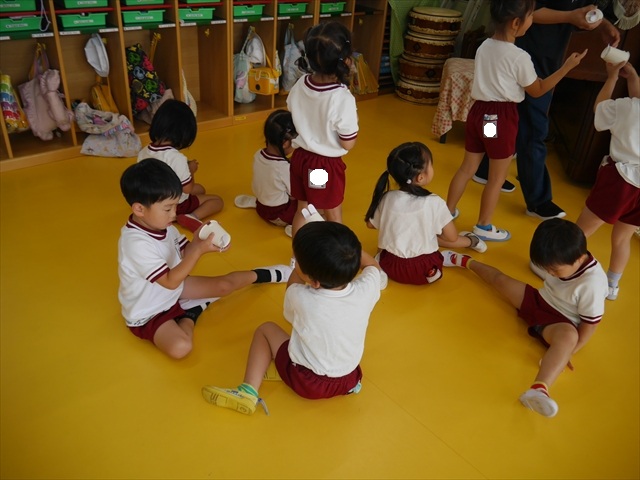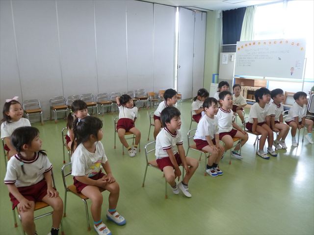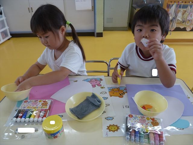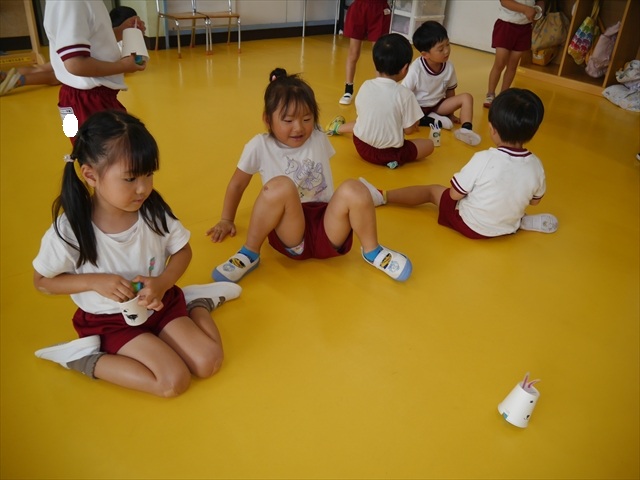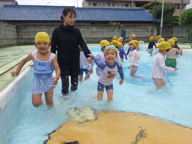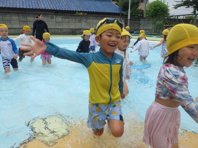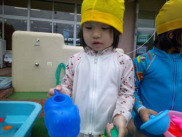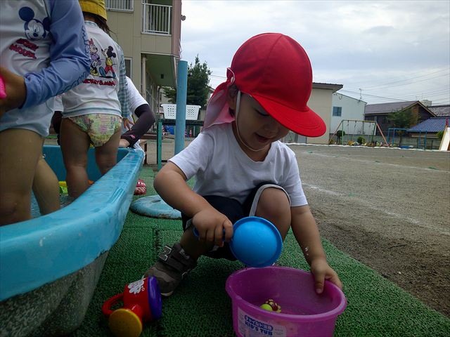今日はプール遊びをしました。大きいプールにも慣れ楽しむ姿が見られました。水に顔をつけられるお友だちも数名いました\(^o^)/プール遊びの後は算数の時間として1〜5の数のお勉強をしました。1〜5の数字とメロンパンとお友だちを比べっこしました(^^)みんな真剣に取り組んでいました。午後はともえ先生のリトミック教室に参加しました。歩くスピードを音符で教えてもらいました。きれいなスカーフを貸していただき、ボートを漕いだり、海の生き物になったりサメが来たら隠れたり音楽に合わせて楽しむことができました。ともえ先生ありがとうございました(^^)