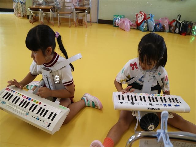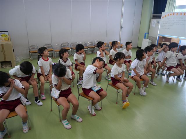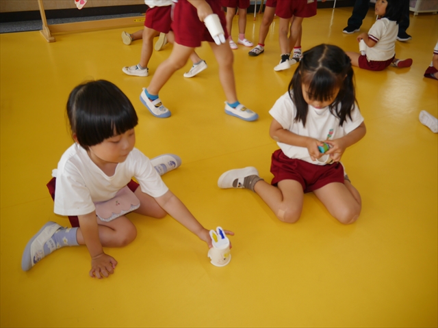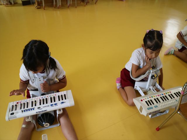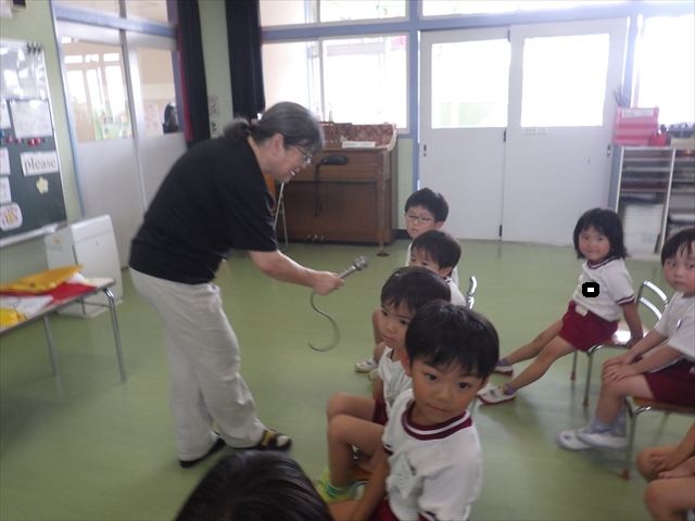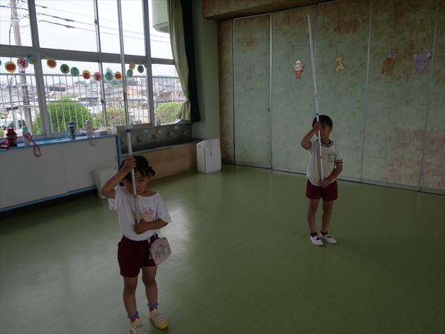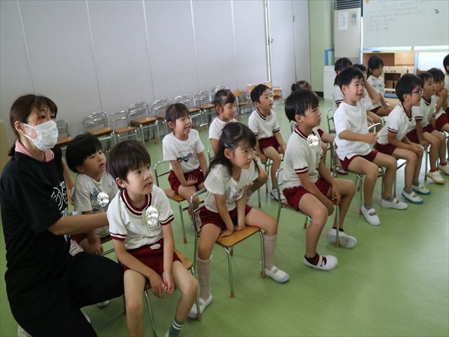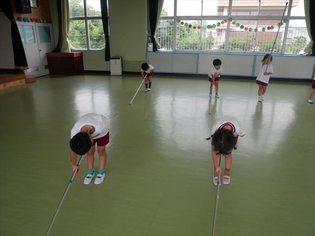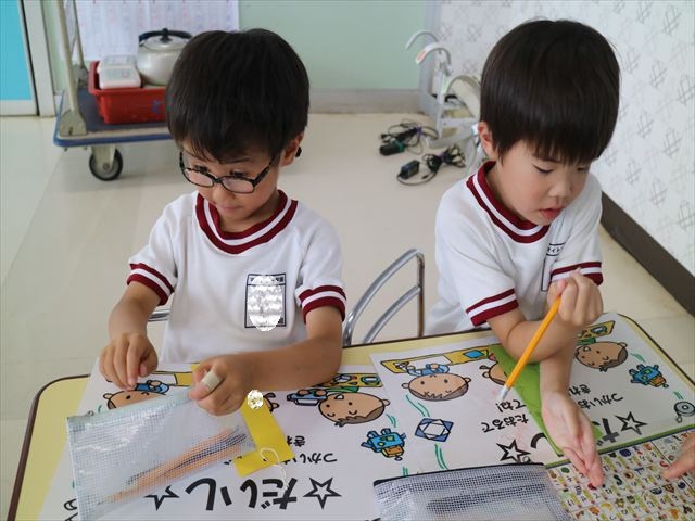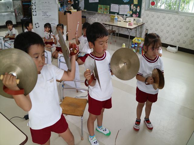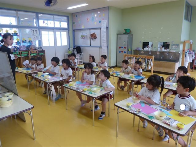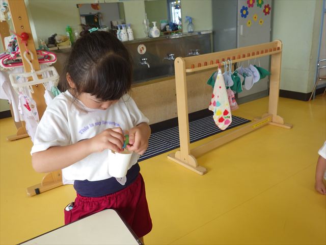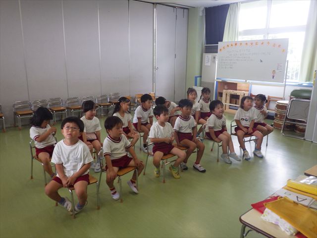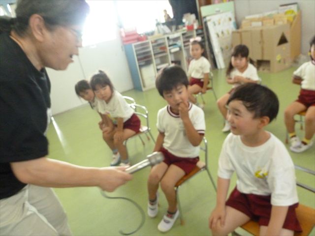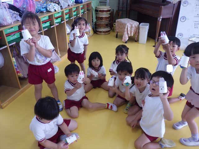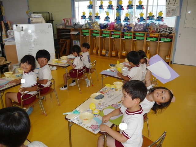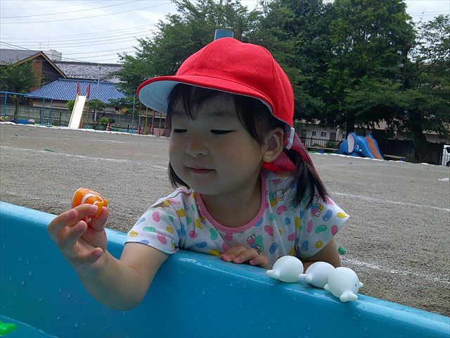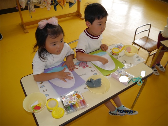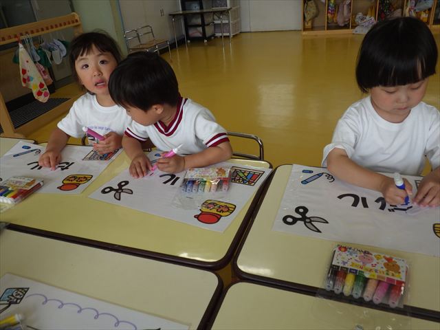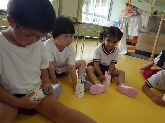 今日はプール遊びをしました。大きいプールにも慣れ楽しむ姿が見られました。水に顔をつけられるお友だちも数名いました\(^o^)/プール遊びの後は算数の時間として1〜5の数のお勉強をしました。1〜5の数字とメロンパンとお友だちを比べっこしました(^^)みんな真剣に取り組んでいました。午後はともえ先生のリトミック教室に参加しました。歩くスピードを音符で教えてもらいました。きれいなスカーフを貸していただき、ボートを漕いだり、海の生き物になったりサメが来たら隠れたり音楽に合わせて楽しむことができました。ともえ先生ありがとうございました(^^)