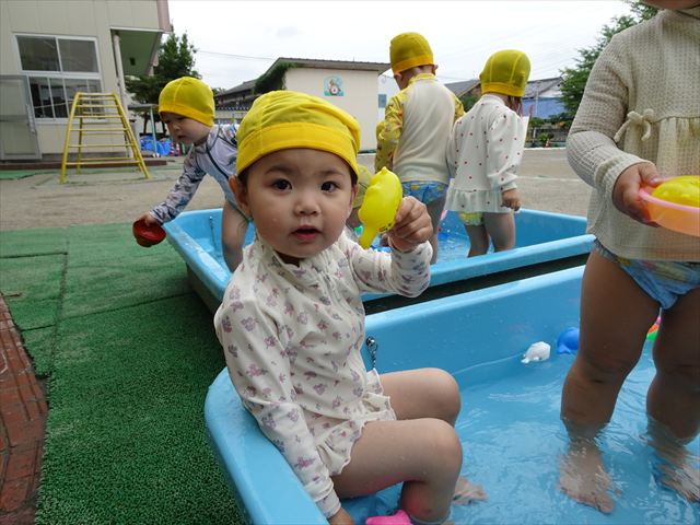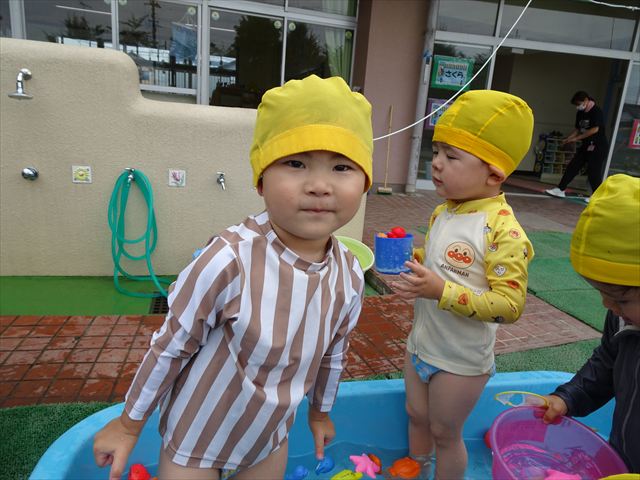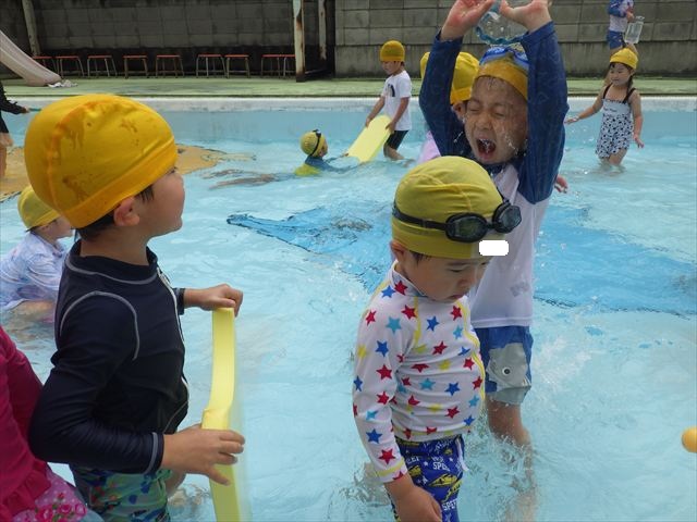 今日も元気にプール遊びです☆水にもだいぶ慣れてきて、シャワーで自分から顔にかかりにいく子も(笑)怖がらずに楽しんでくれて何よりです(^O^)