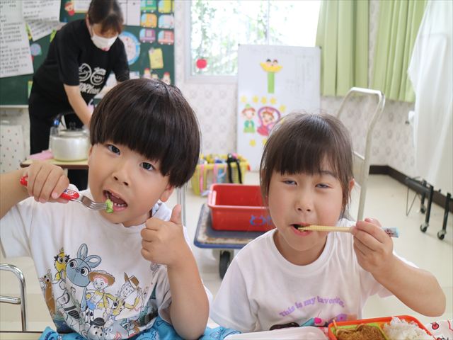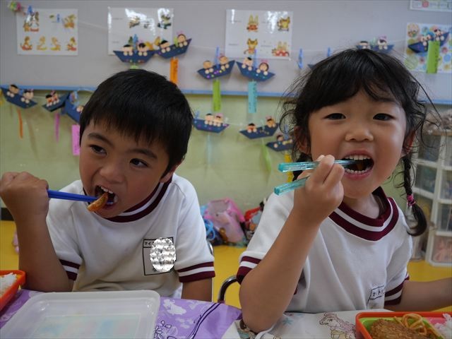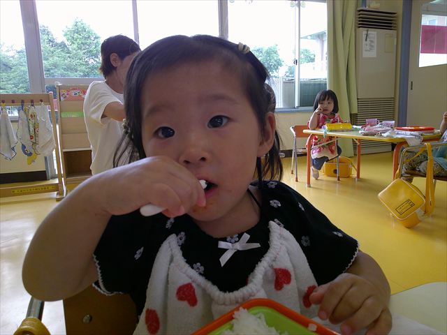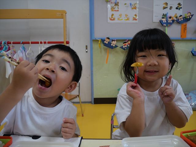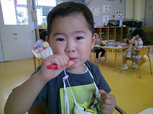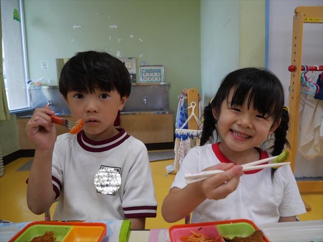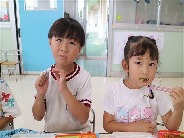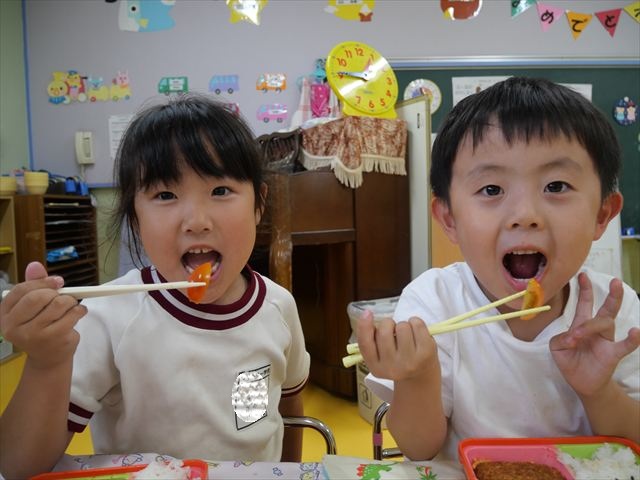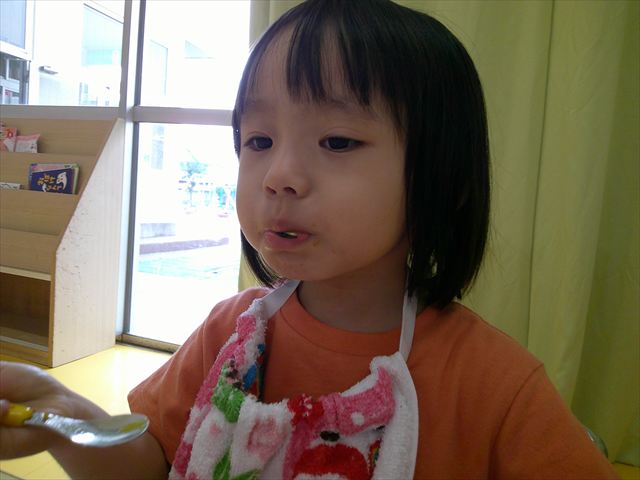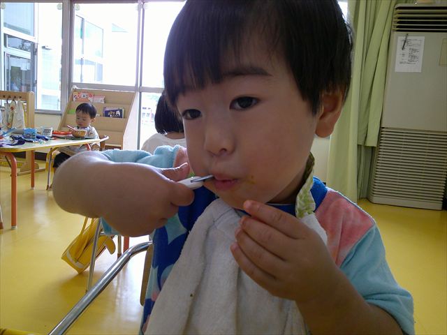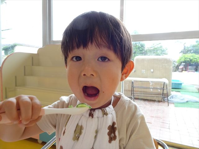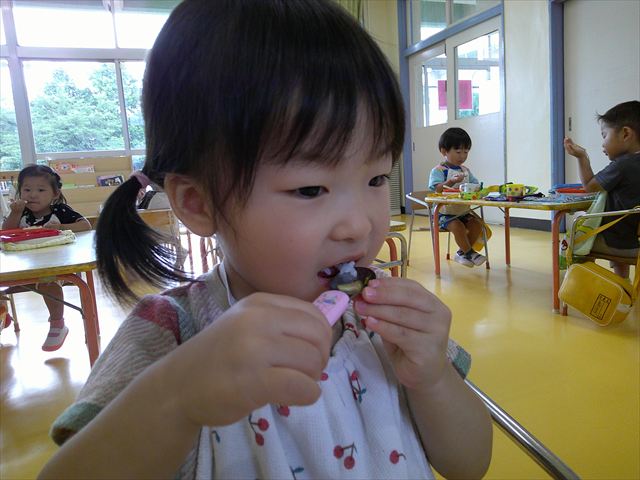 今日は、きゅうり・ズッキーニ・ナスを食べました!ズッキーニはきゅうりと見た目が似ていて「おんなじ?」と混乱するお友だちもいたので、「ズッキーニのお友だちだよ!」と伝えました。どのお野菜もパクパク美味しそうに食べていました(^^)/