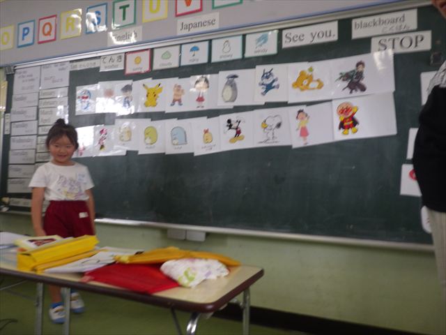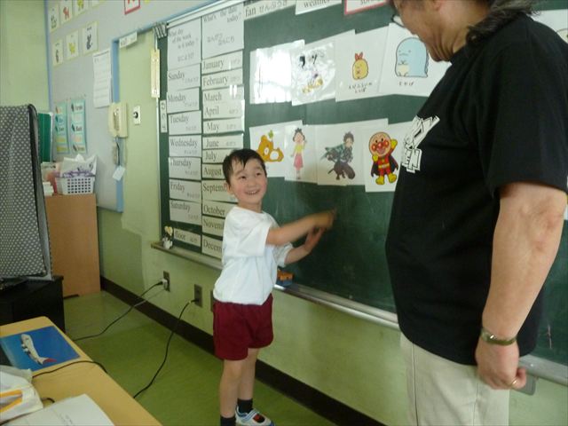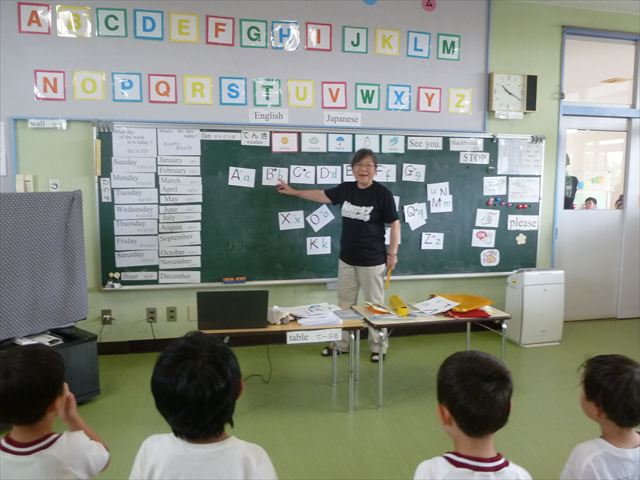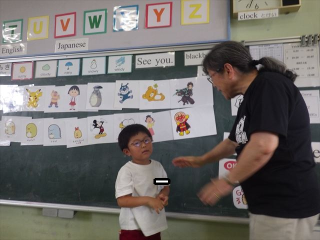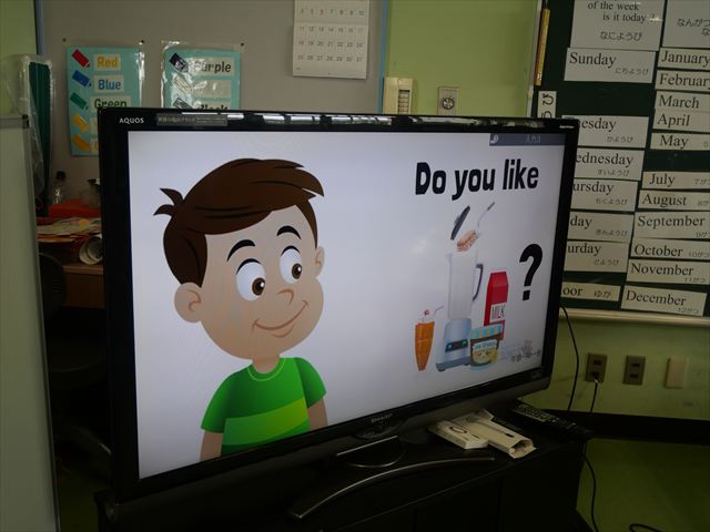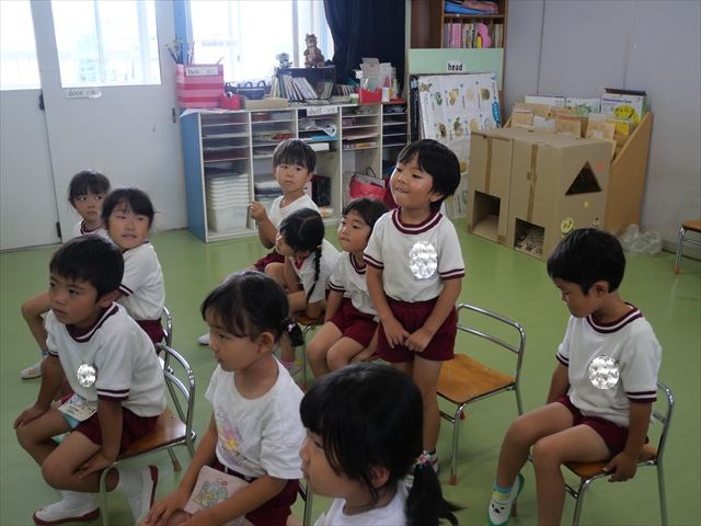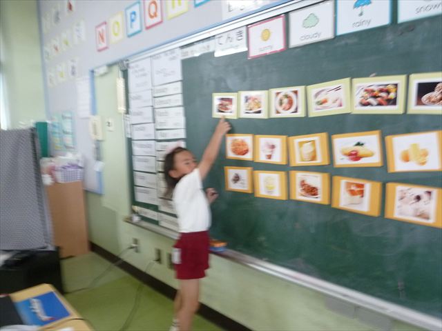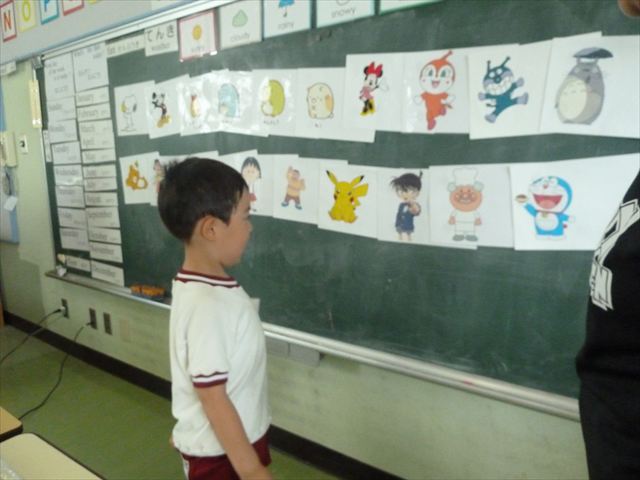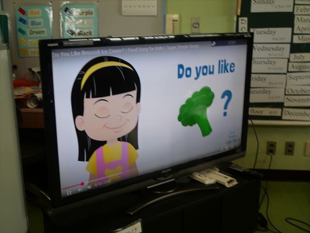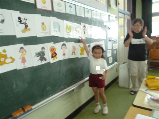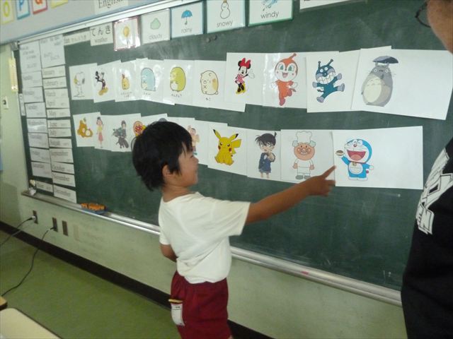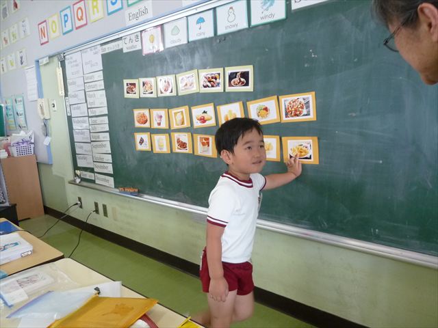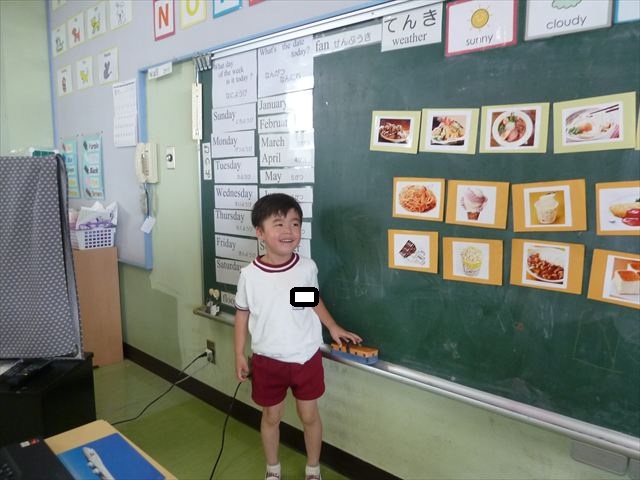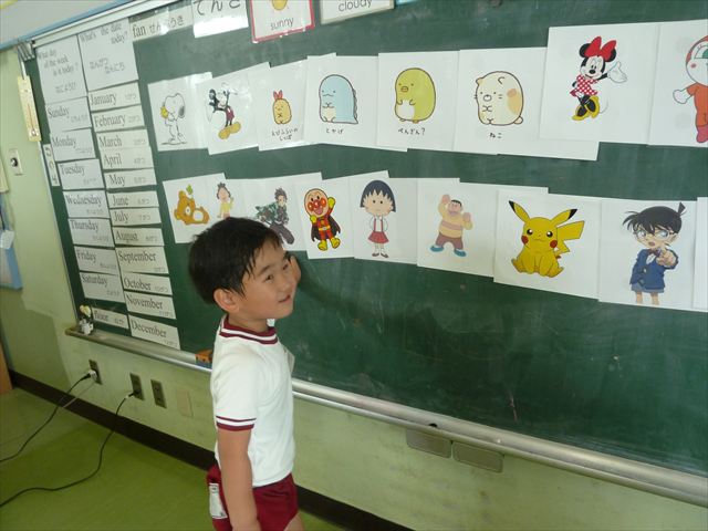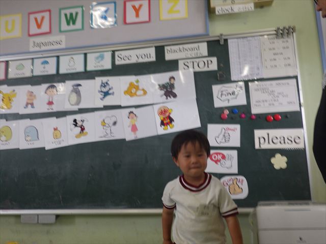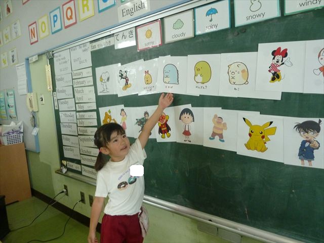 今日の英語教室は、「Ⅰ like 〇〇〇。」私は〇〇〇が好きです。を、キャラクターや食べ物で答える練習をしました。みんな積極的に手をあげて元気な英語教室でした!また、アルファベットの正しい発音も教えていただきました。