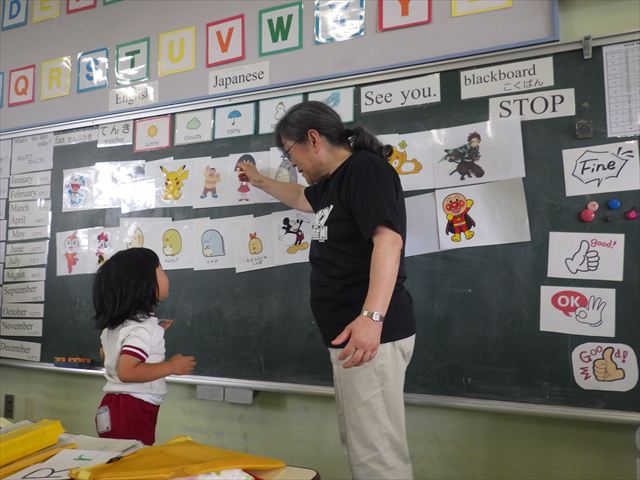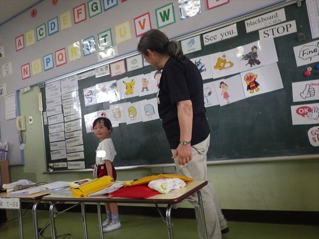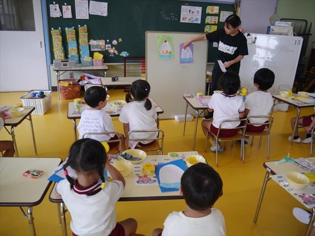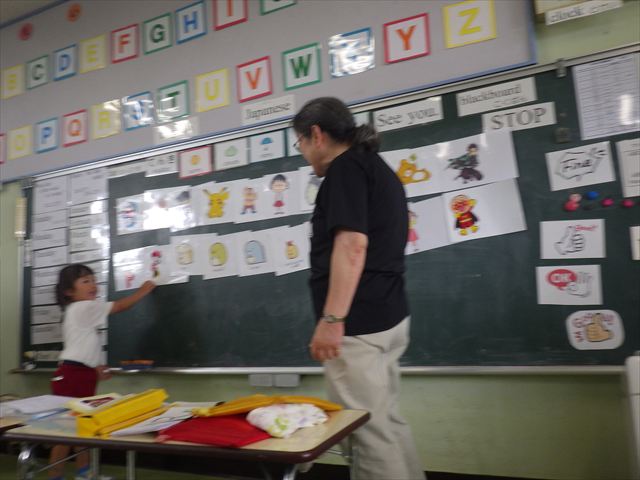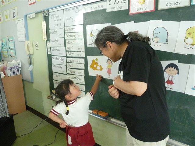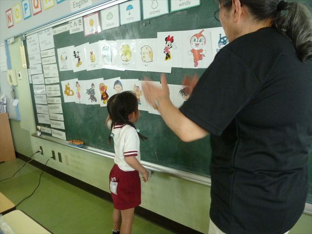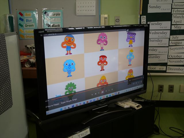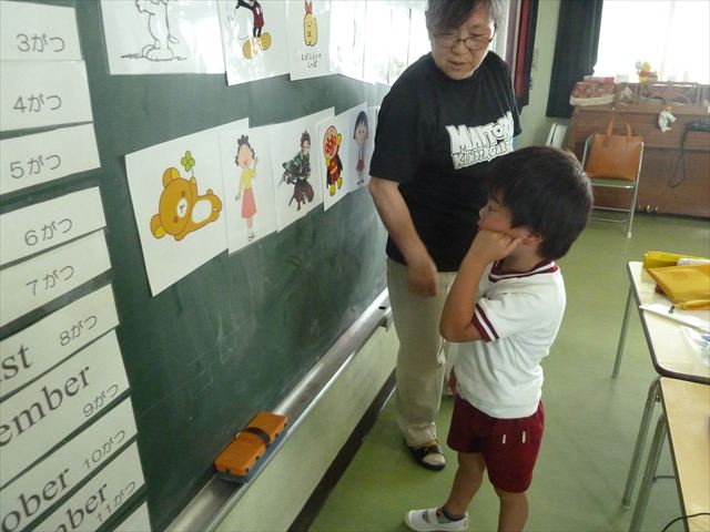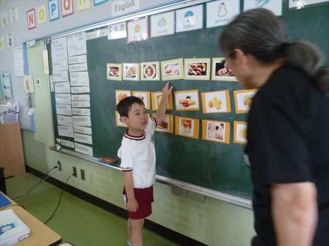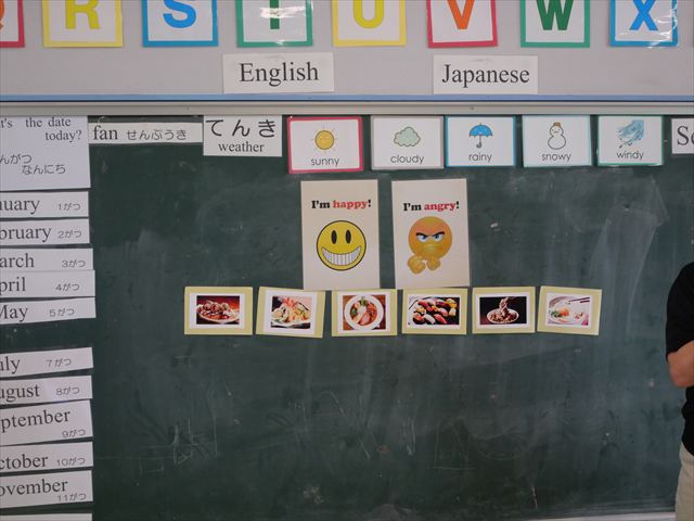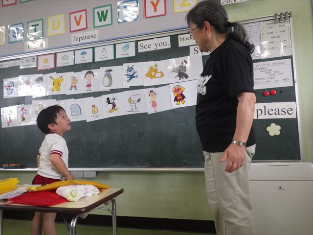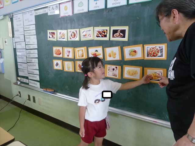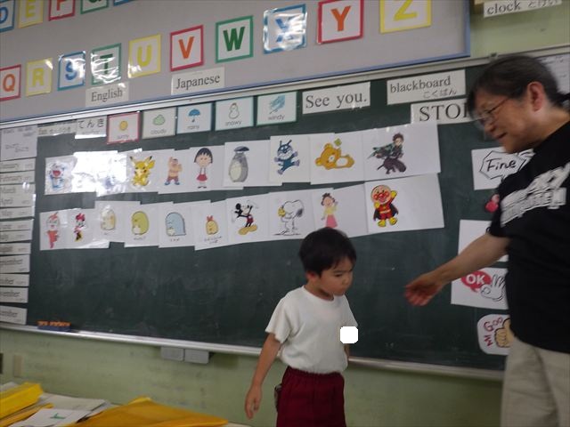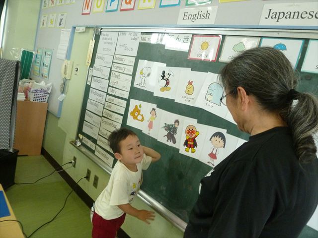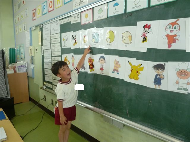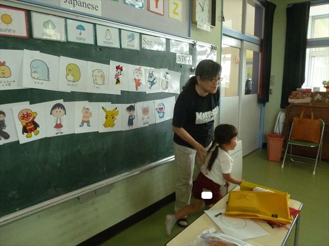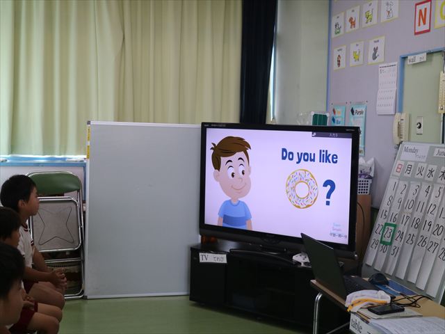 今日の英語教室は、「Ⅰ like 〇〇〇。」私は〇〇〇が好きです。を、キャラクターや食べ物で答える練習をしました。みんな積極的に手をあげて元気な英語教室でした!また、アルファベットの正しい発音も教えていただきました。