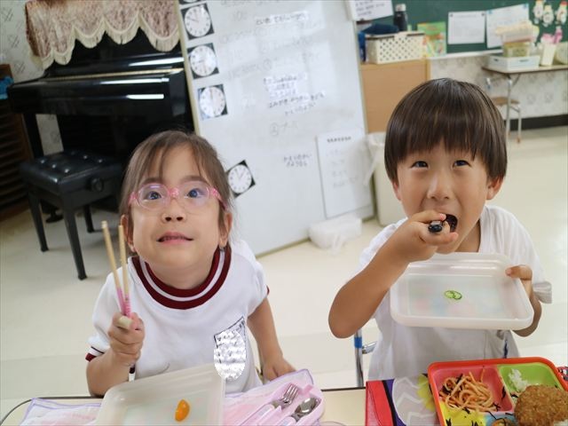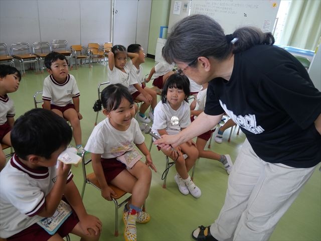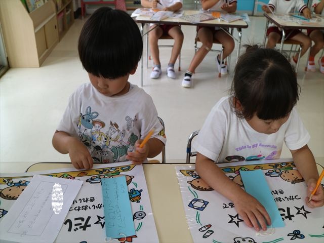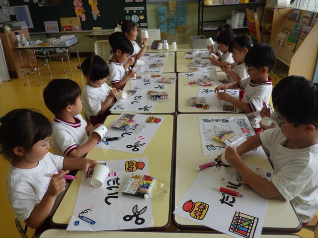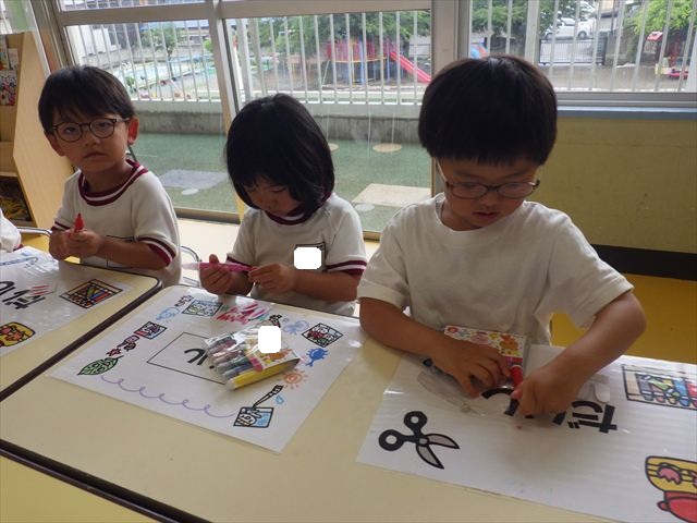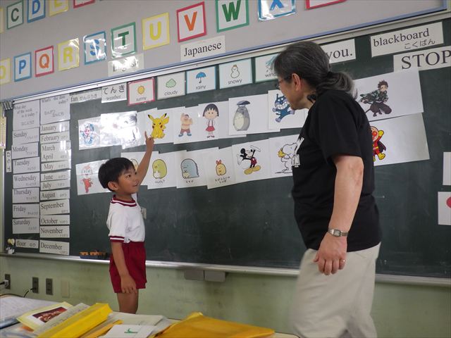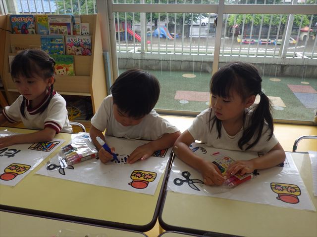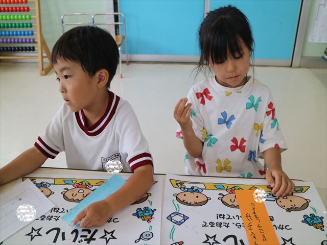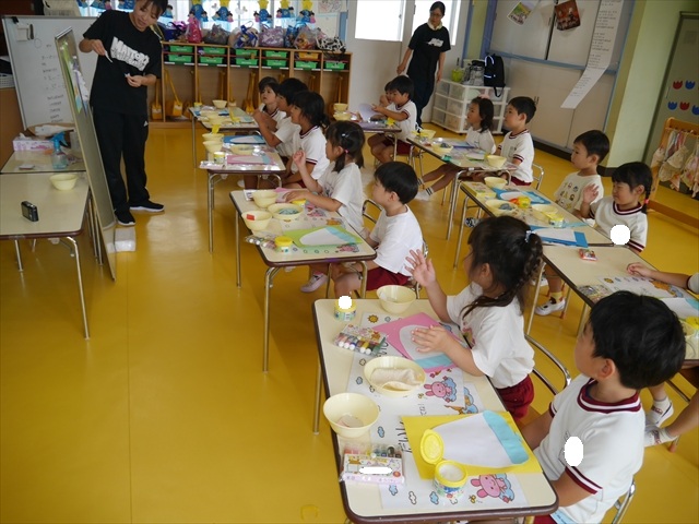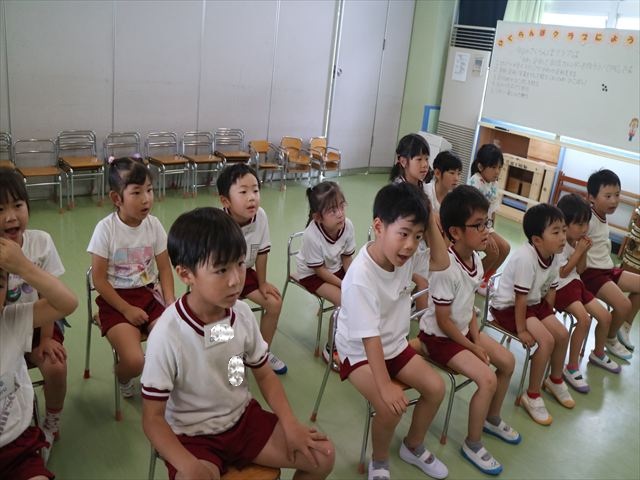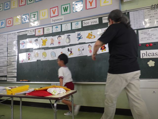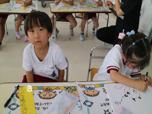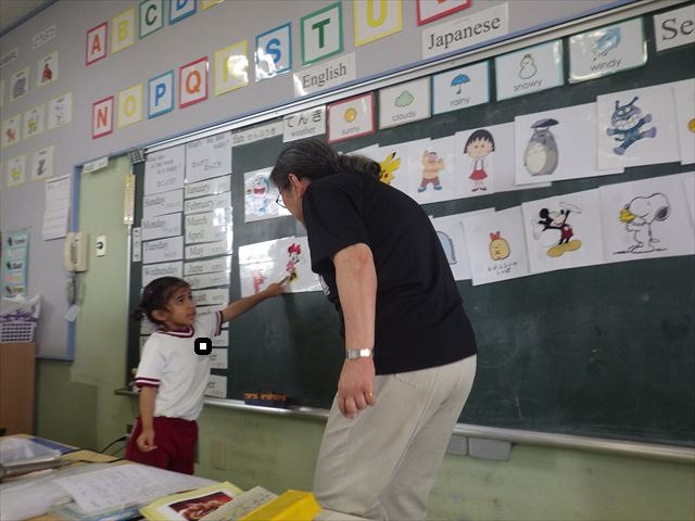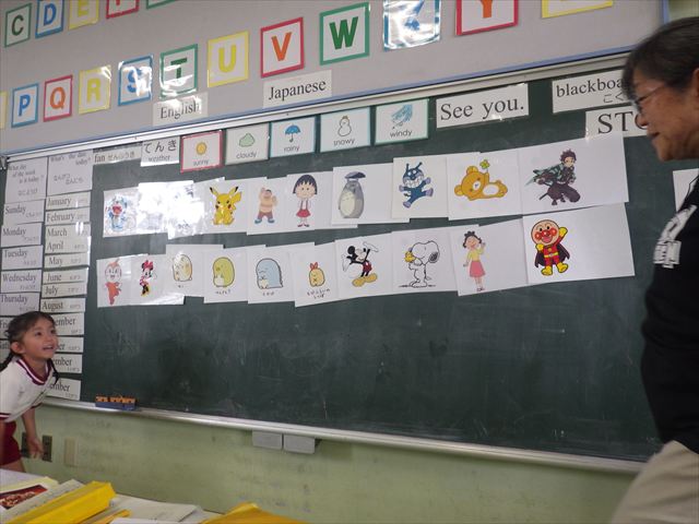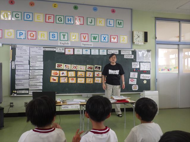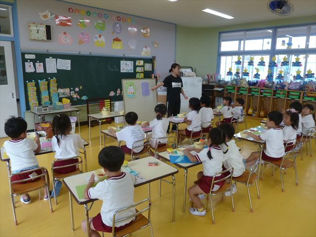 今日の英語教室は、「Ⅰ like 〇〇〇。」私は〇〇〇が好きです。を、キャラクターや食べ物で答える練習をしました。みんな積極的に手をあげて元気な英語教室でした!また、アルファベットの正しい発音も教えていただきました。