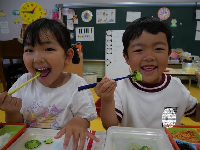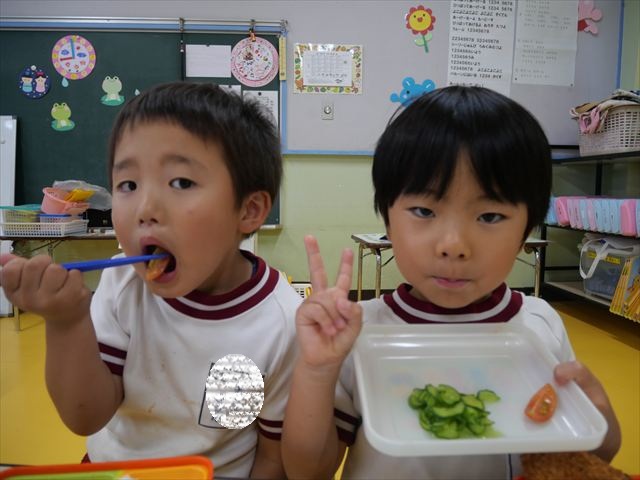 食育「食べて育てる!」第15弾きゅうり・ミニトマトを食べました☆年長・年中☆