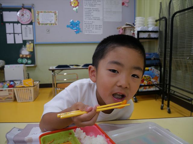 「5つのこころ」ひとつにはこのごはんは多くの人々のお力で作られたものです。ふたつには慈しみのみ心がこもっています。みっつにはうまいといって食べすぎません。よっつには丈夫なからだを作る大切なおくすりです。いつつにはよいこになるために今このごはんをいただきます。