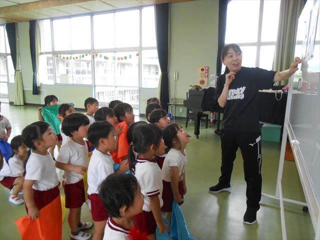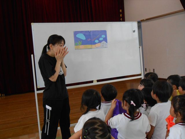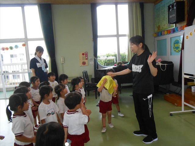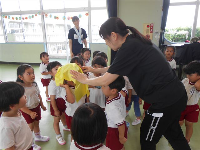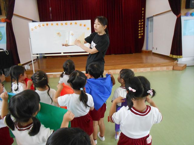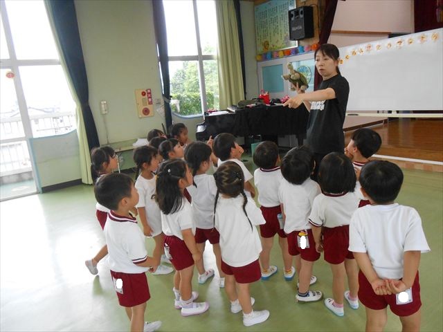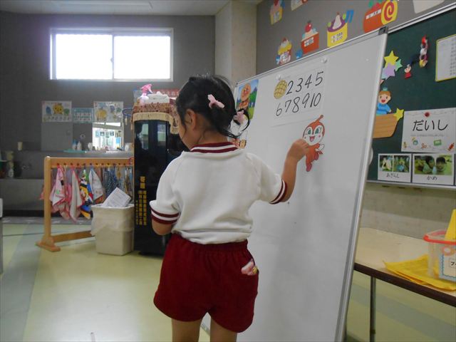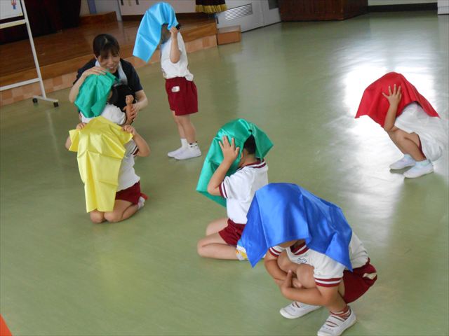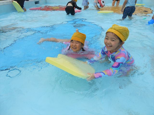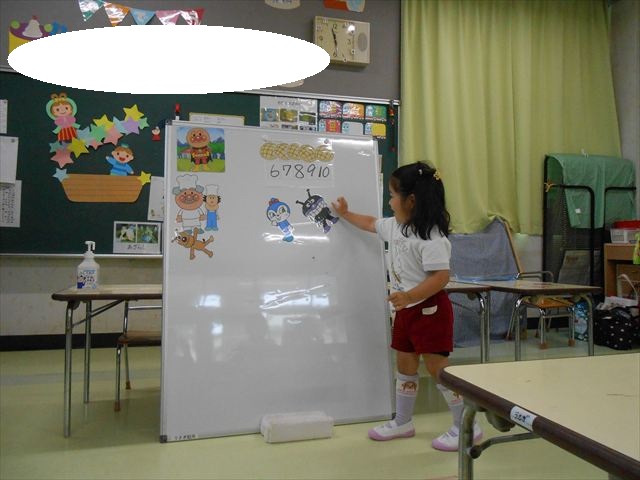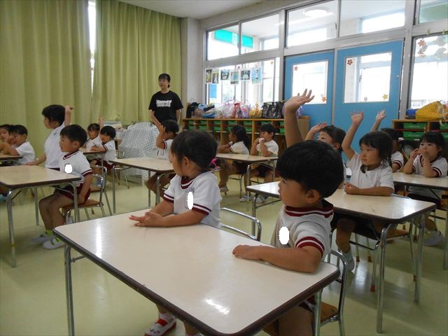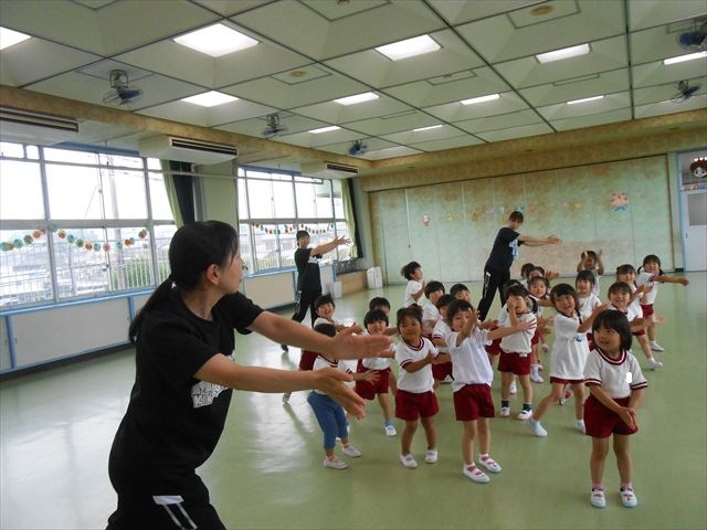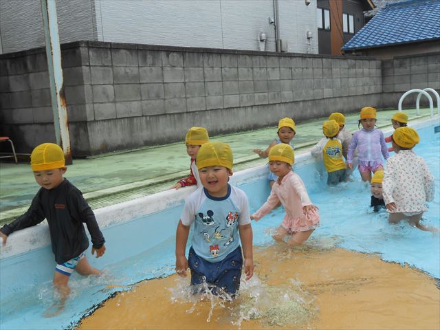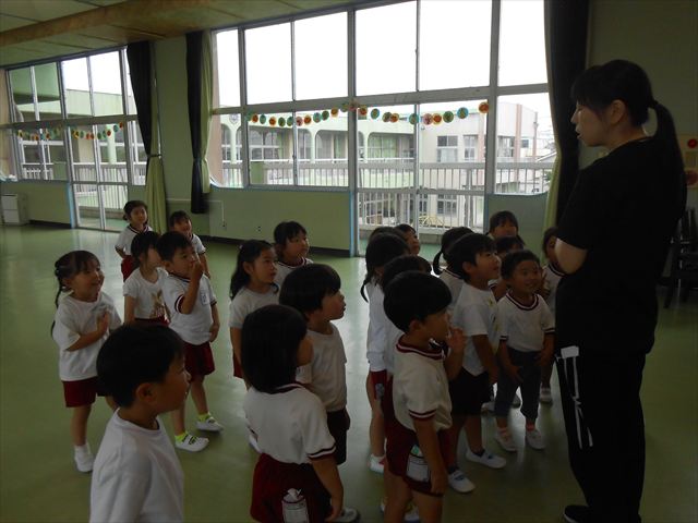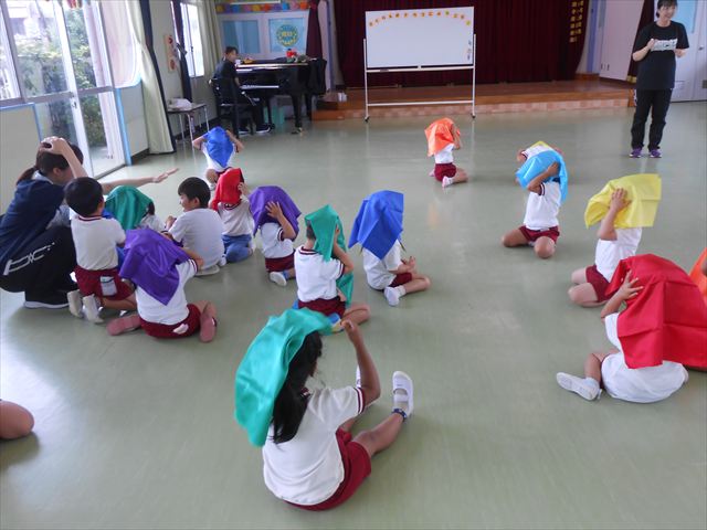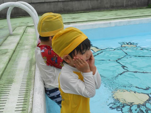 今日はプール遊びをしました。大きいプールにも慣れ楽しむ姿が見られました。水に顔をつけられるお友だちも数名いました\(^o^)/プール遊びの後は算数の時間として1〜5の数のお勉強をしました。1〜5の数字とメロンパンとお友だちを比べっこしました(^^)みんな真剣に取り組んでいました。午後はともえ先生のリトミック教室に参加しました。歩くスピードを音符で教えてもらいました。きれいなスカーフを貸していただき、ボートを漕いだり、海の生き物になったりサメが来たら隠れたり音楽に合わせて楽しむことができました。ともえ先生ありがとうございました(^^)
