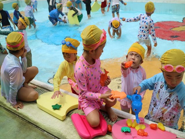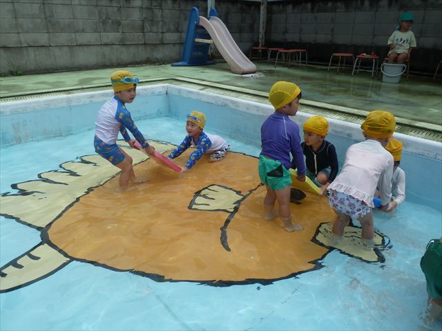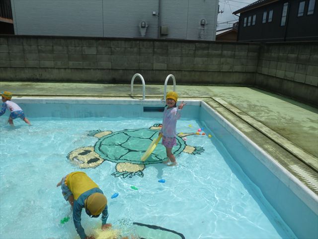 今日は久しぶりにプールに入る事が出来ました!流れるプールや自由遊びを楽しみ、気持ちよく泳ぐことが出来ました☆