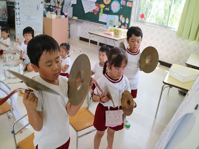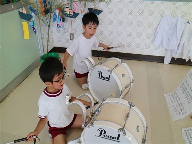 パート別練習をしました。ガードチームは、細かいところを揃える練習をしました。足を上げる高さ、腕の角度などをみんなで確認しながら集中して取り組むことが出来ました!楽器チームは、みんなで合わせてみると最初と最後の部分は少し合うようになってきて子どもたちもよりやる気を出して頑張りました!