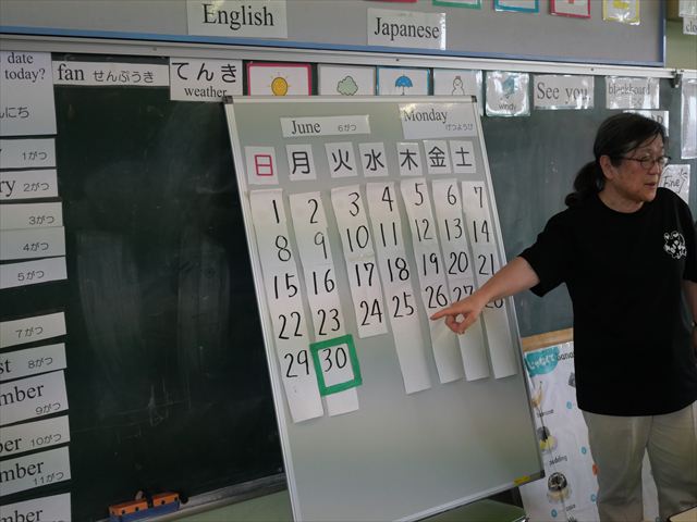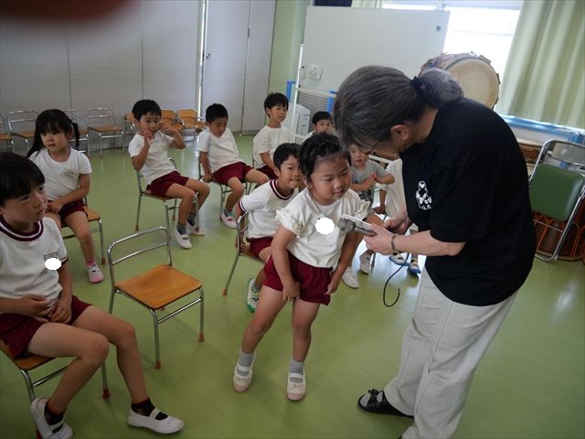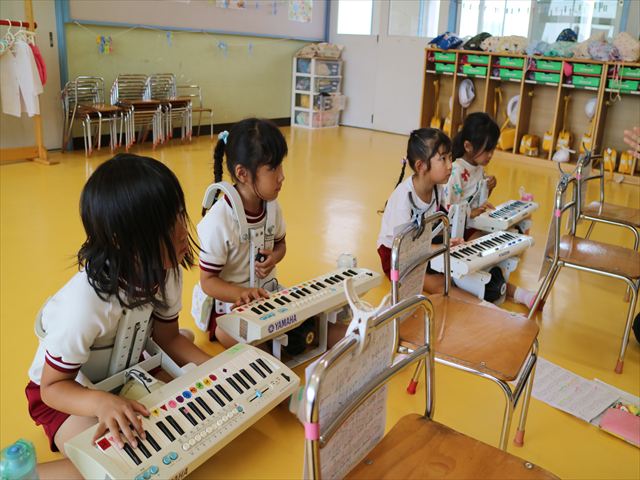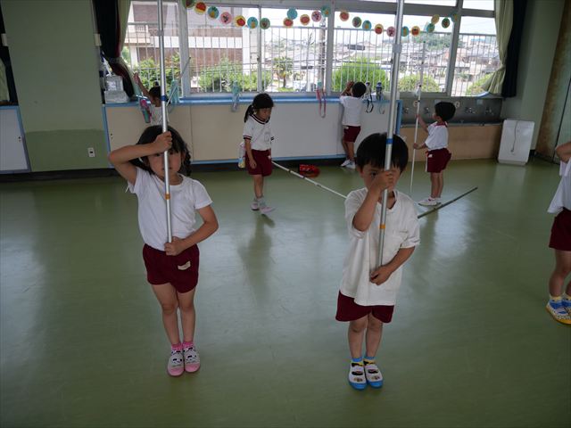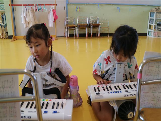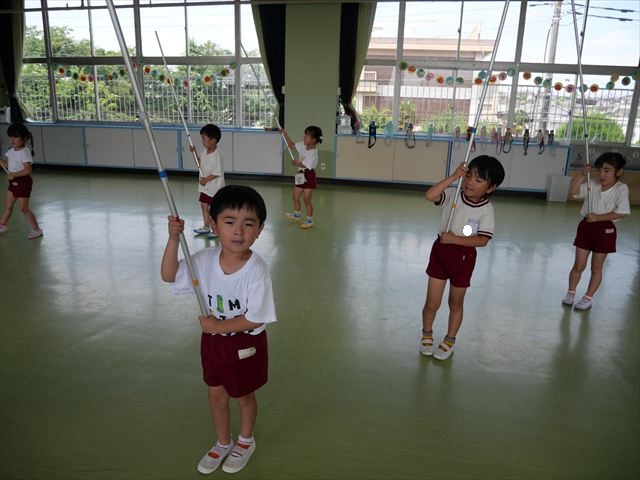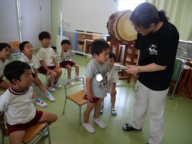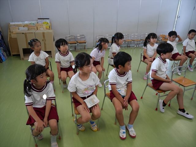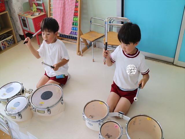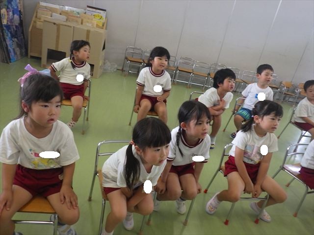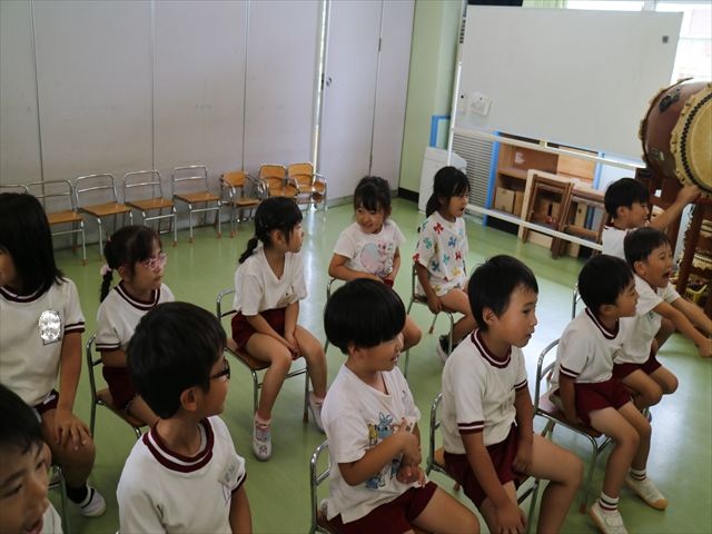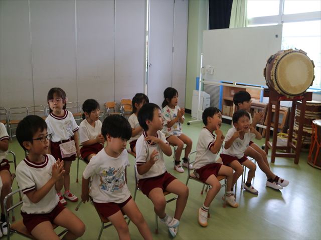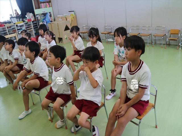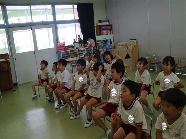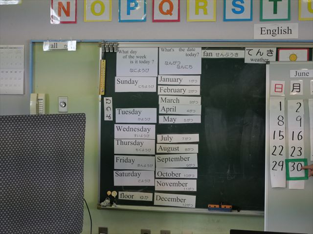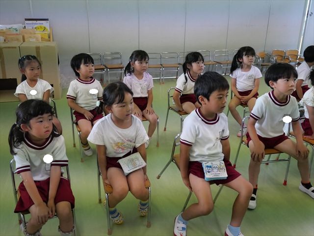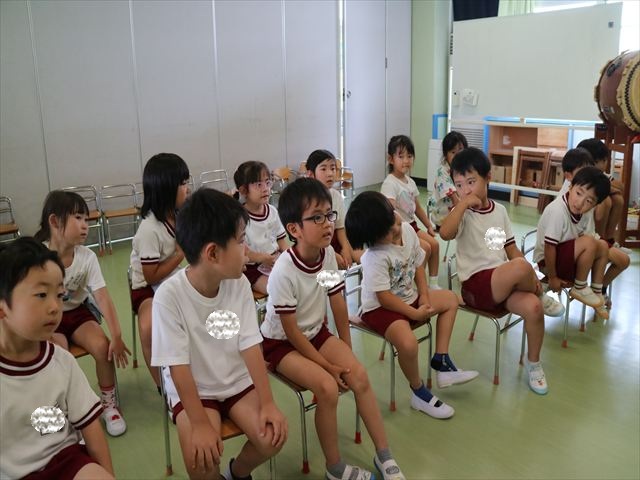 英語教室では、先日教えていただいた図形の形や「幸せなら手をたたこう」の英語バージョンや好きかどうか質問をする練習をしました!前に出てやってくれるお友達!の声を聞いて一斉に手を上げて、真剣な様子のこどもたちでした!