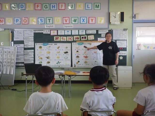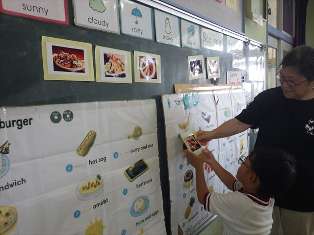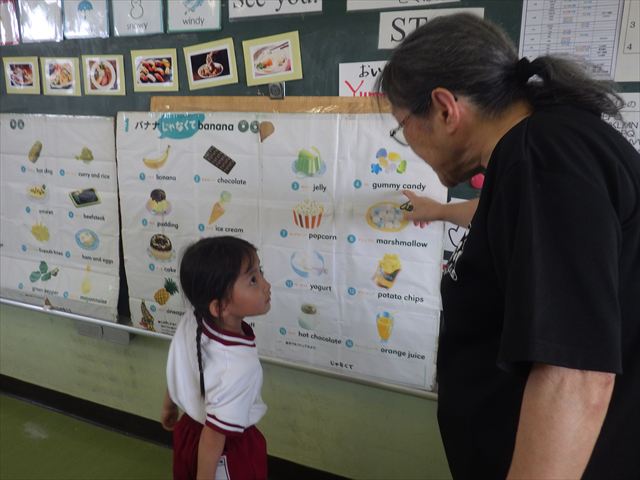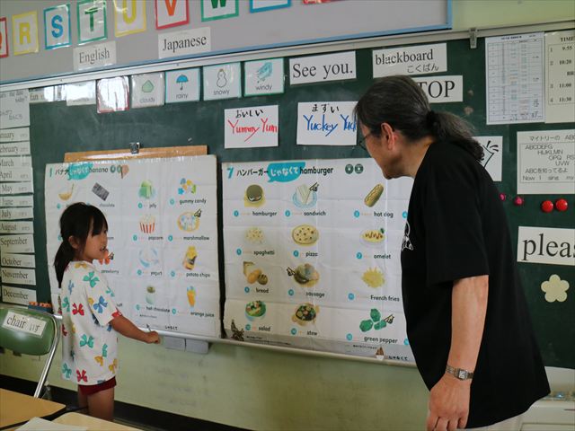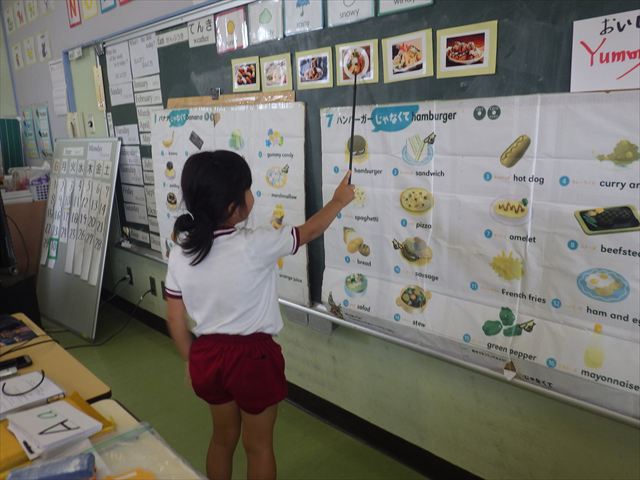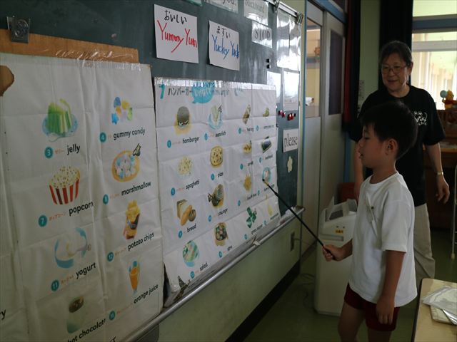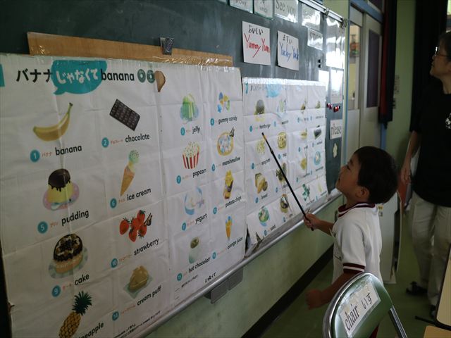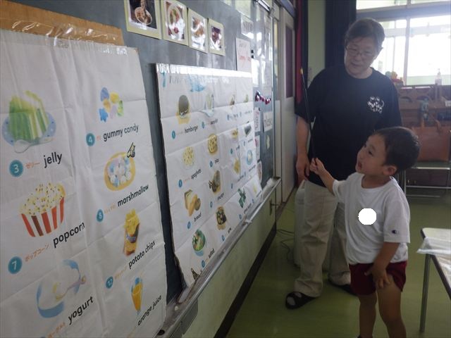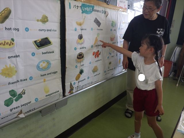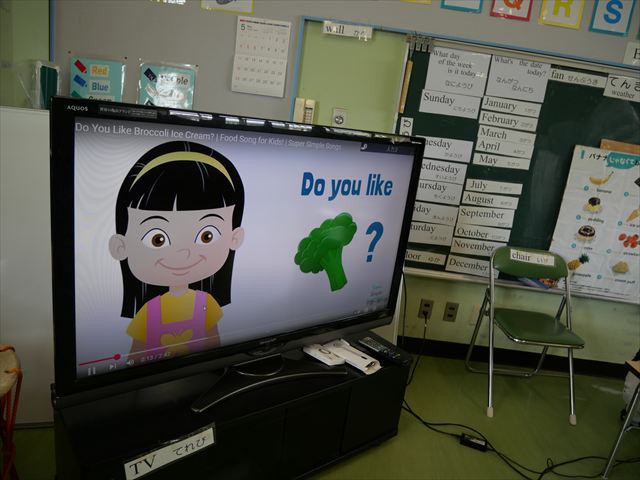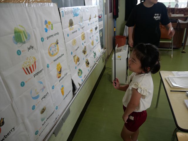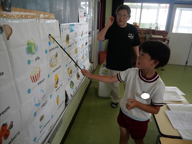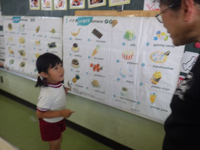 今日の英語教室は「I like~」で自分の好きな食べ物を伝える練習をしました。色々な種類の食べ物が正しく言えるようになっていてびっくりです!二つ好きな場合は、「and」を付けることも教えてもらい、子どもたちはすぐに吸収していました。またABCの曲では、一緒に口ずさみながら楽しくできました♪